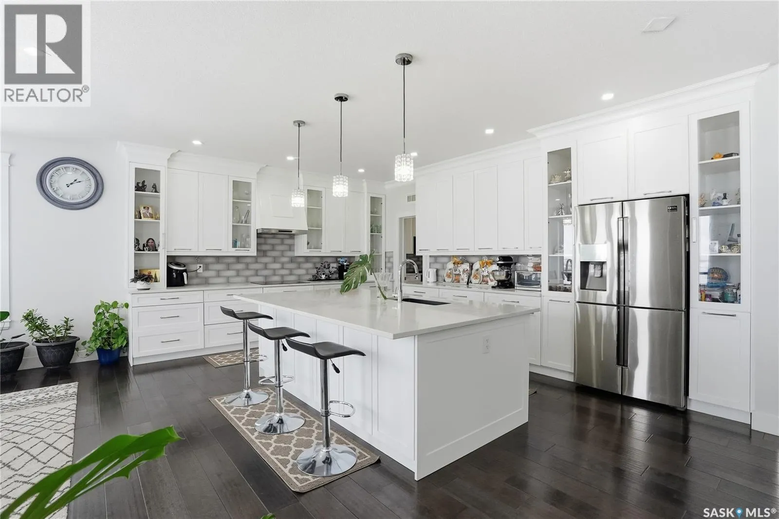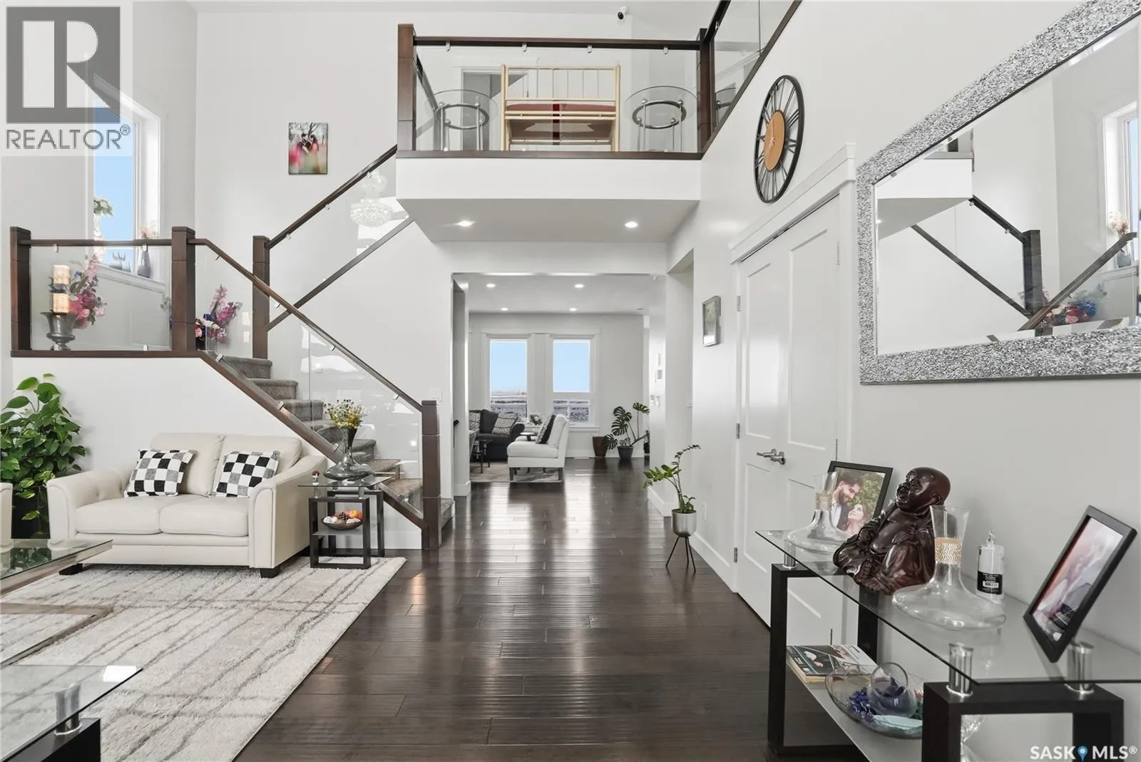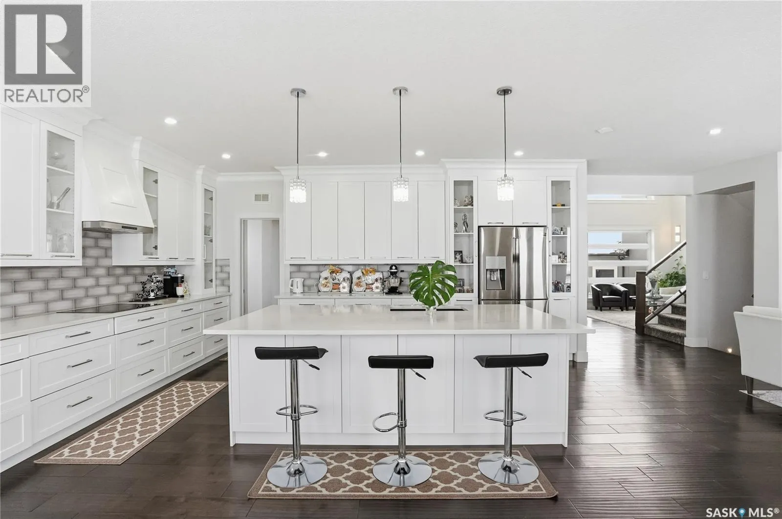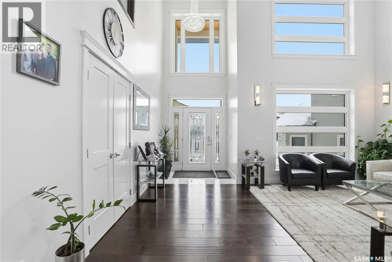 This luxury two-storey walkout home backs the protected Northeast Swale, offering rare, unobstructed prairie views that will never be compromised. Home to native grasslands, rare plant species, and wildlife, the Swale provides a peaceful setting and a natural filter for air and water, creating an exceptional backdrop for refined living. From the moment you enter, a grand open-to-below foyer with soaring ceilings and a stunning chandelier sets the tone for the refined design throughout. The main floor offers expansive, light-filled living spaces, with the living room featuring a Napoleon natural gas fireplace finished with stone as an elegant focal point. The kitchen is designed for everyday living and entertaining, showcasing an extra-large island, quartz countertops, detailed backsplashes, ceiling-height cabinetry, and premium stainless steel appliances. A highly functional butler and spice kitchen includes stainless steel appliances, a sink, ample counter space, and additional storage. A mudroom and laundry room with sink and quartz countertops offers direct garage access, complemented by a convenient 2- piece bathroom. The heated double garage and oversized driveway provide parking for up to six vehicles. The main-floor deck spans the family room and offers approximately 160 square feet of outdoor living space with a natural gas BBQ hookup and uninterrupted Swale views. Upstairs, the primary retreat features a 5-piece ensuite with jacuzzi and a private sunroom, while two additional bedrooms each include 4-piece ensuite bathrooms and large closets. The walkout basement opens to a backyard patio and includes a family room with electric fireplace, games area, wet bar with beverage fridge, a 4-piece bathroom, and two additional bedrooms, one with a 3-piece ensuite and walk-in closet, offering flexibility for guests, extended family, or future home office use. A rare opportunity to own a luxury walkout residence backing a natural reserve. (id:27476)