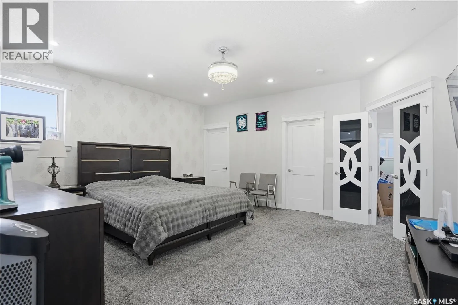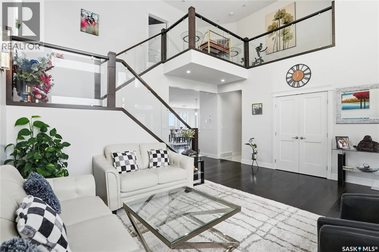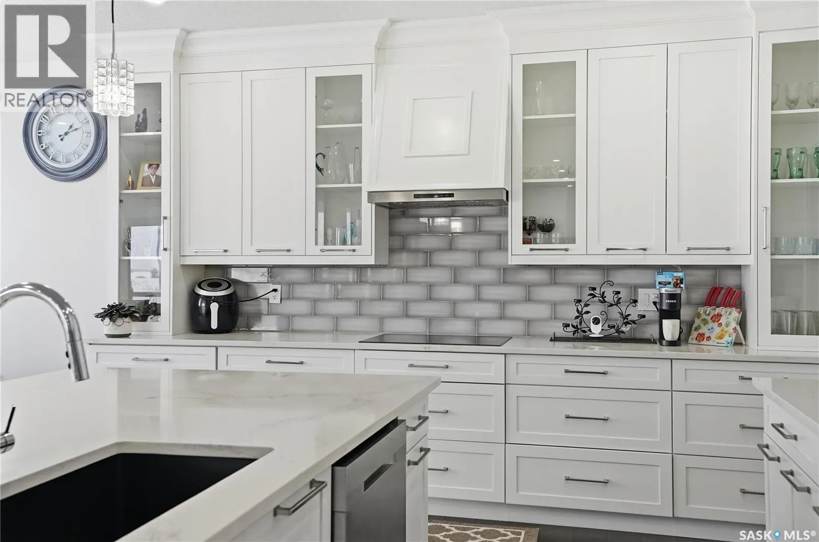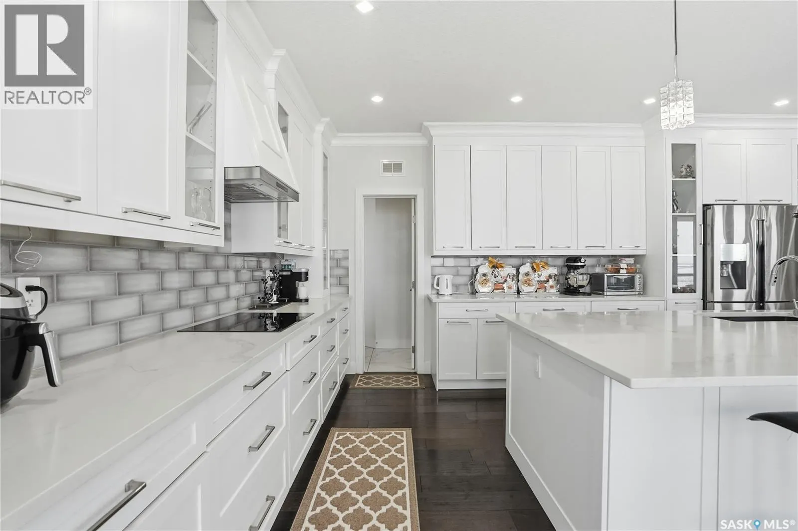 This luxury two-storey walkout home backs the protected Northeast Swale, offering rare, unobstructed prairie views that will never be compromised. Home to native grasslands, rare plant species, and wildlife, the Swale provides a peaceful setting and a natural filter for air and water, creating an exceptional backdrop for refined living. From the moment you enter, a grand open-to-below foyer with soaring ceilings and a stunning chandelier sets the tone for the refined design throughout. The main floor offers expansive, light-filled living spaces, with the living room featuring a Napoleon natural gas fireplace finished with stone as an elegant focal point. The kitchen is designed for everyday living and entertaining, showcasing an extra-large island, quartz countertops, detailed backsplashes, ceiling-height cabinetry, and premium stainless steel appliances. A highly functional butler and spice kitchen includes stainless steel appliances, a sink, ample counter space, and additional storage. A mudroom and laundry room with sink and quartz countertops offers direct garage access, complemented by a convenient 2- piece bathroom. The heated double garage and oversized driveway provide parking for up to six vehicles. The main-floor deck spans the family room and offers approximately 160 square feet of outdoor living space with a natural gas BBQ hookup and uninterrupted Swale views. Upstairs, the primary retreat features a 5-piece ensuite with jacuzzi and a private sunroom, while two additional bedrooms each include 4-piece ensuite bathrooms and large closets. The walkout basement opens to a backyard patio and includes a family room with electric fireplace, games area, wet bar with beverage fridge, a 4-piece bathroom, and two additional bedrooms, one with a 3-piece ensuite and walk-in closet, offering flexibility for guests, extended family, or future home office use. A rare opportunity to own a luxury walkout residence backing a natural reserve. (id:27476)