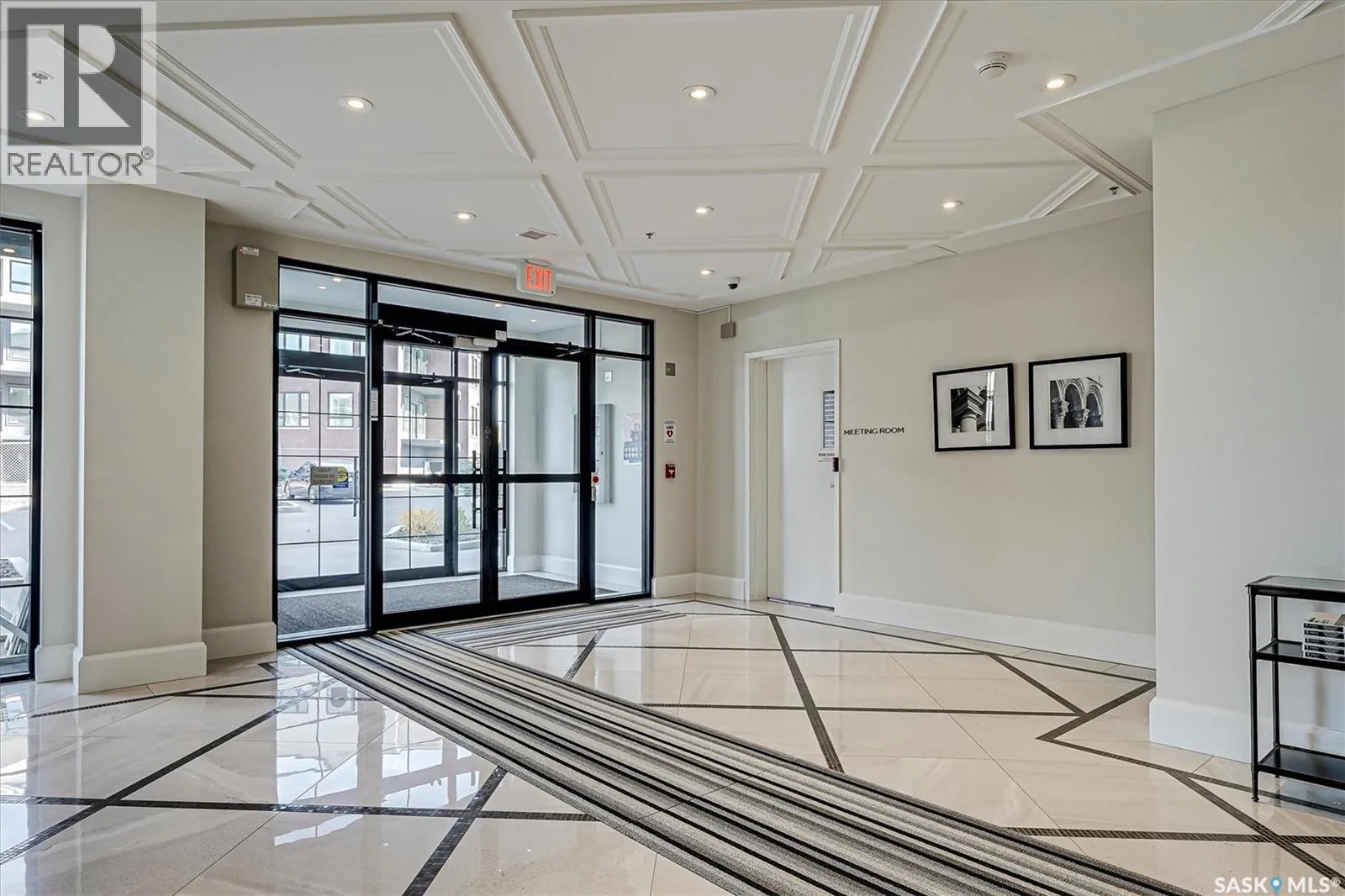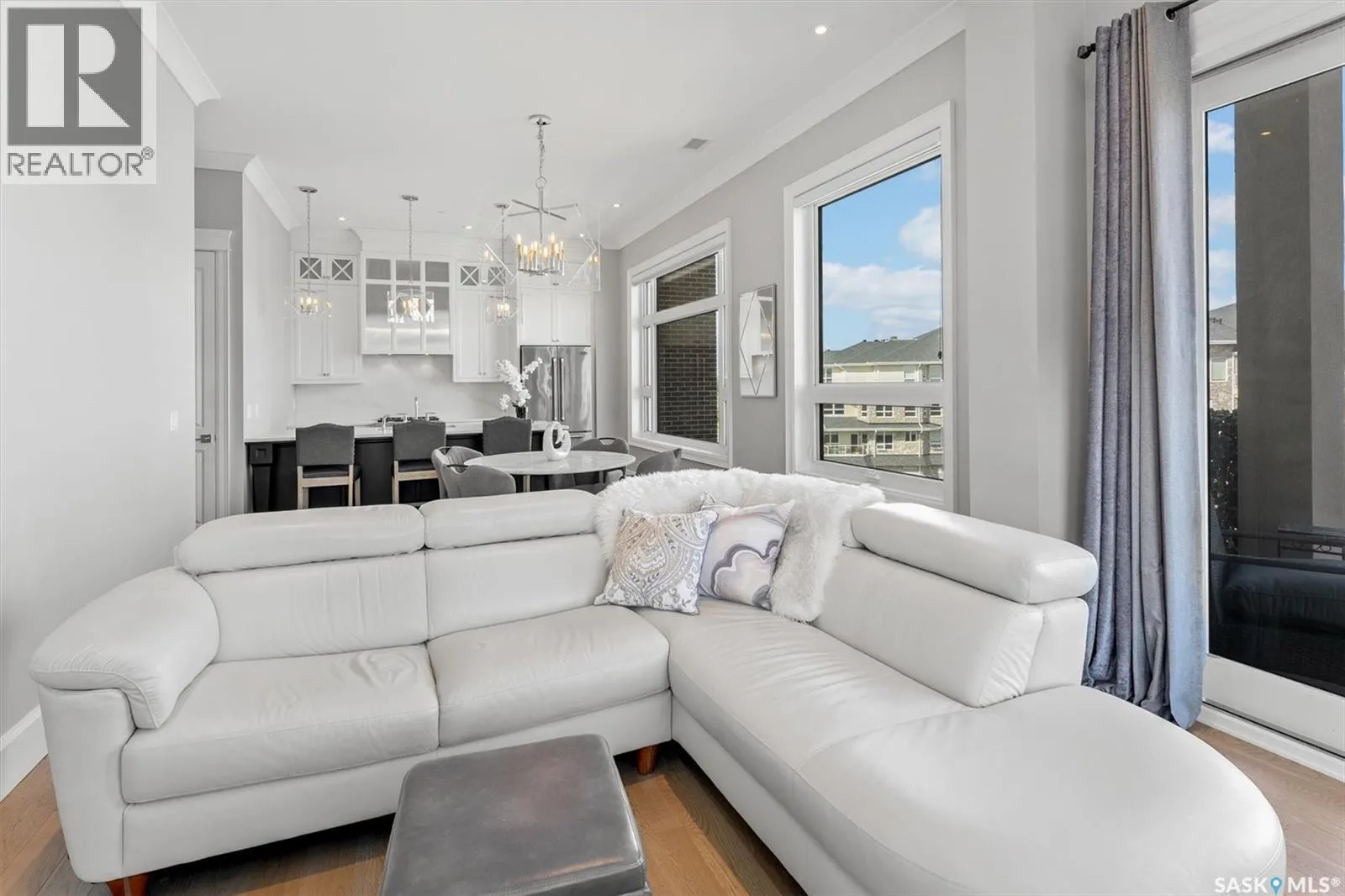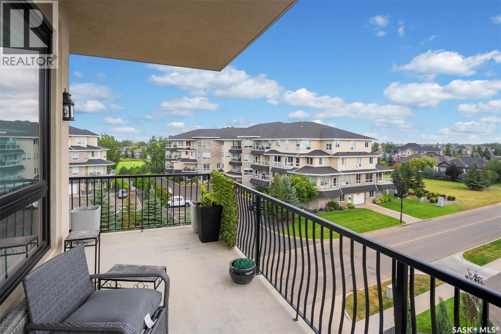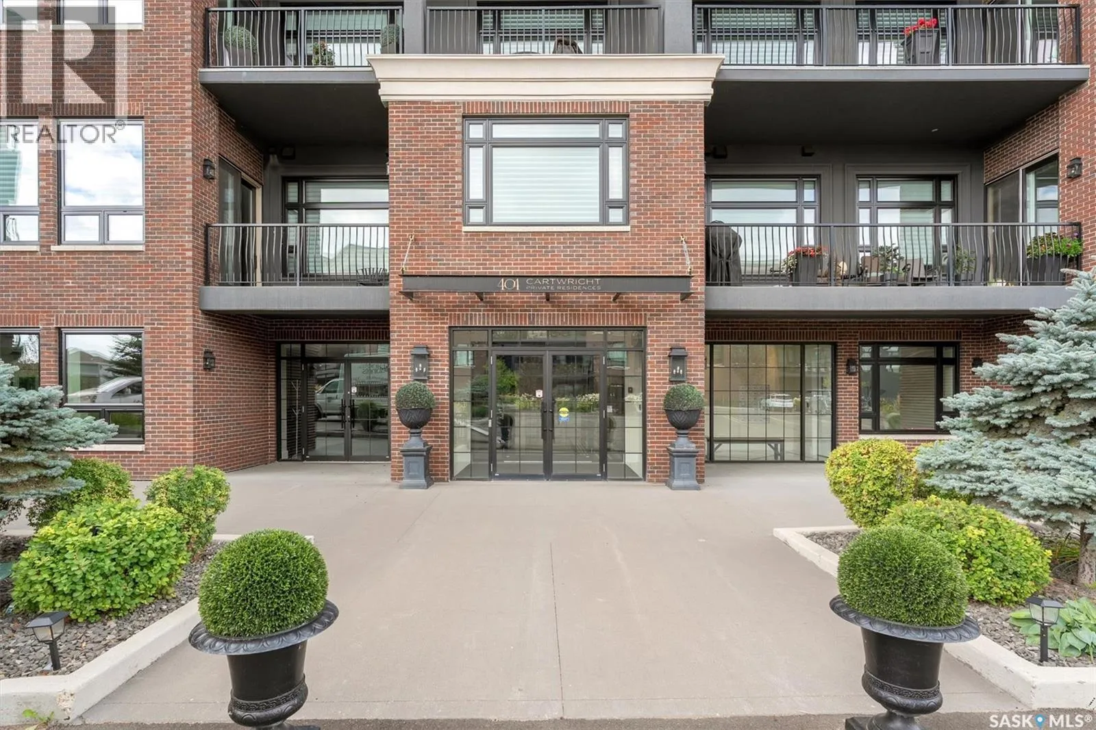 Luxurious 3rd Floor Corner Unit at The Willows Private Residences: Light-filled and like new, this 1,206 sq. ft. 2-bedroom, 2-bathroom condo offers elevated living in Saskatoonâs premier golf course community. Built by Valentino Homes and designed by Atmosphere Interior Design, this property features tall ceilings, wide plank white oak hardwood throughout, crown mouldings, and 8â interior doors. The open floor plan includes a showpiece white lacquer shaker kitchen with full-height cabinetry, glass panel detail, pantry storage, stainless steel appliances, and gorgeous designer lighting. Two exceptionally large bedrooms include a primary suite with a custom outfitted walk-in closet w/ built in dresser, and a porcelain marble-clad 4 piece spa ensuite, equipped with quartz counters and glass entry tiled shower. A second full bath with porcelain marble tile and quartz, plus a spacious storage/flex room with built-in cabinetry (could service as a craft room) complete the floor plan. This esteemed condominium offers an amenity room, fitness centre, and two titled parking stalls (one underground, one surface), exceptionally maintained grounds and common areas, a storage unit, wheel chair access and visitor parking. Situated directly on the golf course, this is your opportunity to enjoy a luxury lifestyle at The Willows. (id:27476)