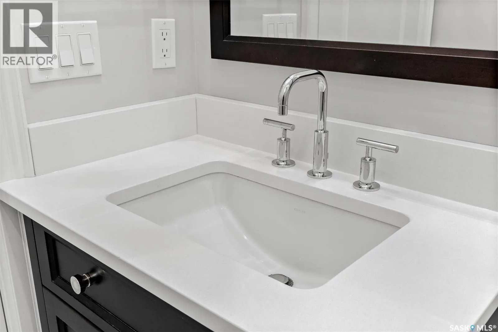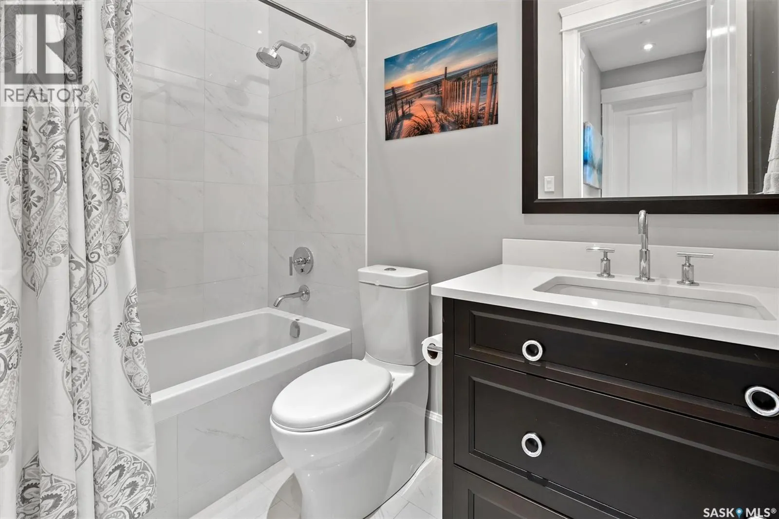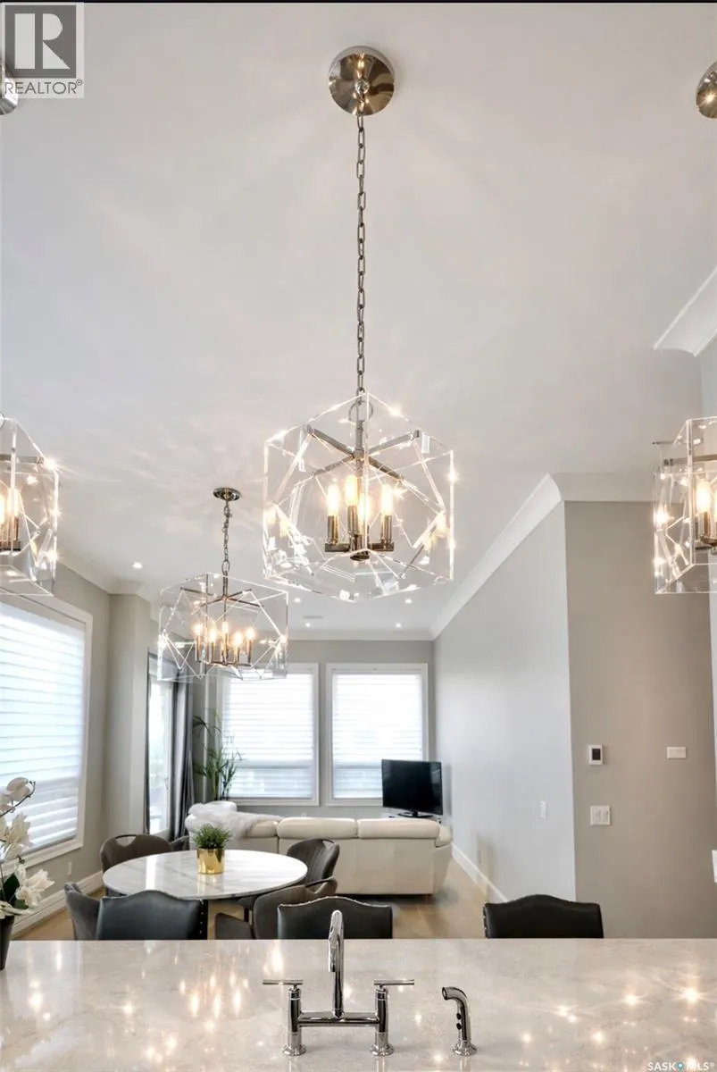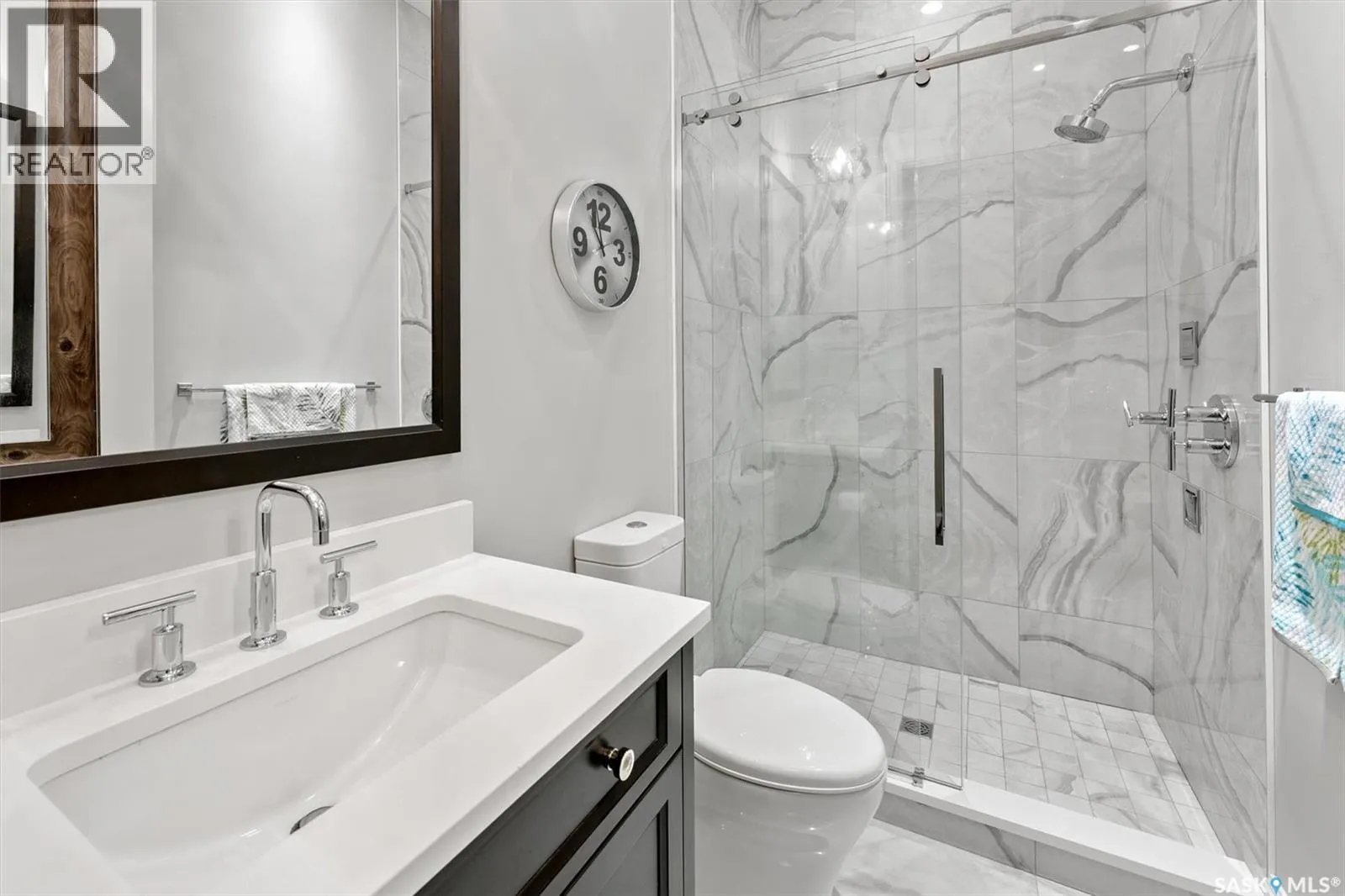 Luxurious 3rd Floor Corner Unit at The Willows Private Residences: Light-filled and like new, this 1,206 sq. ft. 2-bedroom, 2-bathroom condo offers elevated living in Saskatoonâs premier golf course community. Built by Valentino Homes and designed by Atmosphere Interior Design, this property features tall ceilings, wide plank white oak hardwood throughout, crown mouldings, and 8â interior doors. The open floor plan includes a showpiece white lacquer shaker kitchen with full-height cabinetry, glass panel detail, pantry storage, stainless steel appliances, and gorgeous designer lighting. Two exceptionally large bedrooms include a primary suite with a custom outfitted walk-in closet w/ built in dresser, and a porcelain marble-clad 4 piece spa ensuite, equipped with quartz counters and glass entry tiled shower. A second full bath with porcelain marble tile and quartz, plus a spacious storage/flex room with built-in cabinetry (could service as a craft room) complete the floor plan. This esteemed condominium offers an amenity room, fitness centre, and two titled parking stalls (one underground, one surface), exceptionally maintained grounds and common areas, a storage unit, wheel chair access and visitor parking. Situated directly on the golf course, this is your opportunity to enjoy a luxury lifestyle at The Willows. (id:27476)