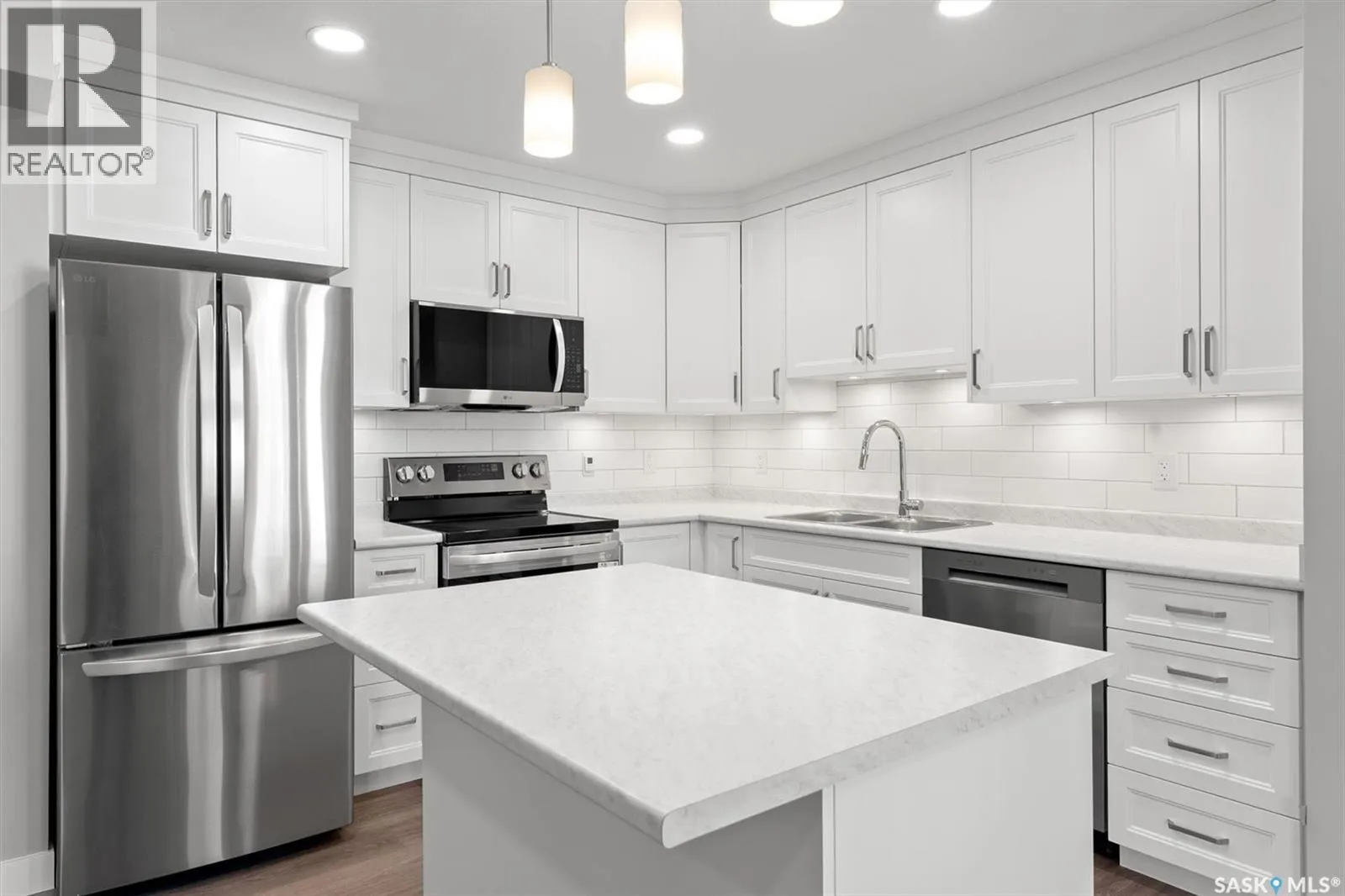 Welcome to #202 - 318 108th Street in Sutherland! This is a beauty! If youâre seeking a brand new condo in a prime location near the University of Saskatchewan and the upcoming SaskPolytech, this might be the perfect fit for you! Featuring light grey walls, barnwood-style vinyl plank flooring, and crisp white cabinets, this unit boasts a timeless color palette. This second-floor corner unit offers two spacious bedrooms, one of which includes a convenient 2pc ensuite. Upon entering the suite, you'll be greeted by a generous foyer complete with a large front entry closet. The kitchen is equipped with plenty of cabinetry, tiled back splash, under cabinet lighting, brand new stainless steel appliances, and an island featuring stylish pendant lighting. From the dining area, you can access a balcony that includes a natural gas BBQ hookup. The living area is filled with natural light, thanks to an abundance of windows facing a peaceful residential area. This home features vinyl plank flooring throughout the primary living spaces and bedrooms, while the entryway and bathrooms are finished with linoleum for easy maintenance. Call your favorite Realtor® today to take a look at this lovely condo! (id:27476)