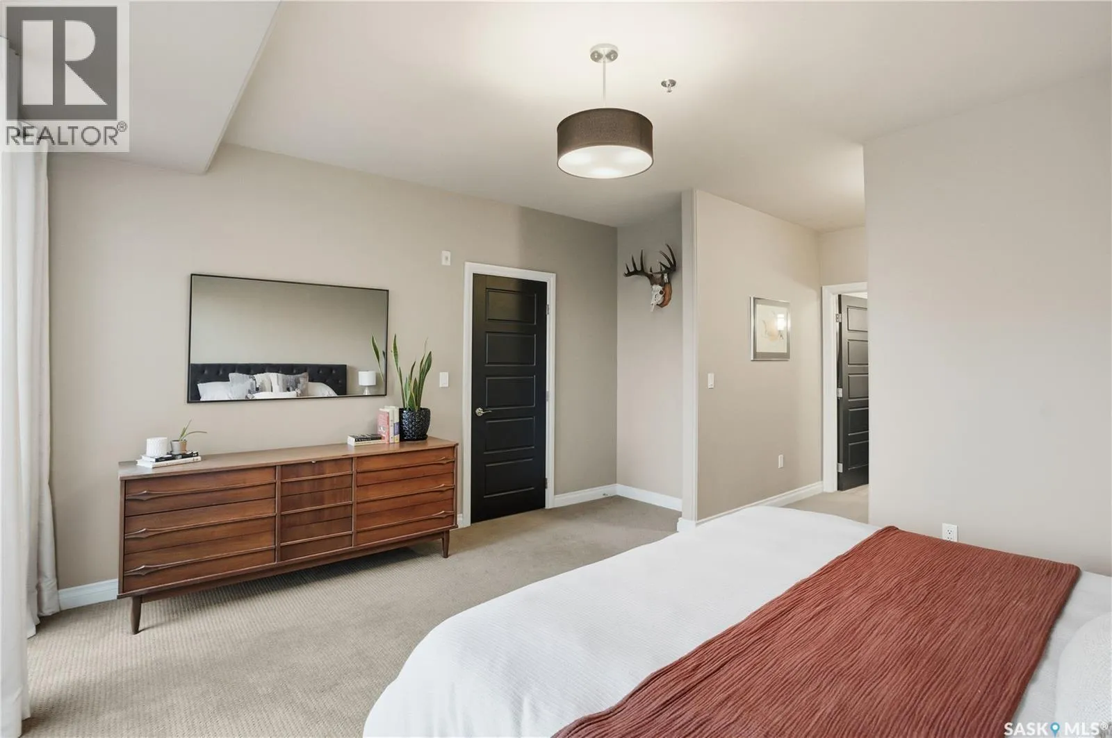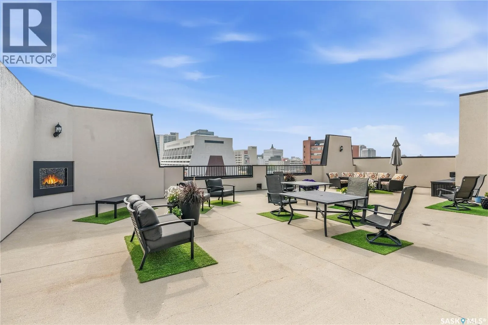 Enjoy luxury living in one of Saskatoon's most prestigious and icon developments; The Residences at the King George. Experience city living at its finest in this 1216 sq ft., 2 bedroom, 2 bathroom condo. The spacious open concept floor plan features executive level finishes designed for both elegant entertaining and everyday comfort. The fully equipped kitchen comes with stainless steel appliances, granite countertops and ample cabinetry throughout. Garden doors off the living room lead to a balcony to enjoy the downtown surroundings. The primary bedroom includes a walk-in closet and a 3-piece ensuite. The spacious second bedroom overlooks the terrace below and would also make for a great home office. Floor to ceiling windows flood the unit with natural light and offer beautiful cityscape views, both day and night. A rooftop patio is available for the residence; complete with a built in BBQ and outdoor kitchen. This unit also features 2 heated underground tandem parking spots, heated storage and a secured entry system. This exceptional home offers the perfect blend of modern urban living and historic charm and is an ideal opportunity to own a piece of Saskatoon history in the heart of the city. (id:27476)