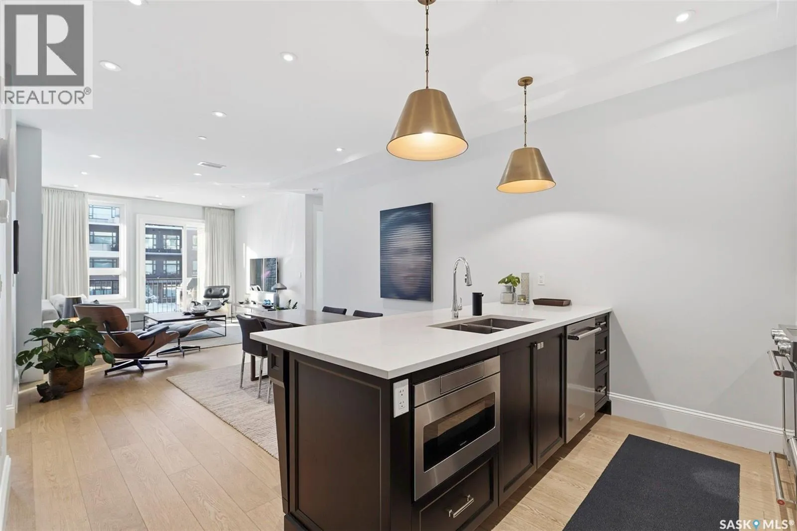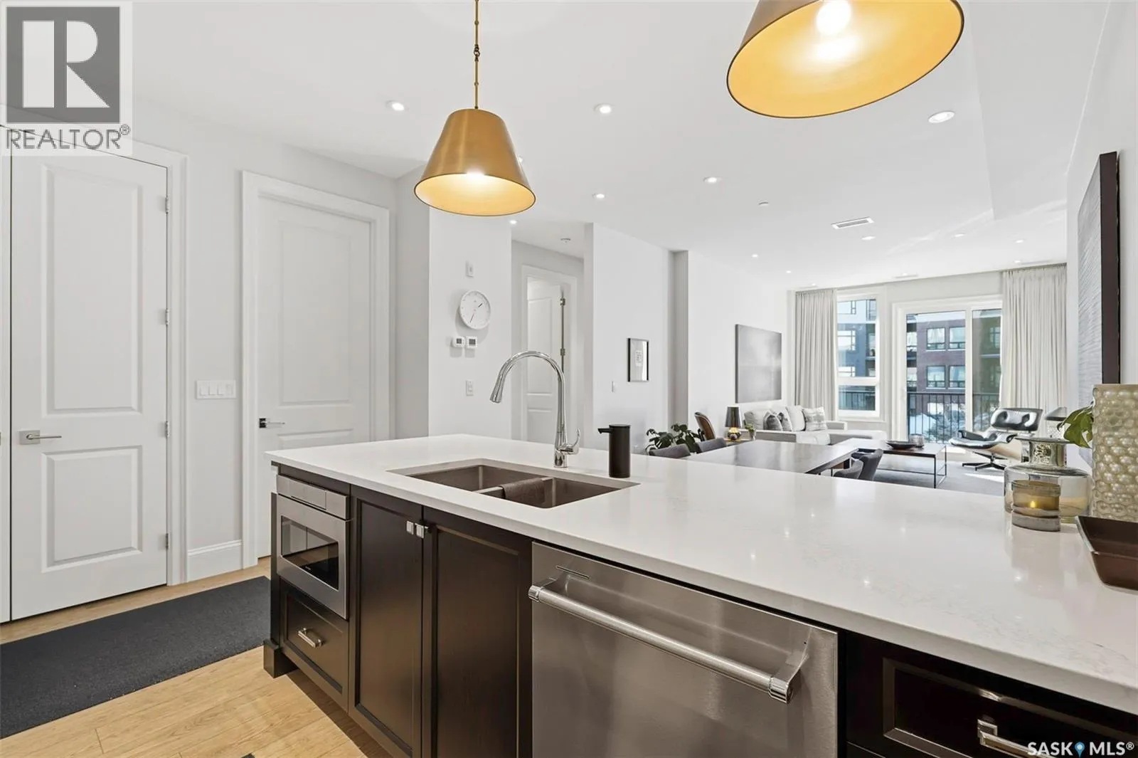 Luxury 2 bedroom, 2 bath condo in exclusive Willows neighbourhood! This beautiful unit features high ceilings, bright and open floor plan, and quality materials throughout. Enjoy cooking and entertaining in the kitchen complete with quartz countertops, stainless appliances and peninsula with seating. The living and dining room provide ample space for family and friends, with access to the spacious balcony with NG BBQ hookup. The large primary suite features a walk-in closet and 3pc ensuite, while the secondary bedroom has convenient access to the main 4pc bath. A well-designed laundry room with built-ins completes the unit. Enjoy 1 underground parking stall with storage. This is a great opportunity for anyone looking for a low maintenance home without sacrificing style and quality! Call your favourite realtor to book your personal showing! (id:27476)