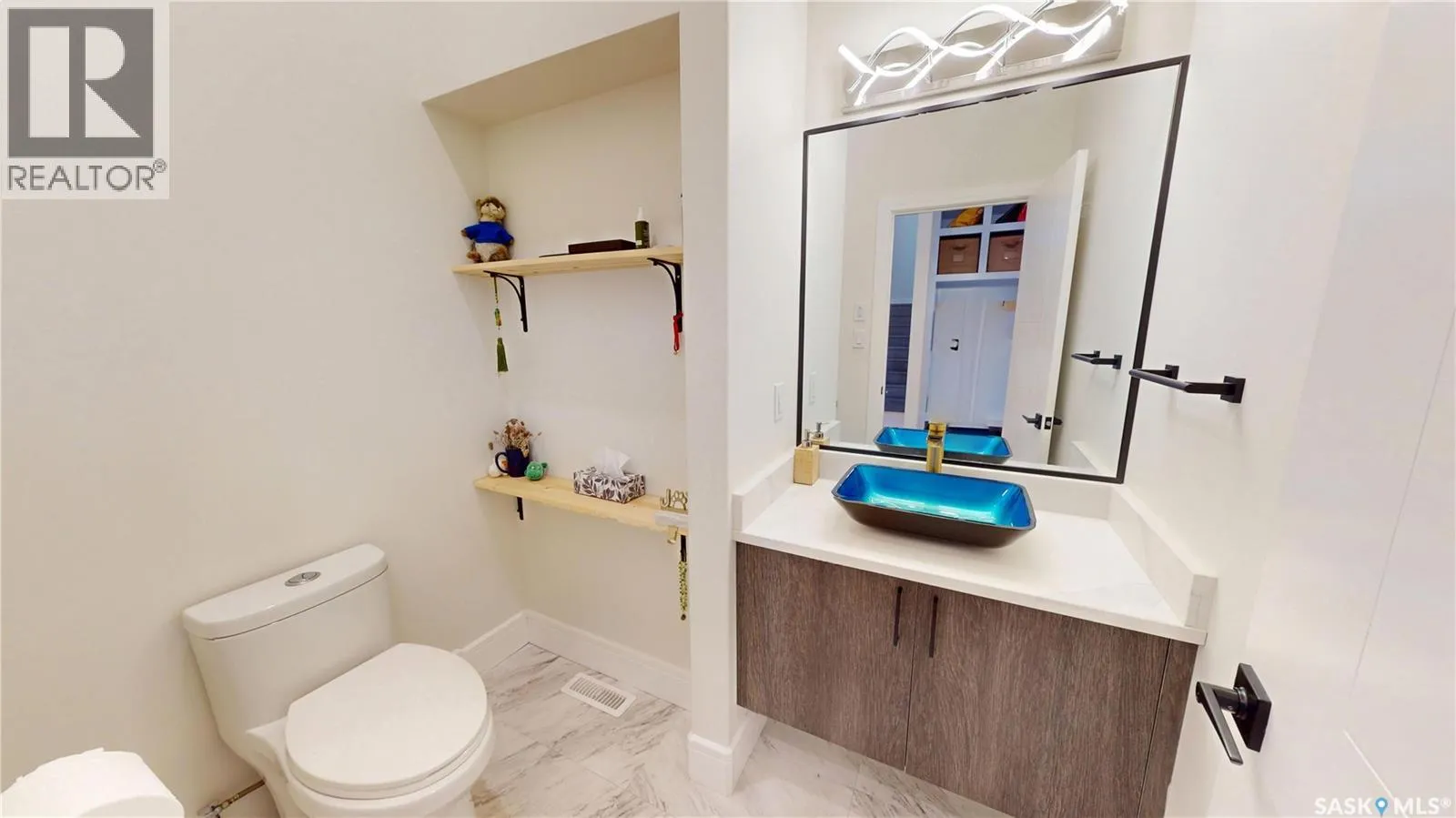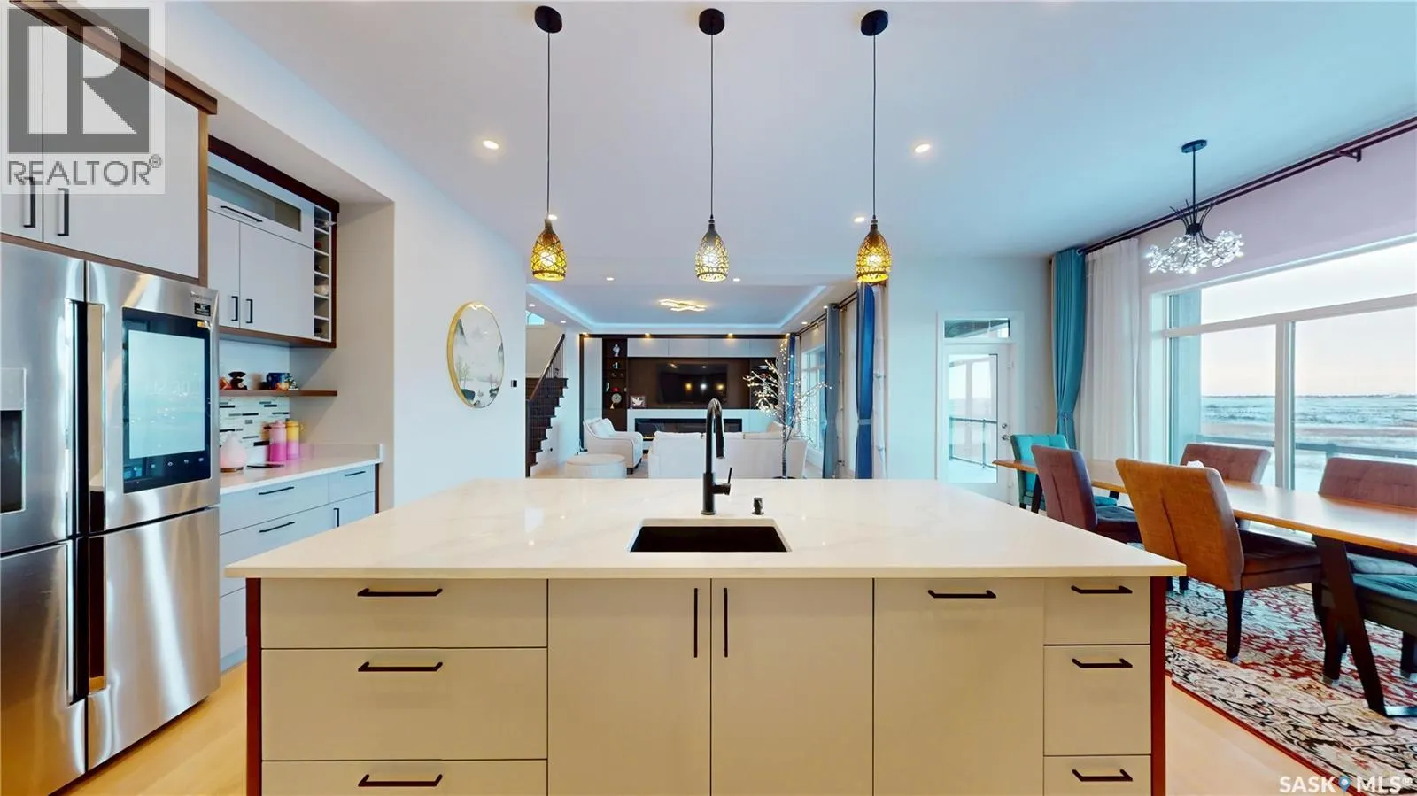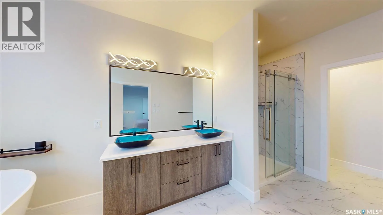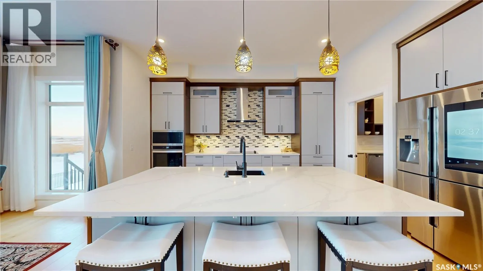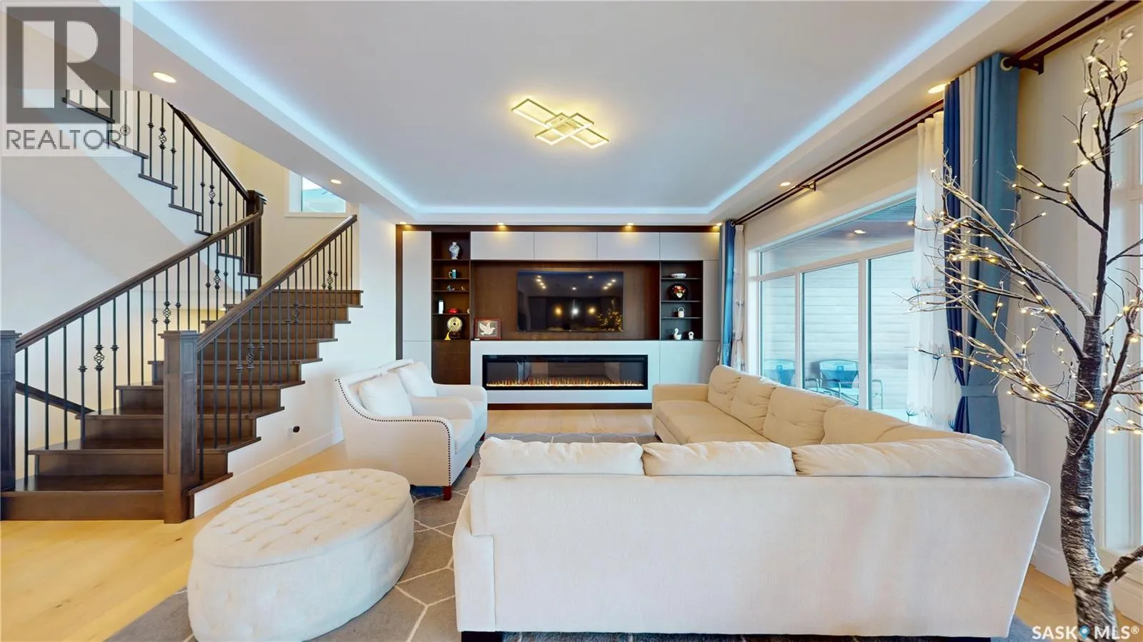 Discover your dream lifestyle in this magnificent 2-storey walkout backing the northeast swale, where luxury meets functionality and breathtaking panoramic views of wide open fields abound. Please view the Matterport 3D virtual tour in the listing. With over 4400 sq ft of thoughtfully designed living space, this home offers an array of amenities to elevate your daily experience. The heart of the home features a stunning open-concept kitchen, dining, and living room, perfect for both intimate gatherings and grand entertaining under 10-foot ceilings. The modern kitchen boasts high-end appliances, custom cabinetry, and a large island with eating ledge, while prep and cleanup are a breeze in the adjacent spicy kitchen with a gas range and 2nd fridge. A massive covered deck is just off the dining area, offering additional views and a staircase to the ground. An attractive front entry is next to the den, and direct access from the heated, finished garage leads to a space with built-in storage and shelving for coats and more. Ascend to the upper floor from an impressive stained wood staircase to find 4 generously sized bedrooms, including the primary with a walk-in closet and luxurious 5-pc ensuite with soaker tub, double sinks, and separate shower. The 2nd floor also has a large laundry, 2 office spaces, a 2nd ensuite, and 9-foot ceilings. Five impeccably designed bathrooms throughout the home offer comfort and convenience at every level. An abundance of large windows flood the spaces with natural light, while plush carpeting and warm engineered hardwood floors create a welcoming ambience. The 9-foot basement is professionally finished with a bedroom, an open concept games room and family room with mirrored walls, and garden door access to the backyard with a patio and beautiful scenery. Other notable features include a tray ceiling, built-in wall unit, 3-zone ventilation, gorgeous curb appeal with maintenance-free stucco & stone exterior, and much more. Call now to view! (id:27476)