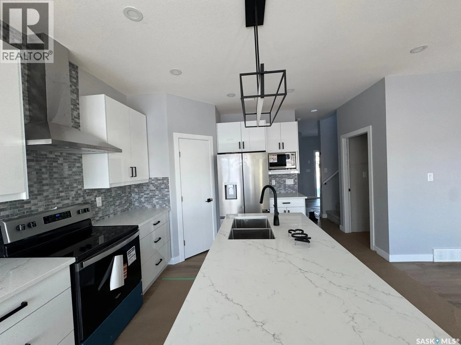 Quick Possession Available! This stunning 1,564 sq. ft. new-build family home offers the perfect blend of space, style, and functionality. Thoughtfully designed for modern living, it features a bright foyer with oversized windows and an expansive open-concept living and dining area, ideal for both everyday living and entertaining. The upper level offers three spacious bedrooms, including a well-appointed primary suite with two walk-in closets and a spa-inspired ensuite, along with a versatile bonus room. The basement includes a separate side entrance, providing excellent potential for a legal suite. Built with comfort and efficiency in mind, the home features triple-pane windows, high-grade insulation, radon mitigation, and a 95% high-efficiency furnace. An oversized garage and a large backyard offer ample space for parking, storage, and outdoor living. Finished with a sleek modern exterior, this home will be move-in ready in 2026 and is backed by a New Home Warranty, all within a family-friendly neighbourhood close to parks, schools, and amenities. (id:27476)