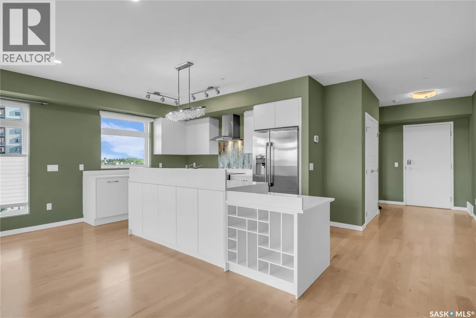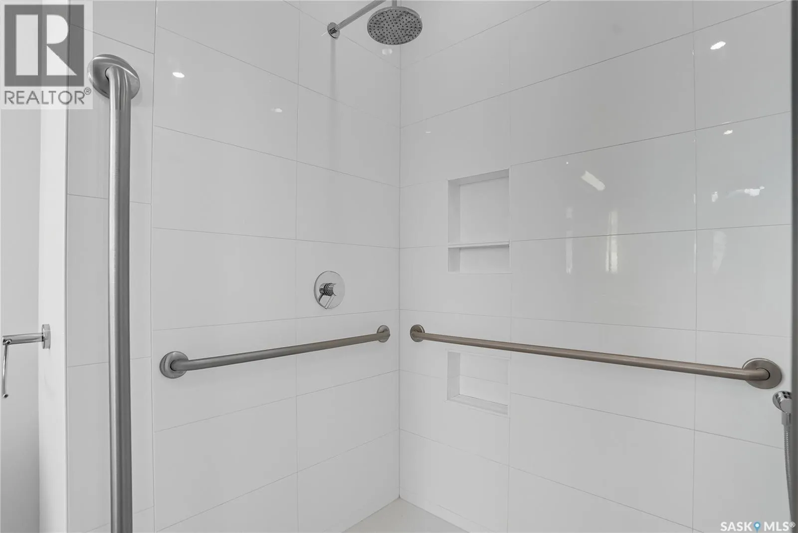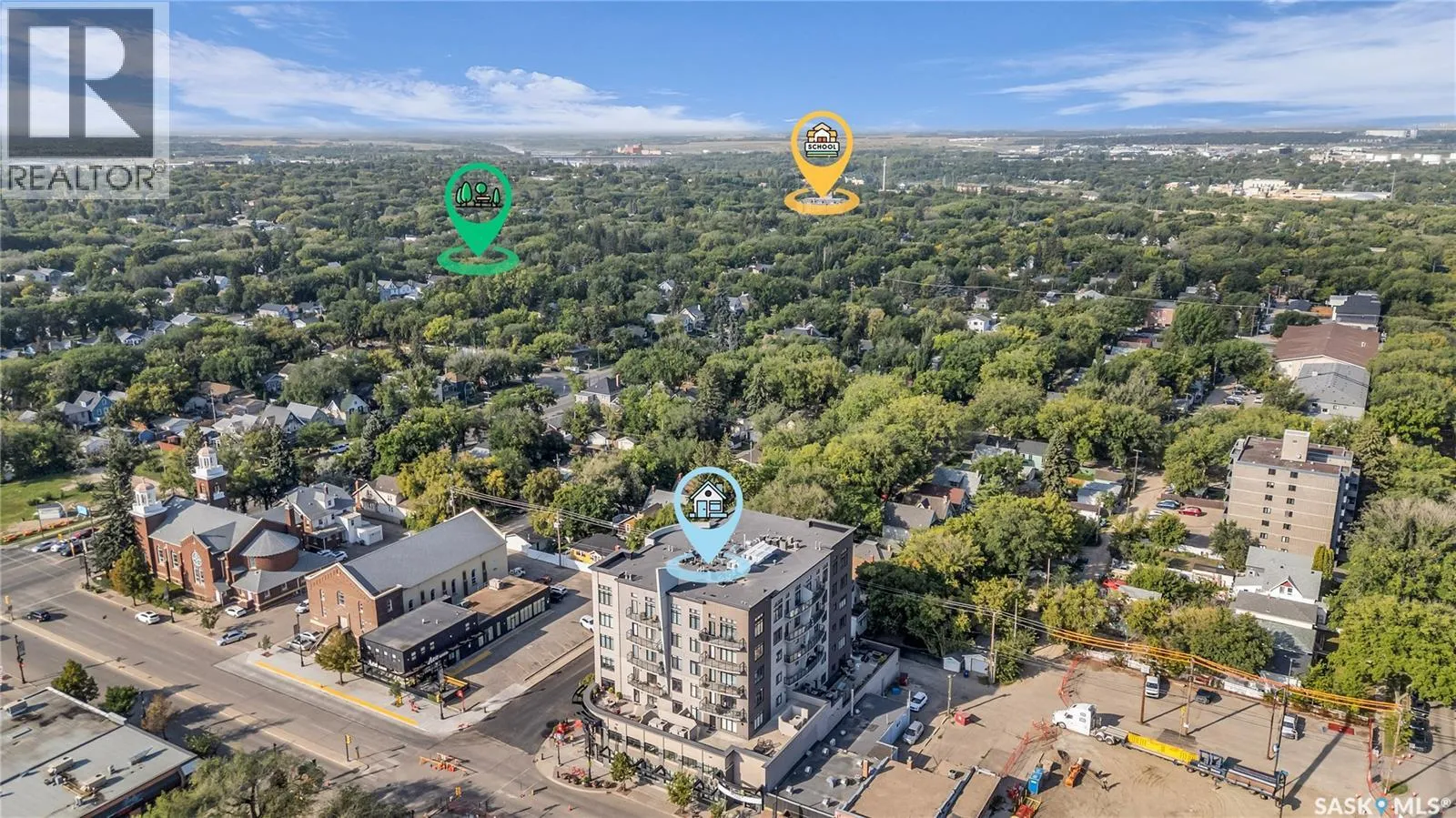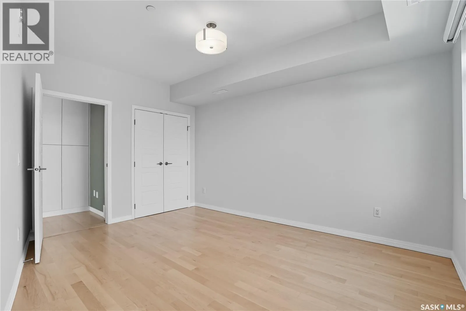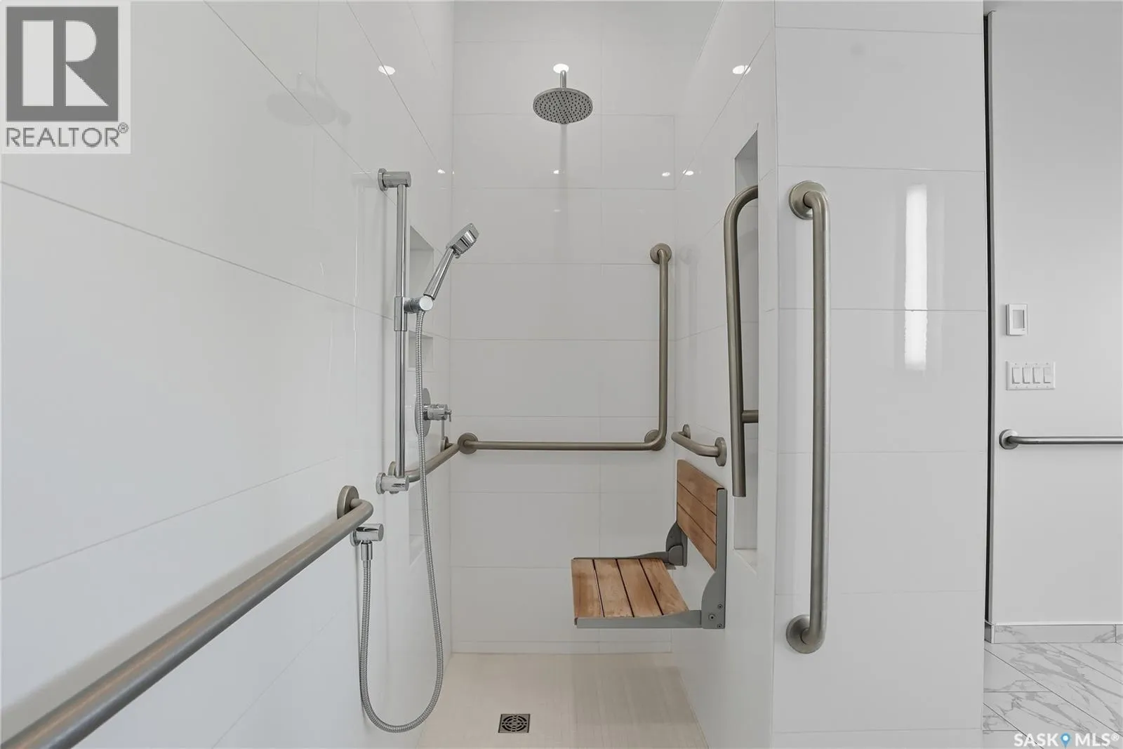 Welcome to the prestigious Luxe offering an exceptional combination of sophistication, comfort, and thoughtful upgrades. The suite features two spacious bedrooms, two beautifully appointed bathrooms, the rare luxury of two balconies, two underground parking stalls, and two external storage areas. The open concept main area is bright and inviting, with ceiling lighting added in 2018 to enhance the living and dining spaces. The kitchen is both stylish and functional, boasting a new dishwasher and smart renovations that introduced custom cabinets to the island, a built-in desk with wine storage, and striking display shelving. Additional upgrades include Hunter Douglas PowerView blinds on seven openings, triple-glazed balcony doors, and west-facing upgraded windows (2022). A true rarity in the condo market, the primary suite was redesigned with both elegance and accessibility in mind. It offers closet organizers and a spa-inspired ensuite that is perfectly suited for people with physical limitations. Features include heated non-glare tile floors, a Toto washlet, a double shower, an accessible sink unit, reinforced walls with integrated towel/assist rails, custom display shelving, thoughtful lighting and convenient laundry bins concealed within cabinetry. The second bathroom was also enhanced with new tile floors and freshly painted walls, while the laundry room was outfitted with cabinets and a collapsible folding table. Throughout the condo, hardwood floors were refinished, and every detail was carefully considered, from art and office storage solutions to built-in cabinetry that maximizes both form and function. Broadway offers an array of amenities within walking distance and is home to Saskatoonâs beloved Fringe Festival, Broadway Street Fair, and some of the cityâs finest pubs and restaurants, also you are just a short walk to the downtown core and the South Saskatchewan River. Note:Some photos have been virtually staged (id:27476)