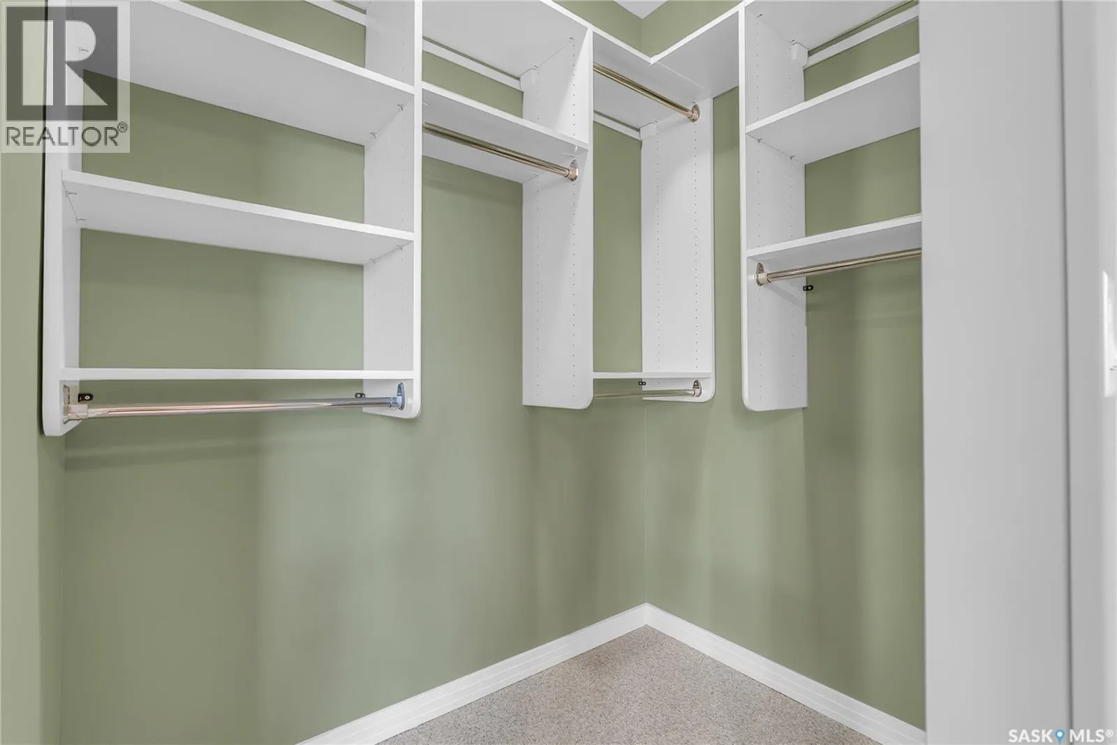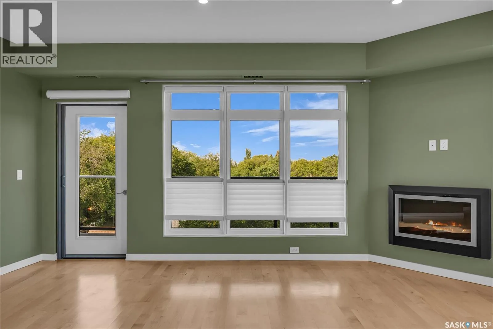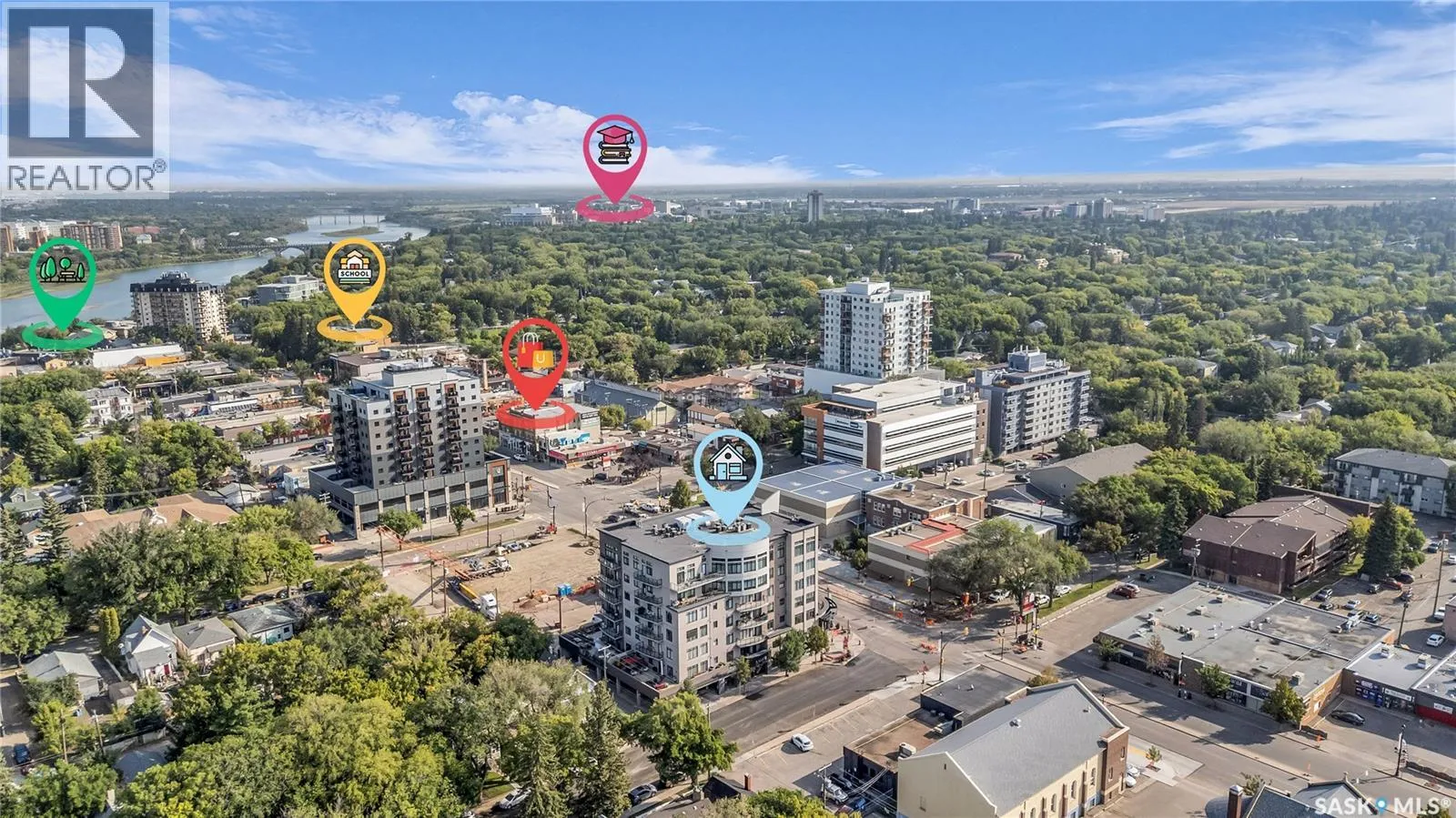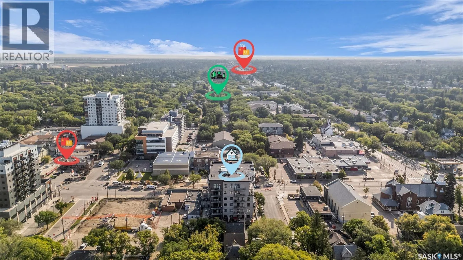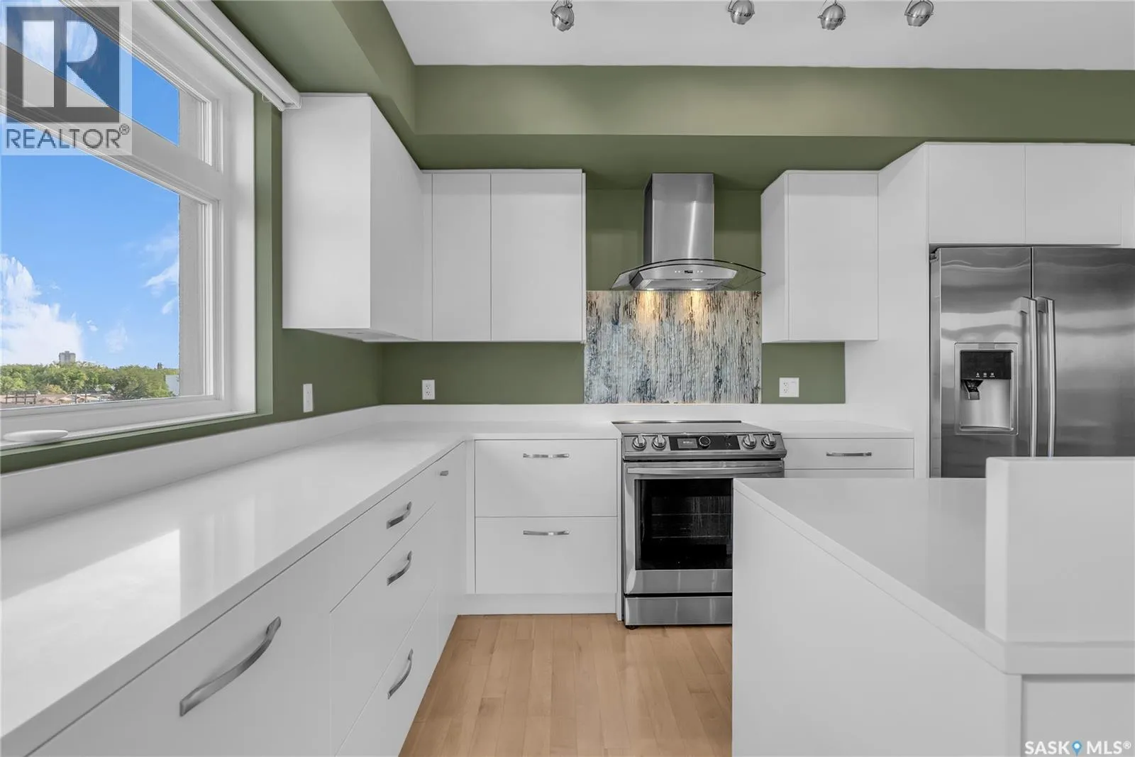 Welcome to the prestigious Luxe offering an exceptional combination of sophistication, comfort, and thoughtful upgrades. The suite features two spacious bedrooms, two beautifully appointed bathrooms, the rare luxury of two balconies, two underground parking stalls, and two external storage areas. The open concept main area is bright and inviting, with ceiling lighting added in 2018 to enhance the living and dining spaces. The kitchen is both stylish and functional, boasting a new dishwasher and smart renovations that introduced custom cabinets to the island, a built-in desk with wine storage, and striking display shelving. Additional upgrades include Hunter Douglas PowerView blinds on seven openings, triple-glazed balcony doors, and west-facing upgraded windows (2022). A true rarity in the condo market, the primary suite was redesigned with both elegance and accessibility in mind. It offers closet organizers and a spa-inspired ensuite that is perfectly suited for people with physical limitations. Features include heated non-glare tile floors, a Toto washlet, a double shower, an accessible sink unit, reinforced walls with integrated towel/assist rails, custom display shelving, thoughtful lighting and convenient laundry bins concealed within cabinetry. The second bathroom was also enhanced with new tile floors and freshly painted walls, while the laundry room was outfitted with cabinets and a collapsible folding table. Throughout the condo, hardwood floors were refinished, and every detail was carefully considered, from art and office storage solutions to built-in cabinetry that maximizes both form and function. Broadway offers an array of amenities within walking distance and is home to Saskatoonâs beloved Fringe Festival, Broadway Street Fair, and some of the cityâs finest pubs and restaurants, also you are just a short walk to the downtown core and the South Saskatchewan River. Note:Some photos have been virtually staged (id:27476)