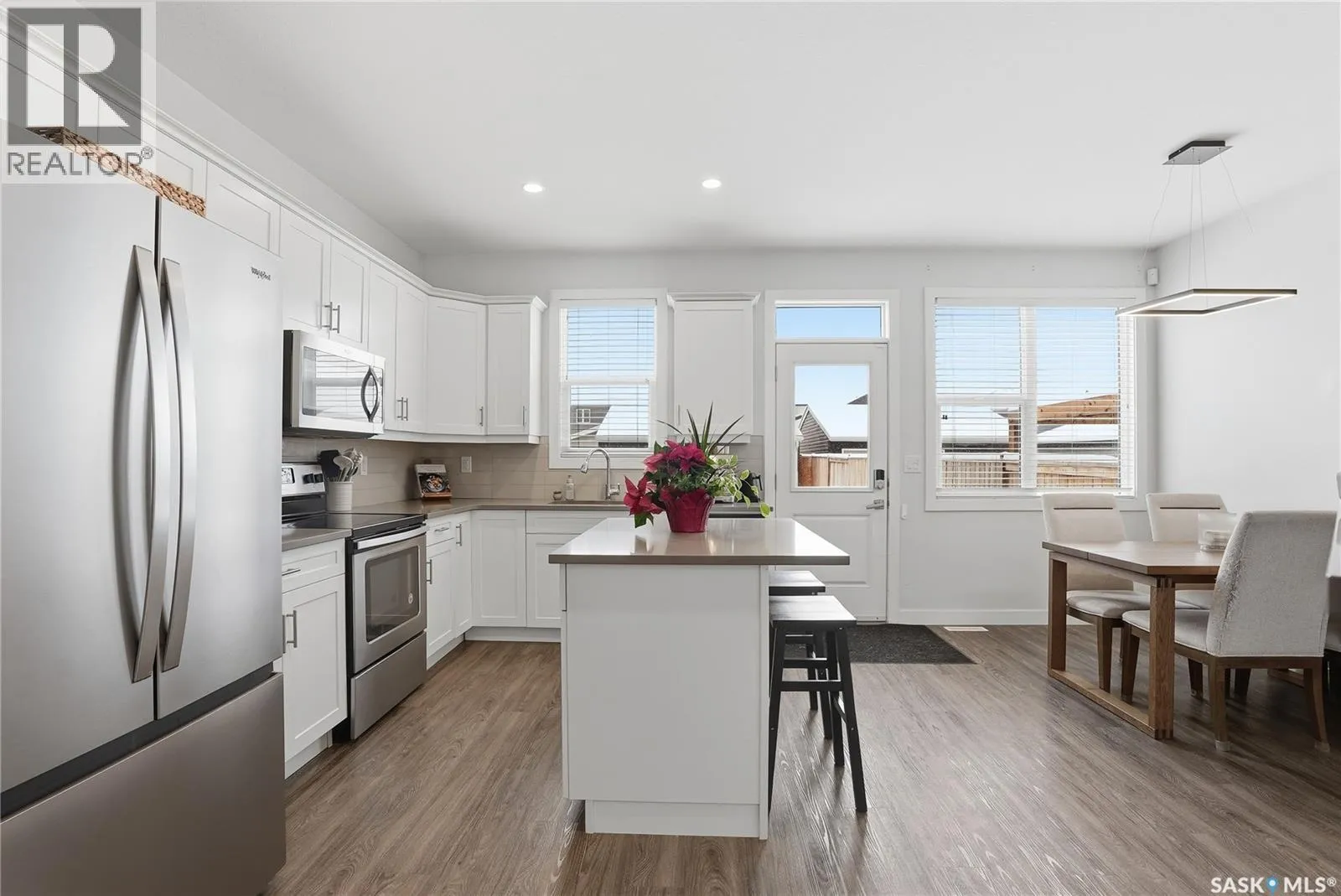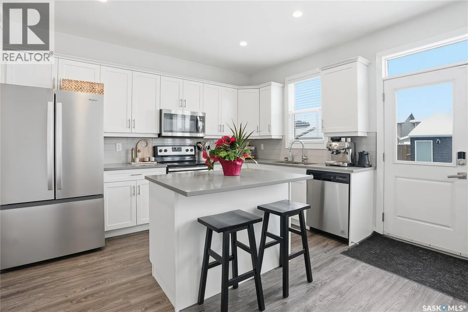 Set on tree-lined Centennial Drive in Kensington, this former show home has been well cared for and thoughtfully upgraded throughout. The two-storey layout offers 1,201 sq. ft. of comfortable, functional living with quartz countertops, durable exterior finishes, and a double detached garage with lane access. The kitchen is clean and practical â a quartz island with seating, tiled backsplash, pantry, stainless appliances, and white maple cabinetry â all open to the main living space. Upstairs, youâll find three bedrooms and two full baths, including a primary with two closets and a private ensuite. The lower level is open and ready if you want more space, with roughed-in plumbing for a future bathroom. Outside, the yard is fully landscaped and fenced, with underground sprinklers, a concrete patio made for summer evenings, and a double garage. Close to schools, transit, and the amenities of Kensington and Blairmore. A polished, move-in-ready home thatâs easy to settle into. (id:27476)