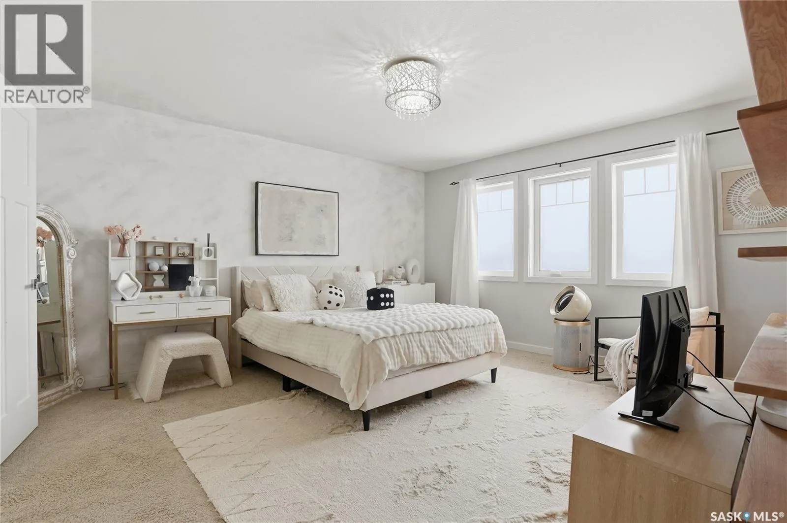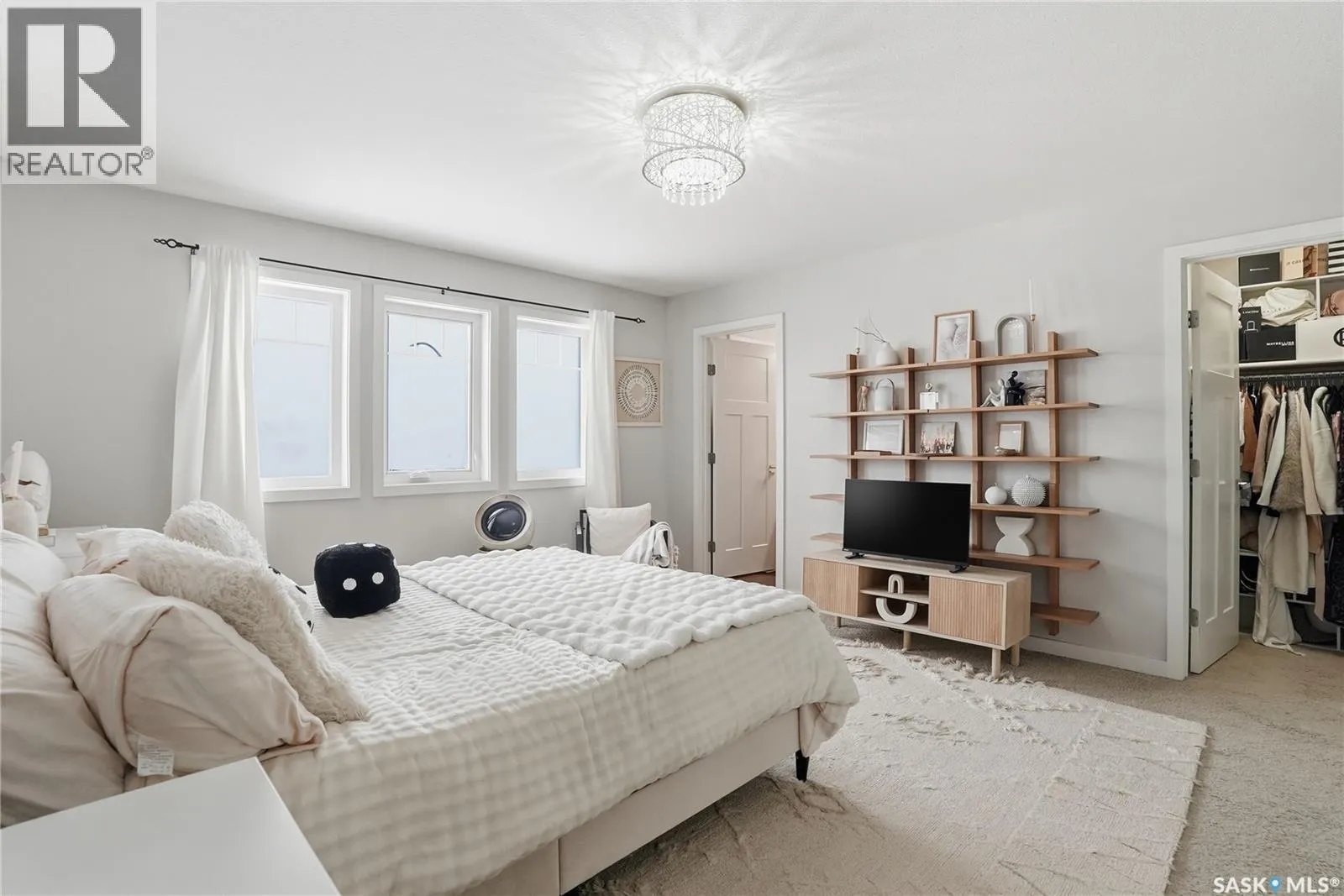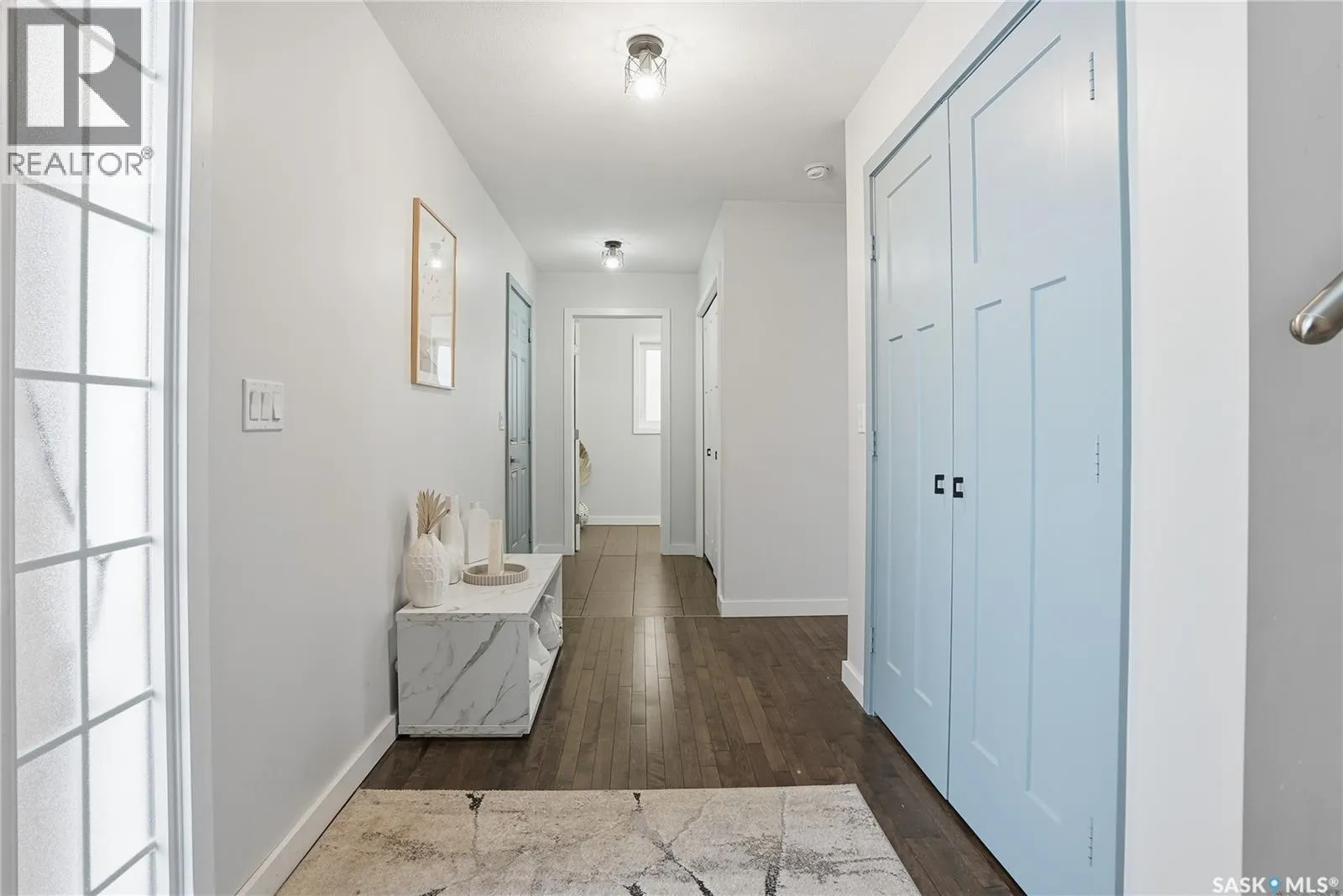 Great family home in the heart of Hampton Village with quick access to shopping, restaurants or Circle Drive to get you to the rest of the city quickly. You'll be impressed the minute you walk thru the ornate front door, greeted by gleaming hardwood floors in the front entry, there is a double wide coat closet and a wide hall that leads you to the attached garage door, the laundry closet and the 2pce bathroom with heated tile floor. The front entry hardwood flows across the main floor into the kitchen, dining room and living room. The kitchen is gorgeous with dark wood grain cabinets with a couple gull-wing glass doors, glass tile backsplash, quartz countertops and island top, stainless steel appliances and pendant lighting. The dining room is adjacent with double doors to the deck and backyard, and this level is open concept to the spacious living room with a grid paneling design feature wall all finished in contemporary white. Upstairs you find the master bedroom with cozy carpet flooring, a walkin closet that is organized with open shelving, drawers, shoe racks and hanger rods, built into the corner of this bedroom is a makeup center with more storage drawers on the bottom and glass gull-wing door cabinets above. The ensuite has a quartz vanity, ceramic tile heated floor and double wide shower with tiled walls and rain down shower head and a heated towel rack. This level also has 2 more spare bedrooms, linen closet and a 4pce bath also with quartz vanity and heated tiled floor and bathtub. The basement is unfinished but is plumbed for another bathroom, could have 2 more bedrooms, family room. The back yard is completely fenced, has a deck with aluminum rails and pergola frame, lawn, trees and shrubs. The double attached garage is insulated and boarded on the inside and the front driveway is double wide stamped and colored concrete. This house has very durable Hardy concrete board siding, Hi efficient furnace and water heater, a/c. (id:27476)