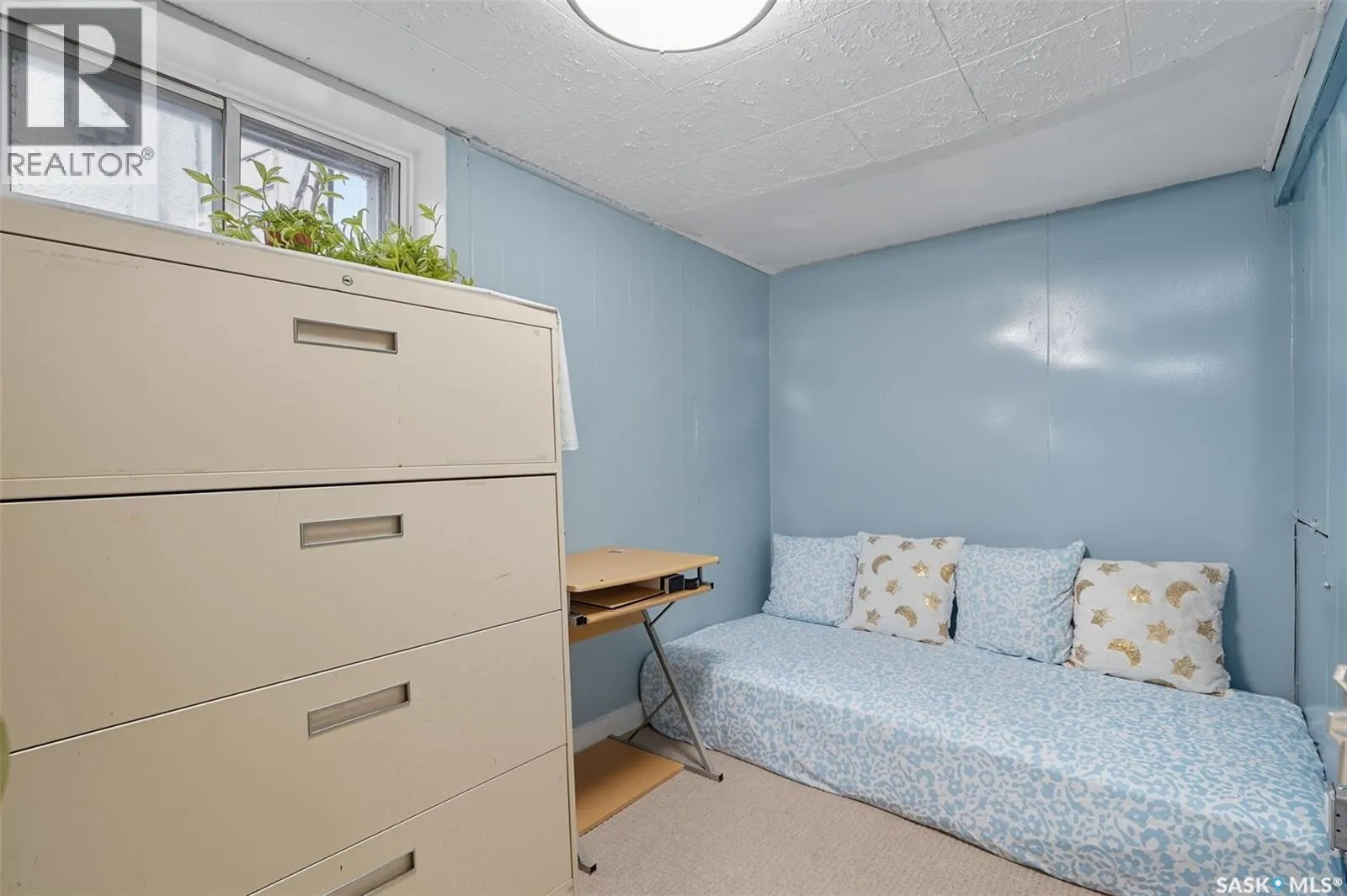 Bright, well-kept 1969 bungalow on a 50Ã130 corner lot in Meadowgreenâ~2-min walk to the Dawah & Community Centre, steps to 22nd St transit/amenities, and an easy stroll to St. Paulâs Hospital. Main level offers 3 bedrooms, a gorgeous eat-in kitchen (tile flooring, ceiling fan, LED pot lights, long run of cabinetry), a comfortable living room, and an updated 4-pc bath with tiled surround/niche (see photos). Bedrooms show warm wood tones; vinyl plank runs through most of the main for easy care. The enclosed back porch adds year-round utilityâcold-room storage in winter, gear space in summer. Finished lower level features a bedroom + windowed den (use as office/flex), a bathroom with in-bath laundry (see photos), and extra storage. Outside, enjoy a fully fenced, extra-deep backyard with rear gate access and a single detached garage with opener and space for a workbench. Mature city trees are beyond the rear fenceâso you get privacy and shade without giving up usable yard area. Possession March 2025. (id:27476)