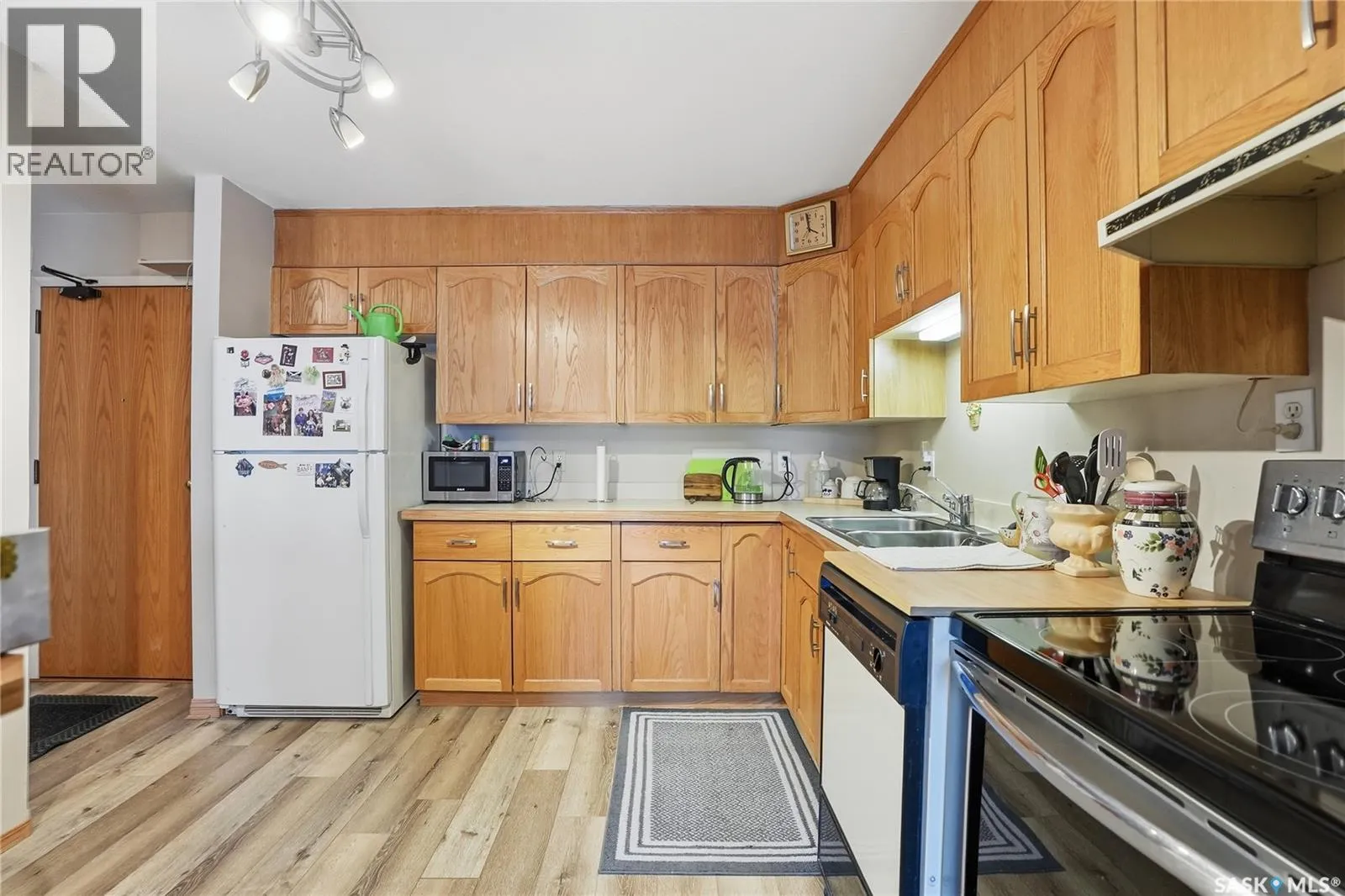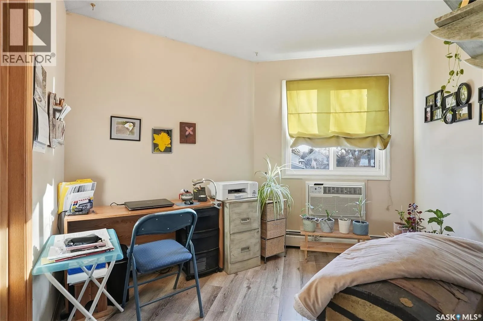 Welcome to Colony Square, ideally located in Saskatoonâs sought-after Nutana neighbourhood. This well-maintained 1 bedroom plus den condo offers a functional open-concept layout with durable LVP flooring throughout and the bright living area features direct access to a quiet balcony space. The balcony was redone about 10 years ago with new wood base and vinyl covering. The kitchen is equipped with a newer stove complete with a warming drawer and thermometer plug, dishwasher, hood fan and lots of cabinet space. A large in-suite storage room with built-in shelving and washer & dryer, while an additional storage locker and one underground parking stall add extra convenience. Residents enjoy a well-managed building with a welcoming amenities room featuring shuffleboard, a pool table, and a balcony. Steps from Broadway, downtown, 8th Street, and transit, this is Nutana condo living done right; practical, walkable, and low-maintenance without feeling boring! (id:27476)
