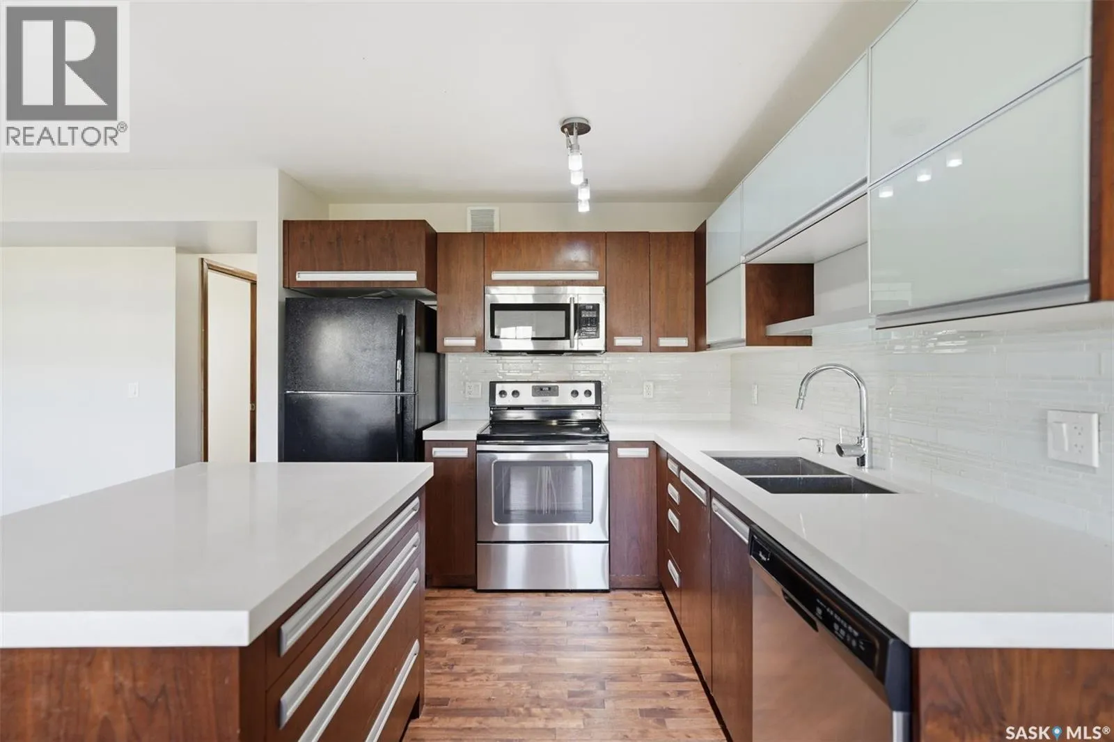This townhouse is move-in ready, bright, and has a layout that just makes sense. The main floor has an open concept design with plenty of natural light, quartz countertops, hardwood floors throughout, and a great flow between the kitchen, dining, and living spaces. The kitchen has tons of storage, stainless steel appliances, and a large island that works perfectly for cooking or gathering around with friends. Upstairs, the primary bedroom gets lots of sunlight from the south facing windows and has a spacious walk-in closet along with a clean, four piece bathroom. The two additional bedrooms up here are a good size, great for kids, guests, or even a home office setup. The basement has been professionally developed and has never been lived in. Itâs bright and open, with space for a family room or workout area, plus a modern three piece bathroom and a separate laundry area tucked at the back. Outside, youâve got your own private patio, perfect for BBQs or morning coffee, and access to a large well-kept community green space that gives you that extra bit of outdoor room without the maintenance. The one-car attached garage is a nice bonus for parking or extra storage. This townhouse really blends convenience, comfort, and modern style, all in a great Willowgrove location close to schools, parks, and walking paths. (id:27476)
