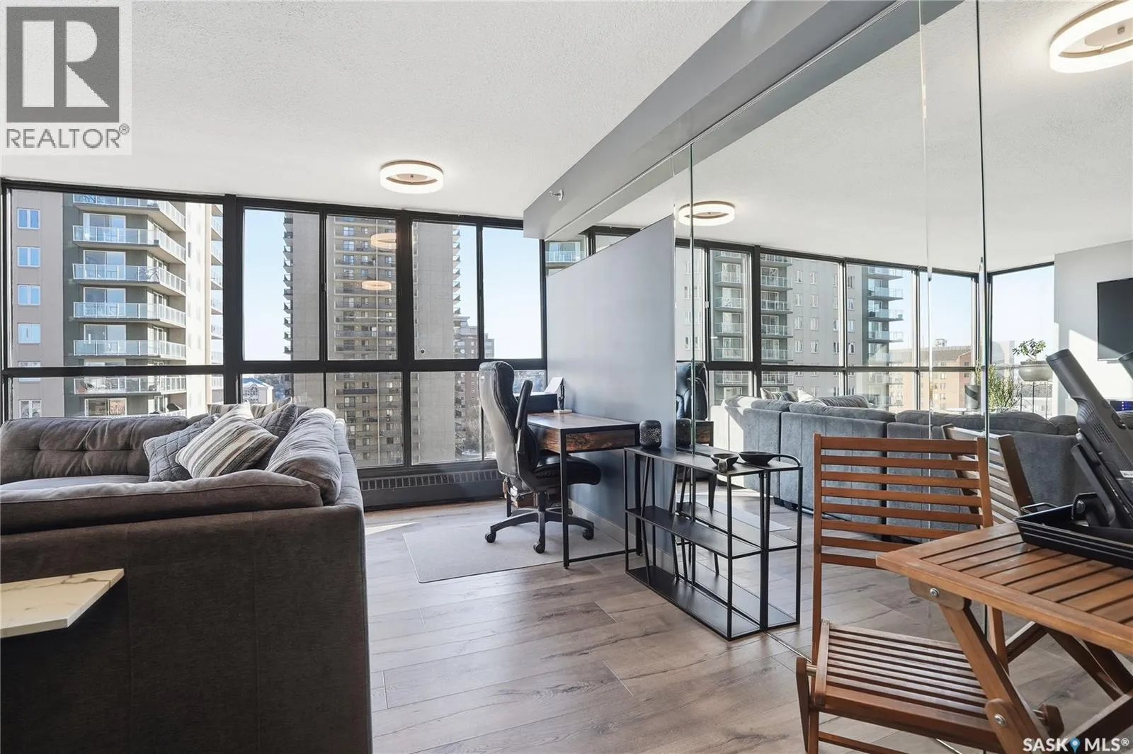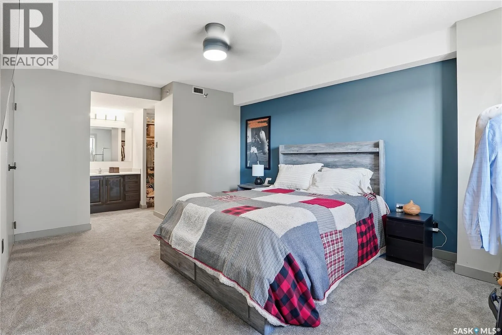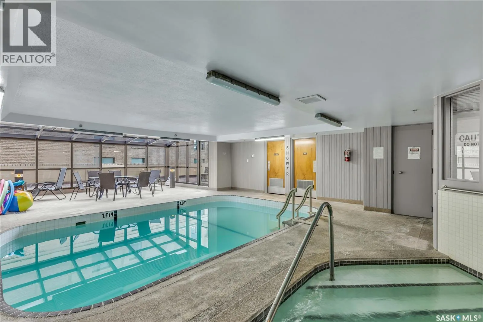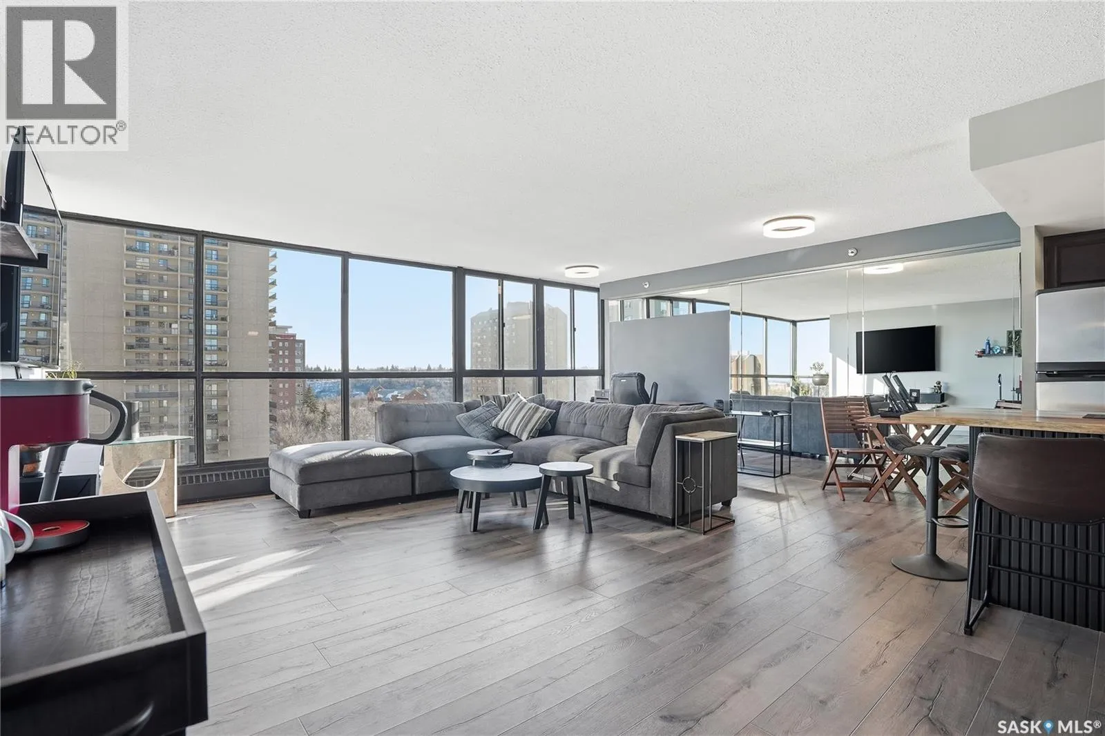 With sweeping views of downtown, this beautifully updated two-bedroom, two-bathroom home in The Terrace offers the perfect balance of comfort, style, and convenience. Floor-to-ceiling windows in the living and dining areas fill the space with natural light and create a bright, welcoming atmosphere thatâs ideal for both relaxing and entertaining. Both bedrooms enjoy wonderful sunlight, and the spacious primary suite is a true retreat with a walk-in closet and private ensuite. Thoughtful updates throughout make this home move-in ready, allowing you to simply unpack and enjoy. The buildingâs amenities â including an indoor pool, hot tub, recreation room, and outdoor patio with barbecue area â add to the ease of everyday living. Located within walking distance to the University of Saskatchewan, City Hospital, RUH, and downtown, this is an ideal home for those seeking a vibrant, low-maintenance lifestyle in a central, established neighbourhood. Immediate possession is available â a wonderful opportunity to make this beautiful space your next chapter. (id:27476)