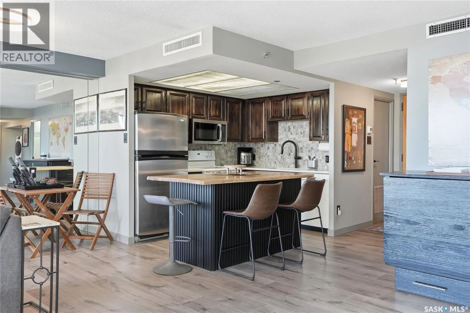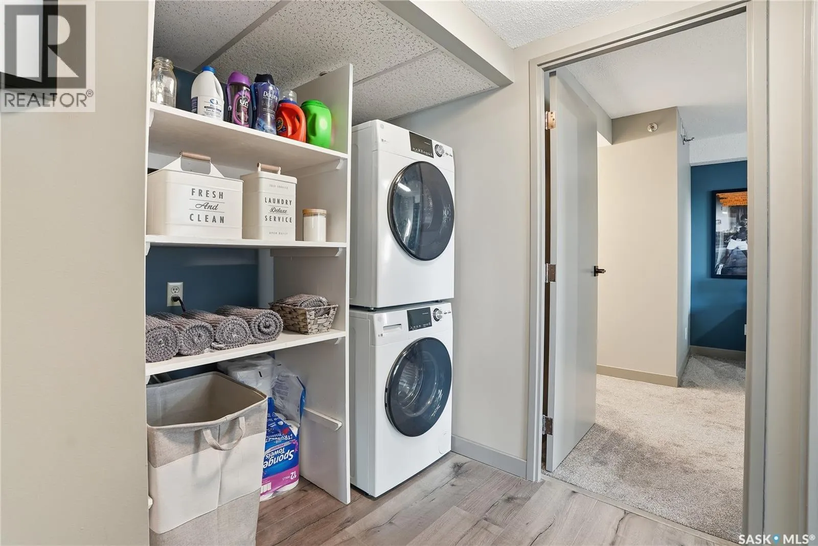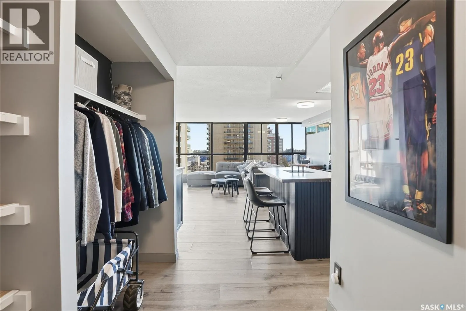 With sweeping views of downtown, this beautifully updated two-bedroom, two-bathroom home in The Terrace offers the perfect balance of comfort, style, and convenience. Floor-to-ceiling windows in the living and dining areas fill the space with natural light and create a bright, welcoming atmosphere thatâs ideal for both relaxing and entertaining. Both bedrooms enjoy wonderful sunlight, and the spacious primary suite is a true retreat with a walk-in closet and private ensuite. Thoughtful updates throughout make this home move-in ready, allowing you to simply unpack and enjoy. The buildingâs amenities â including an indoor pool, hot tub, recreation room, and outdoor patio with barbecue area â add to the ease of everyday living. Located within walking distance to the University of Saskatchewan, City Hospital, RUH, and downtown, this is an ideal home for those seeking a vibrant, low-maintenance lifestyle in a central, established neighbourhood. Immediate possession is available â a wonderful opportunity to make this beautiful space your next chapter. (id:27476)
