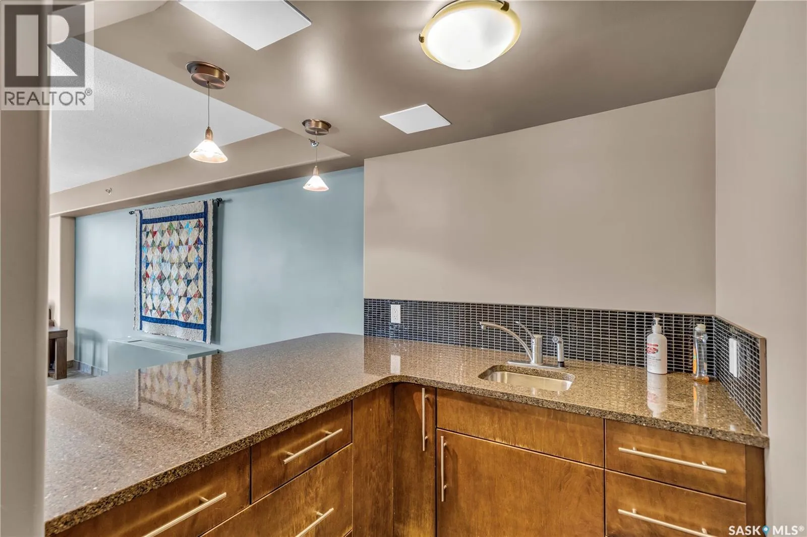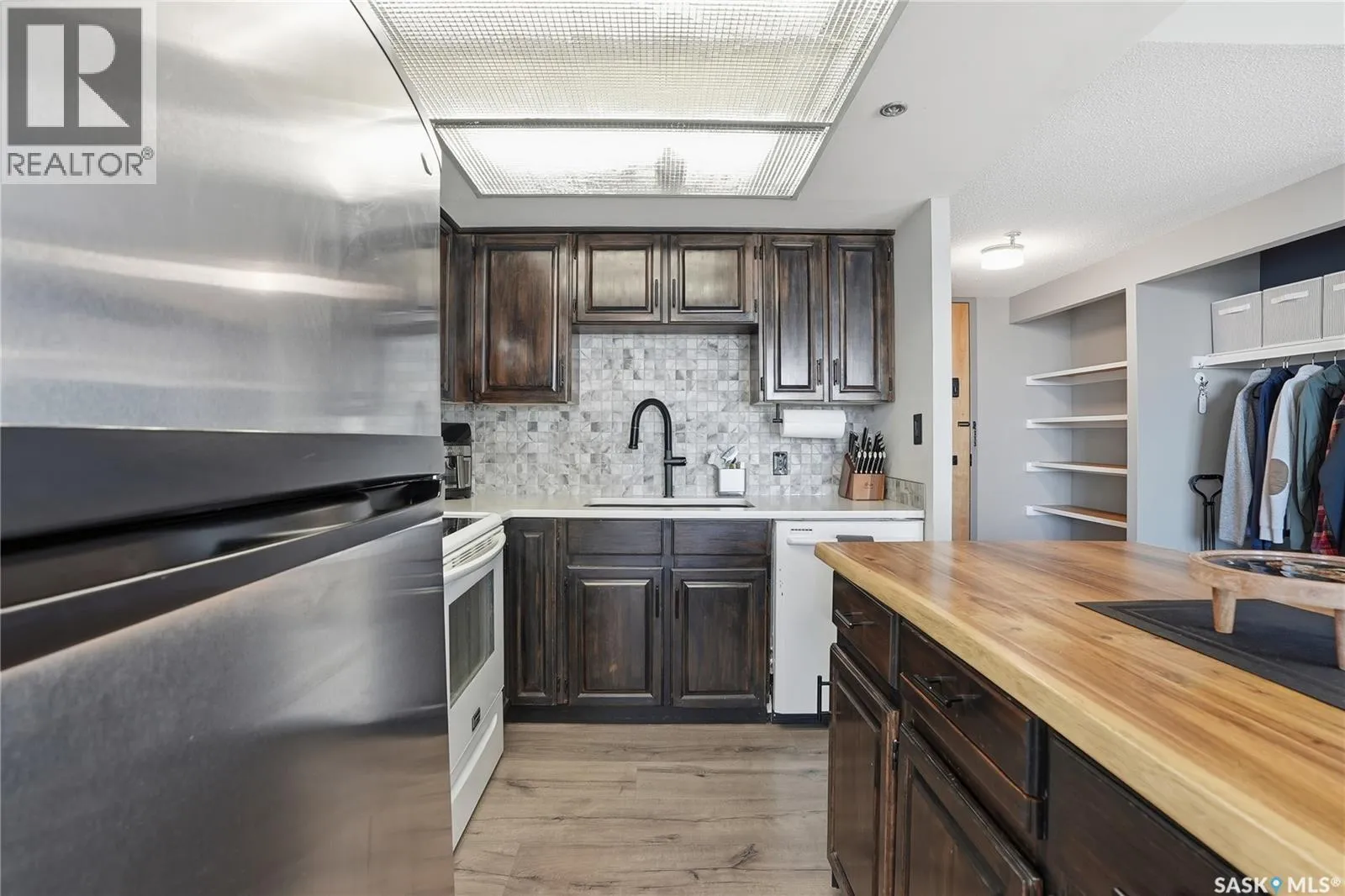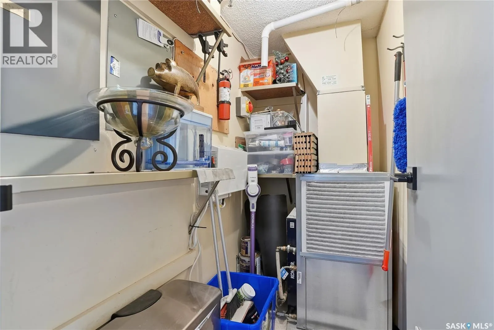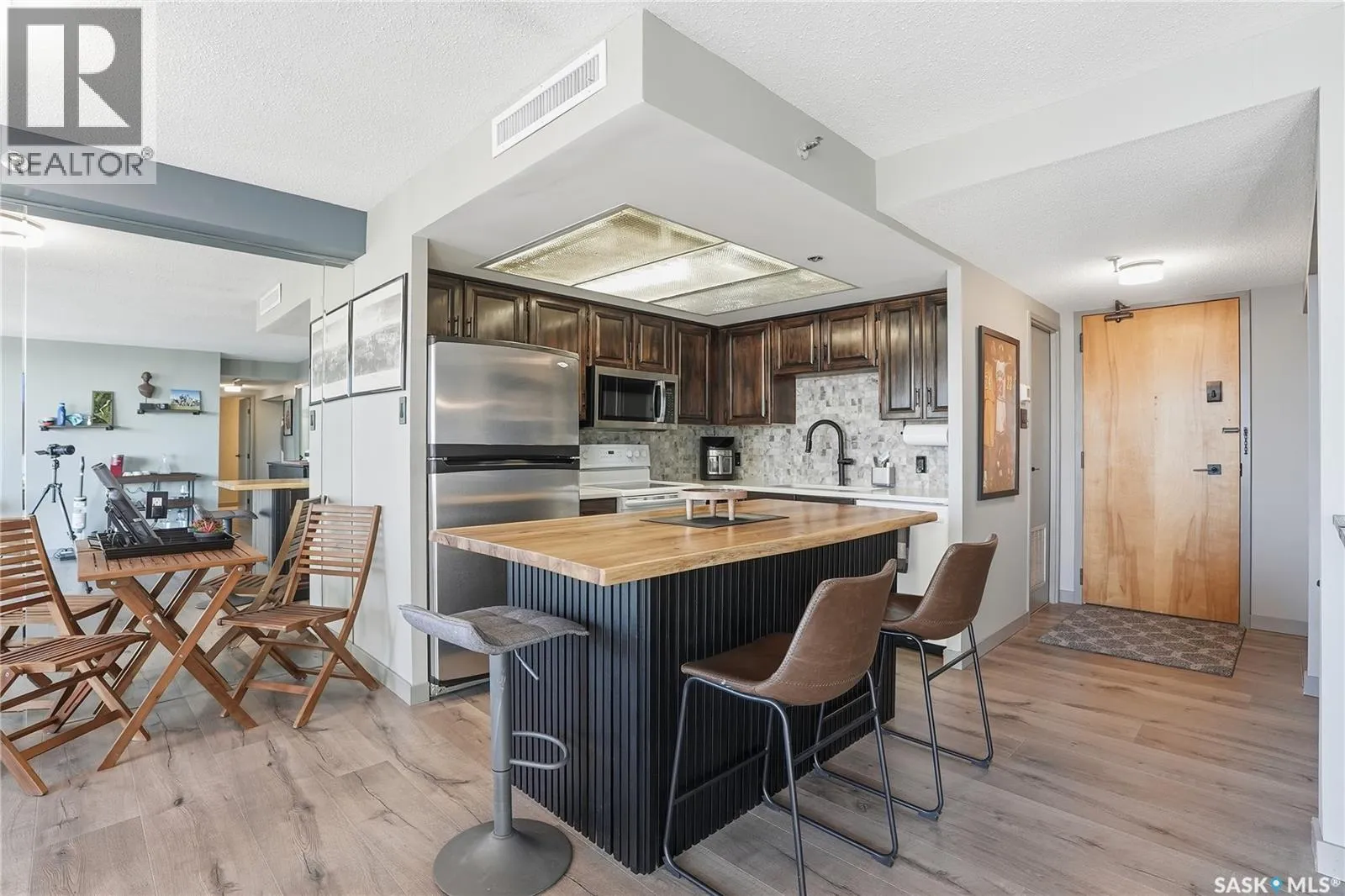 With sweeping views of downtown, this beautifully updated two-bedroom, two-bathroom home in The Terrace offers the perfect balance of comfort, style, and convenience. Floor-to-ceiling windows in the living and dining areas fill the space with natural light and create a bright, welcoming atmosphere thatâs ideal for both relaxing and entertaining. Both bedrooms enjoy wonderful sunlight, and the spacious primary suite is a true retreat with a walk-in closet and private ensuite. Thoughtful updates throughout make this home move-in ready, allowing you to simply unpack and enjoy. The buildingâs amenities â including an indoor pool, hot tub, recreation room, and outdoor patio with barbecue area â add to the ease of everyday living. Located within walking distance to the University of Saskatchewan, City Hospital, RUH, and downtown, this is an ideal home for those seeking a vibrant, low-maintenance lifestyle in a central, established neighbourhood. Immediate possession is available â a wonderful opportunity to make this beautiful space your next chapter. (id:27476)