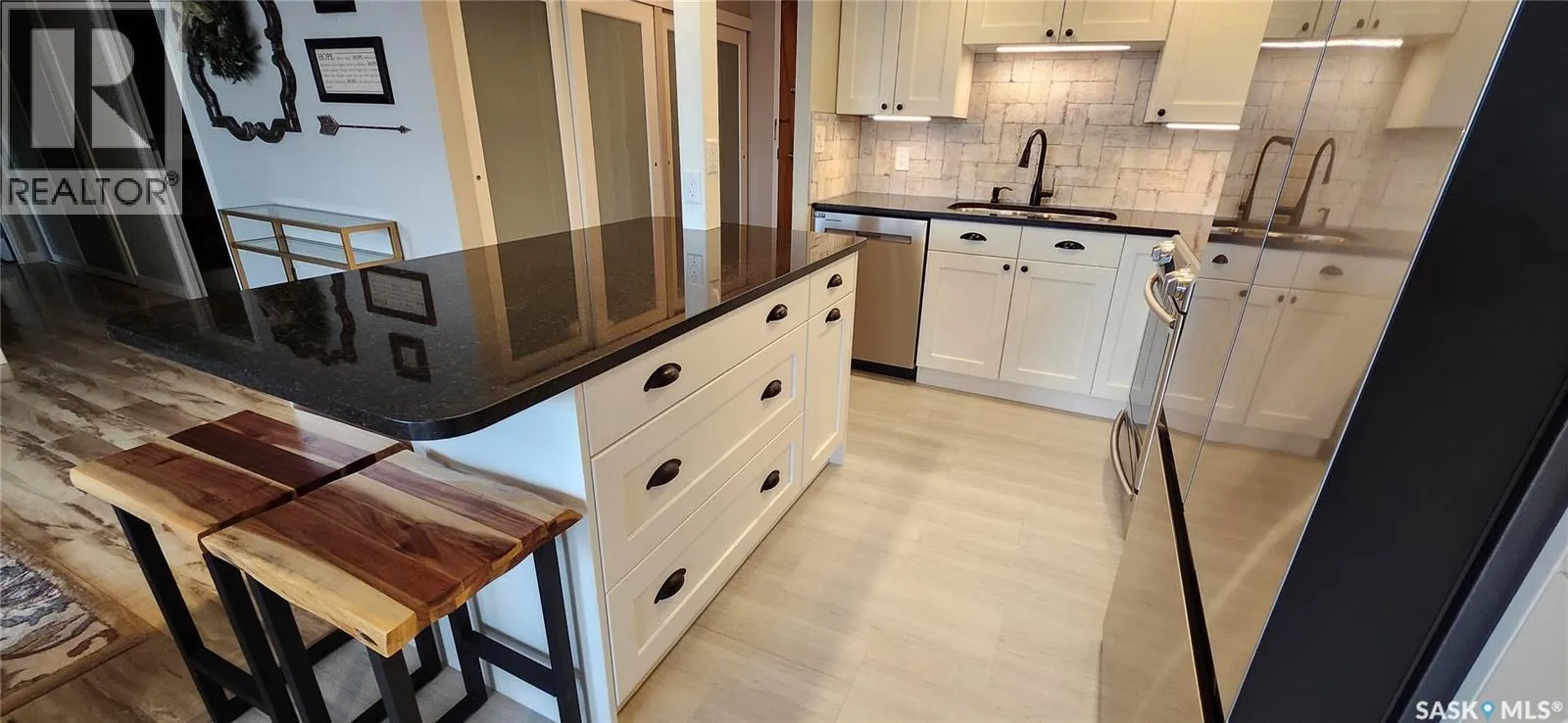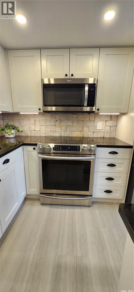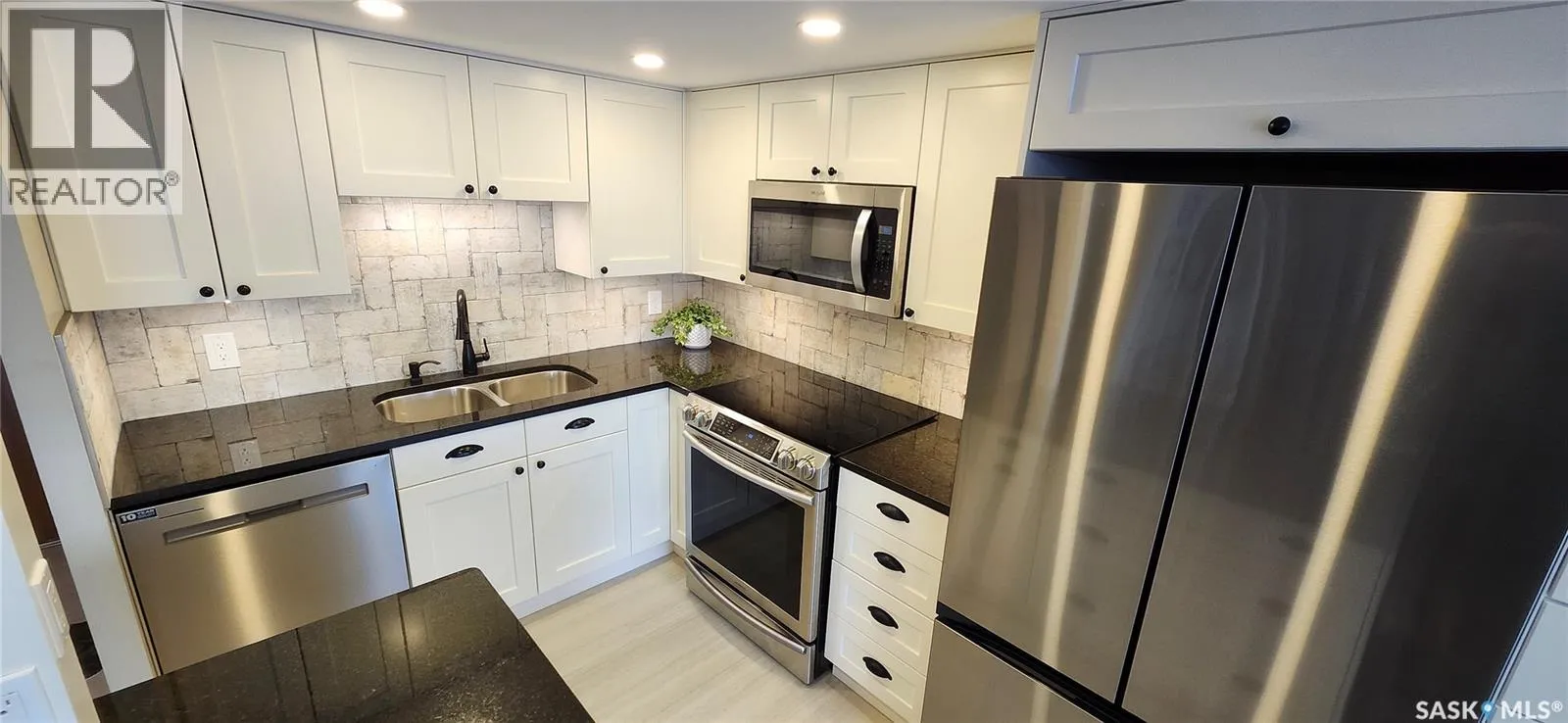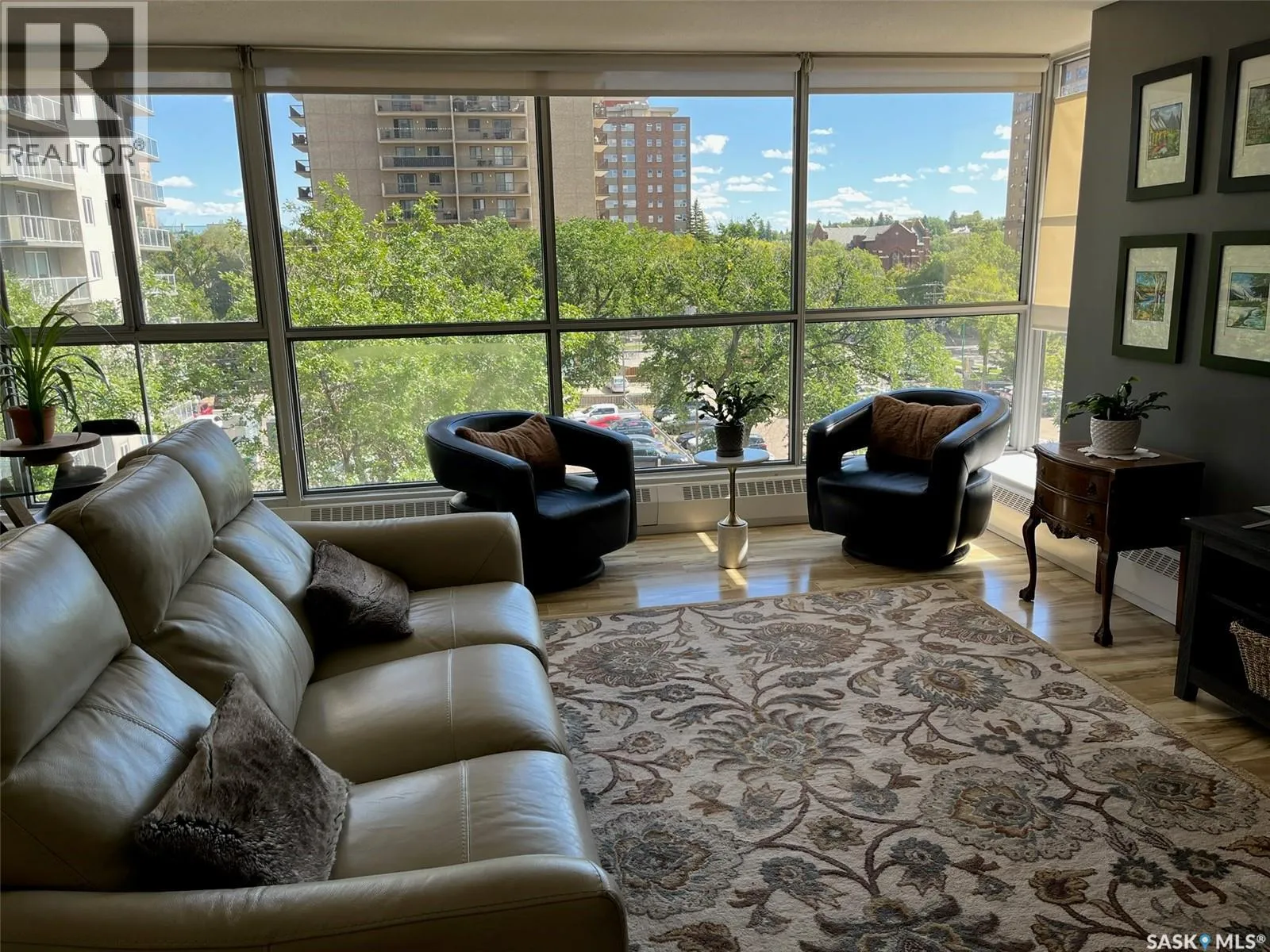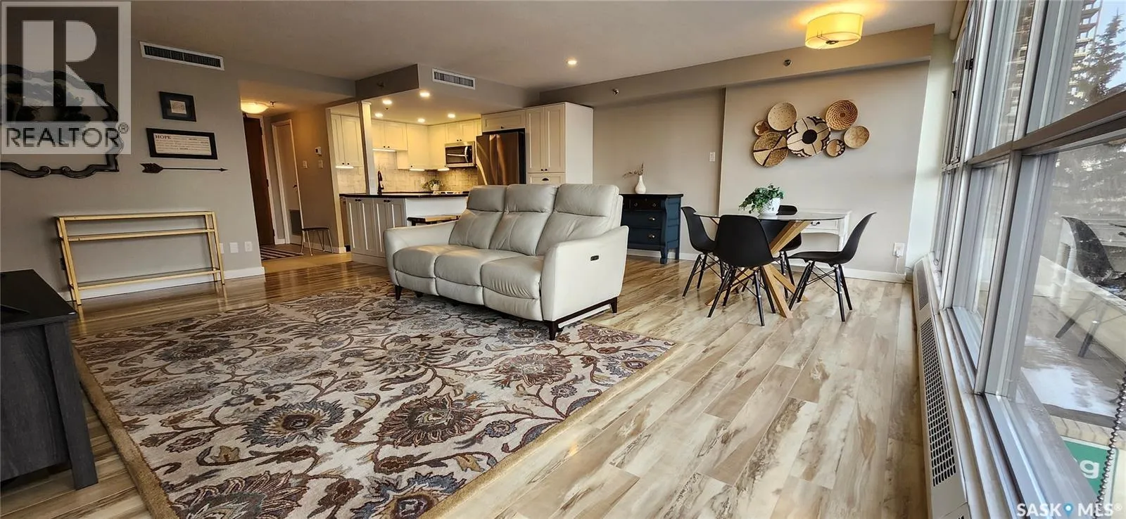 Convenient, luxurious downtown living in The Terrace condo building. Walk to the river, the U of S, & downtown amenities. This immaculate 2 bedroom / 2 bath 1076 sq ft condo is light and bright with a wall of floor to ceiling east facing windows. The new kitchen is sure to impress with quality white cabinetry, granite countertops, undermount double sinks, stainless steel appliances, updated lighting, and a huge island for food prep or entertaining. Attention paid throughout with customized closets, pantry, and storage room to maximize storage space. Boiler & forced air heat & central air conditioning keep you comfortable. Indoor heated parking. The Terrace building amenities include a swimming pool, hot tub, sauna, 4th floor community room & outdoor patio/BBQ area, a guest suite + a roof top patio for 22nd floor panoramic views. This unit and building are definitely worth a look! (id:27476)