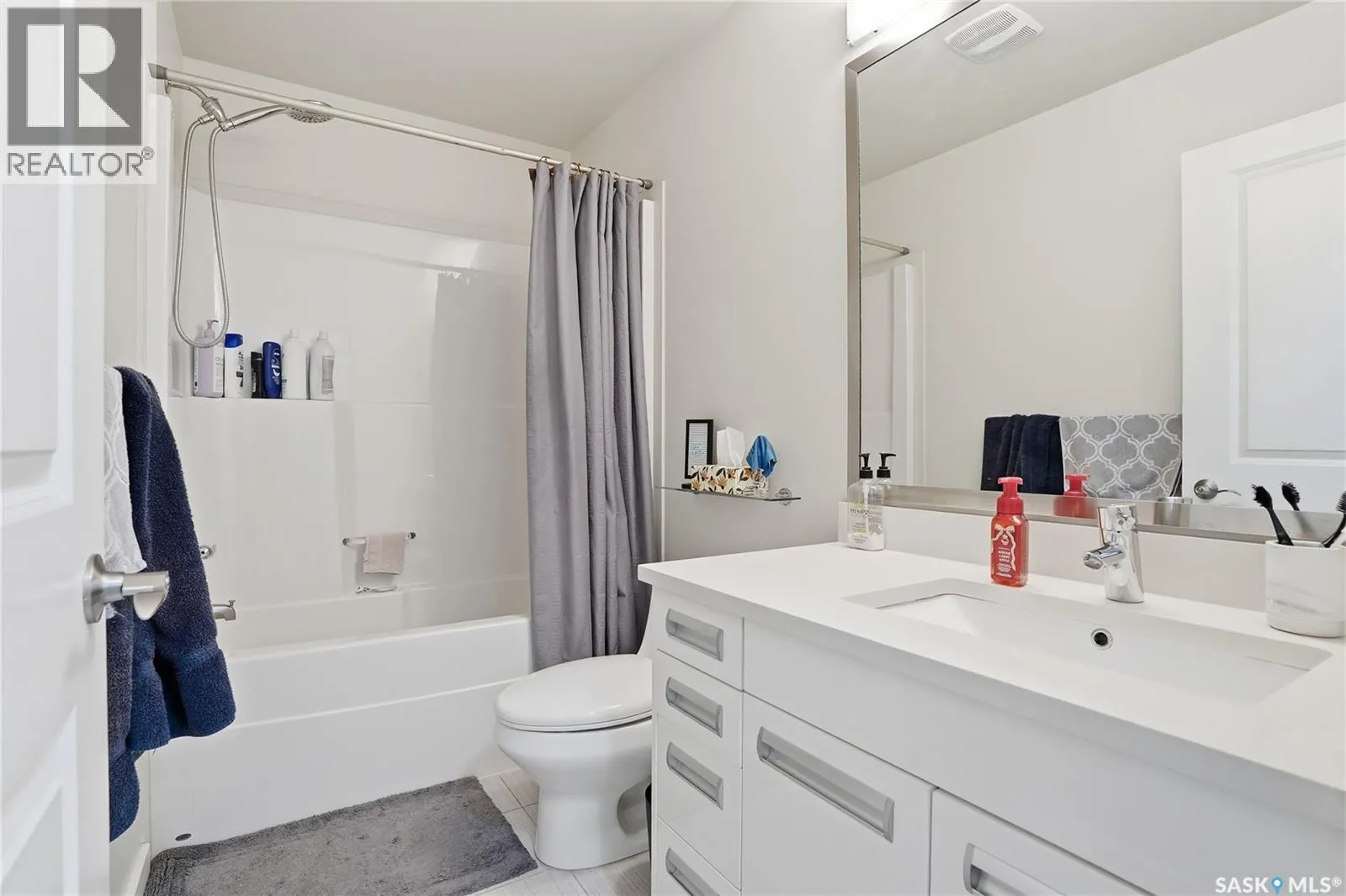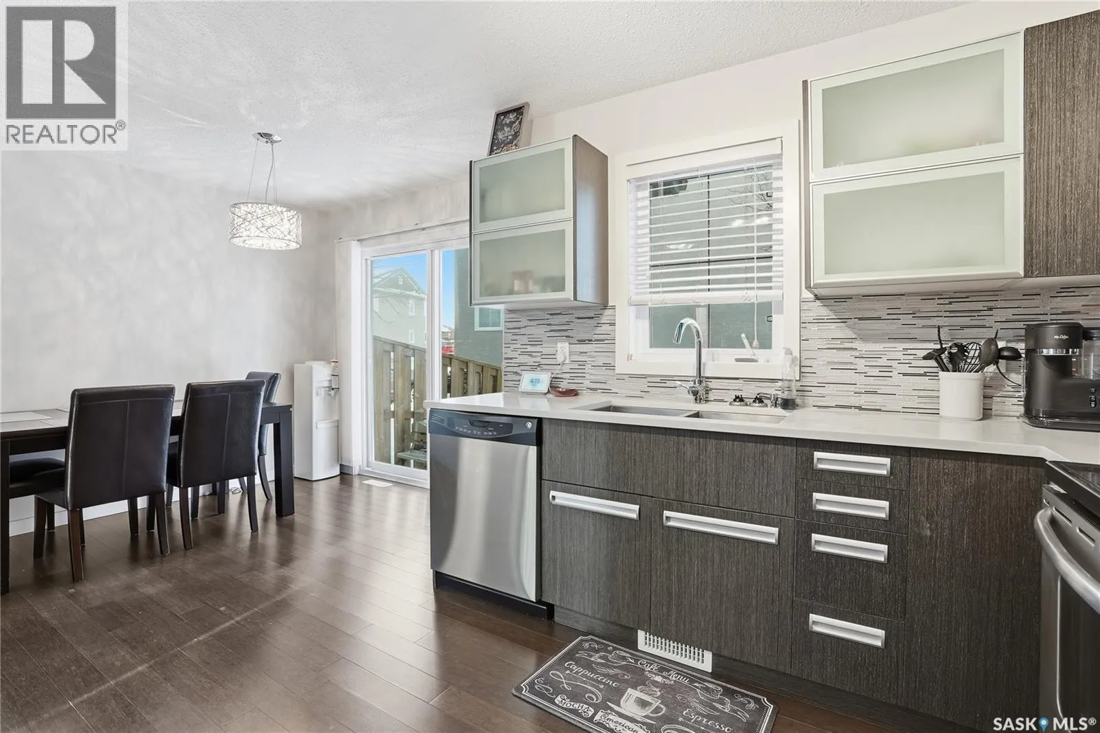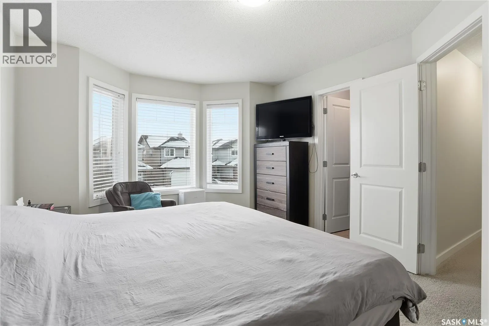 Bright, spacious, and ideally located, this middle-unit Sandpointe townhome in Stonebridge offers a perfect blend of style, comfort, and convenience. Enjoy an abundance of natural light, a functional layout, and a prime setting in one of Saskatoon's most desirable neighbourhoods. The home is ideally situated close to two elementary schools, parks & walking paths, grocery stores, restaurants, and other everyday amenities. The main floor features an open design ideal for both daily living and entertaining. A spacious living room, enhanced by the bay window, creates a warm and inviting atmosphere. The dining area flows seamlessly into the fully-equipped kitchen, complete with modern appliances, a stylish tile backsplash, and ample cabinetry. Stepping outside, you will find the outdoor patio, perfect for morning coffee, barbecuing with friends, or simply enjoying the fresh air. A convenient 2-piece bathroom completes the main level. Upstairs, you'll find three spacious bedrooms, including a primary suite with walk-in closet. A well-finished 4-piece bathroom serves the second level with both style and functionality. The fully finished basement provides valuable additional living space, featuring a large family room ideal for movie nights, a play area, or a home gym, along with a generous storage area to keep everything organized. Laundry facilities are also located on this level for added convenience. Additional highlights include central air conditioning, two parking stalls, off-street guest parking, and additional street parking directly in front of the unit available for guests and visiting family. Your furry friends are welcome here, as the pet policy has no weight limit. This move-in ready home shows beautifully, and has been well maintained. For those seeking a low-maintenance home in a vibrant, family-friendly community with exceptional convenience, this Sandpointe townhome is a must-see! (id:27476)