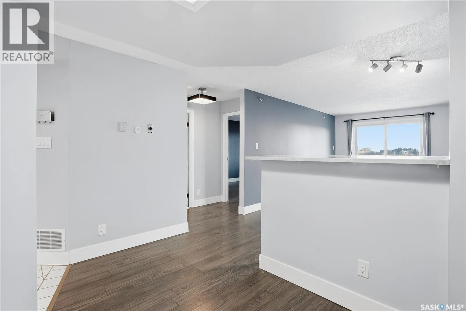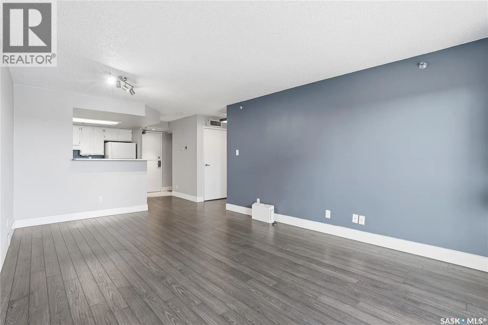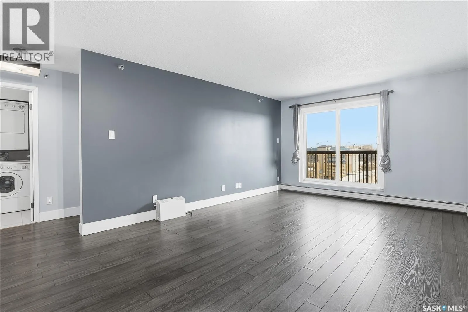 Welcome to unit #905 â 311 6th Avenue North, a 677 sq ft 9th floor condo located in Saskatoonâs Central Business District. Coming inside, you are met with a bright, open concept floor plan. Your kitchen features quartz countertops, fridge, stove, microwave and dishwasher, white painted cabinets, and marble breakfast bar great for additional seating. Open to your dinette, and family room. With sliding door access to your East facing balcony, with PVC siding, and beautiful views overlooking Kinsmen Park and the river. Your bedroom provides ample space with a closet with custom organizers and continued laminate flooring. Your 4-pc bath features tile flooring, tile surround tub, modern vanity, and stacking washer/dryer for convenient in-suite laundry. 1 underground parking stall is included. Complex contains a workout room, a sports court, convenience store, hair salon, dry sauna, and much more â making this a highly desired building! Do not miss out on this downtown opportunity! (id:27476)
