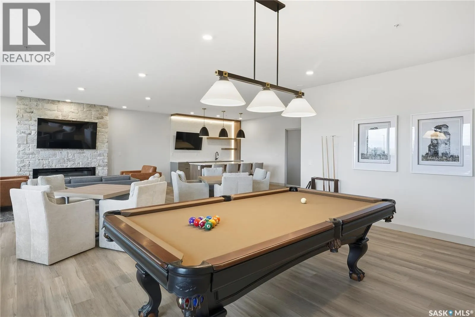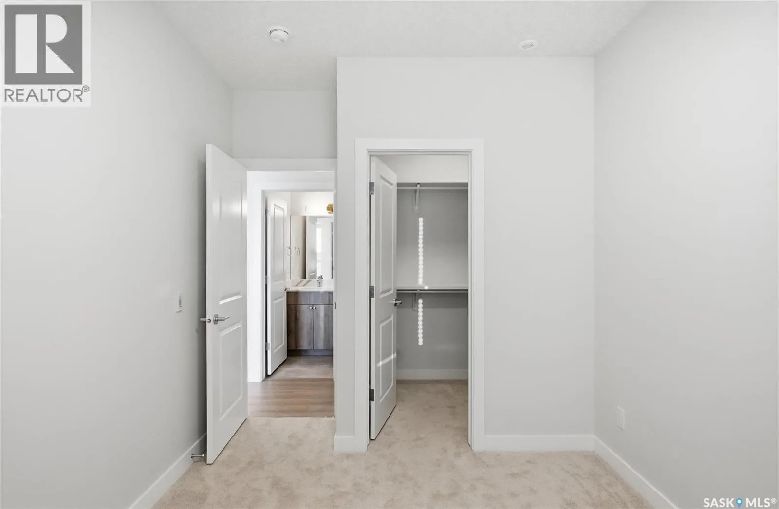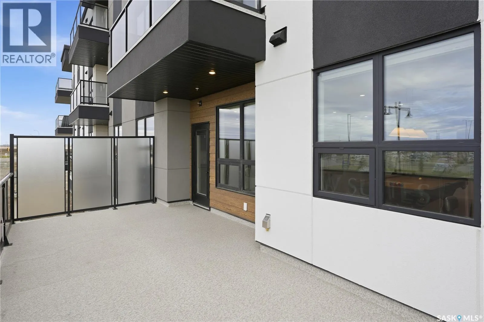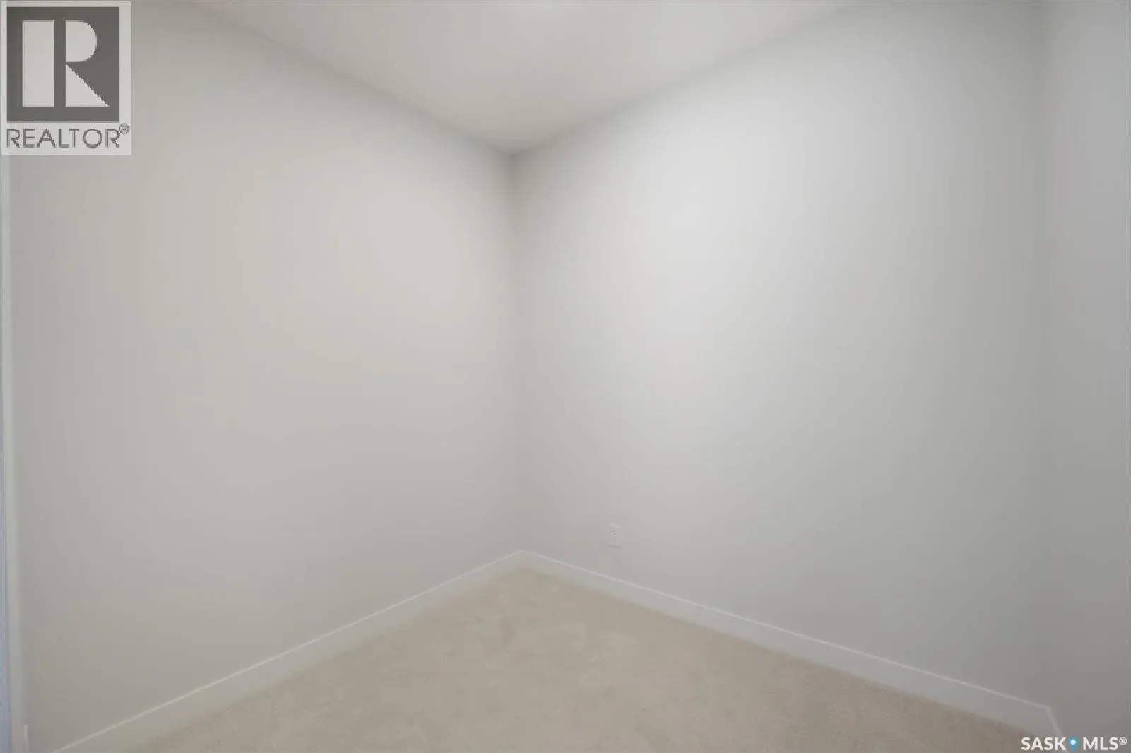 Welcome to âRYSE by North Ridge' located in Saskatoonâs growing community of Brighton! RYSE is a modernized apartment style condominium complex offering 1 bedroom, 2 bedroom, and 2 bedroom + den options. You will immediately notice the welcoming nature of RYSE the moment you step into the warm and inviting front entrance. Unit 1303 (Skyline layout) is a south east facing 964 sq ft condo with 2 bedrooms, 2 bathrooms, a den, separate laundry room, galley style kitchen, and dining/living areas. The interior features high end designer finishes, fixtures, countertops, and flooring, all with quality built craftsmanship. A private partially covered balcony awaits complete with duradeck, glass railing, natural gas bbq outlet, and electrical outlet. Each condo unit comes with a parking stall located in the heated parkade as well as a convenient storage room. Exterior parking stalls may be available to purchase. Each unit also includes a kitchen and laundry appliance package and air conditioning. RYSE has an amenity room for you to visit and relax featuring a bar area, comfortable seating, pool table, bathroom, and an outdoor patio lounge. GST and PST included in purchase price with any rebates to builder. Sask Home Warranty Premium Coverage Plan. This prime location is within a few minute walk to grocery/shopping/restaurants/bus and several other amenities. Show home hours are Mon thru Thurs 5-8PM and Weekends 12-5PM. Call to view! (id:27476)