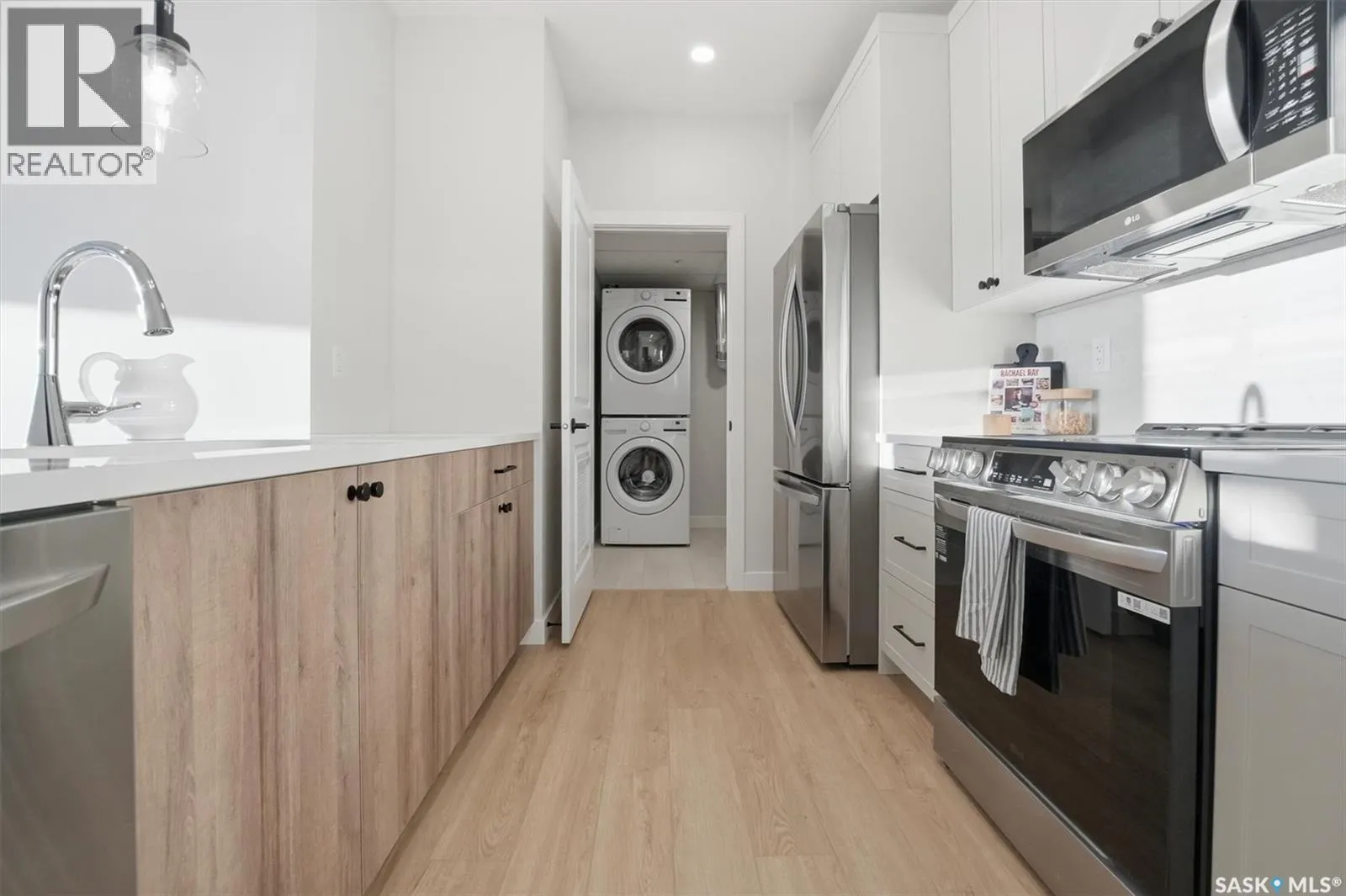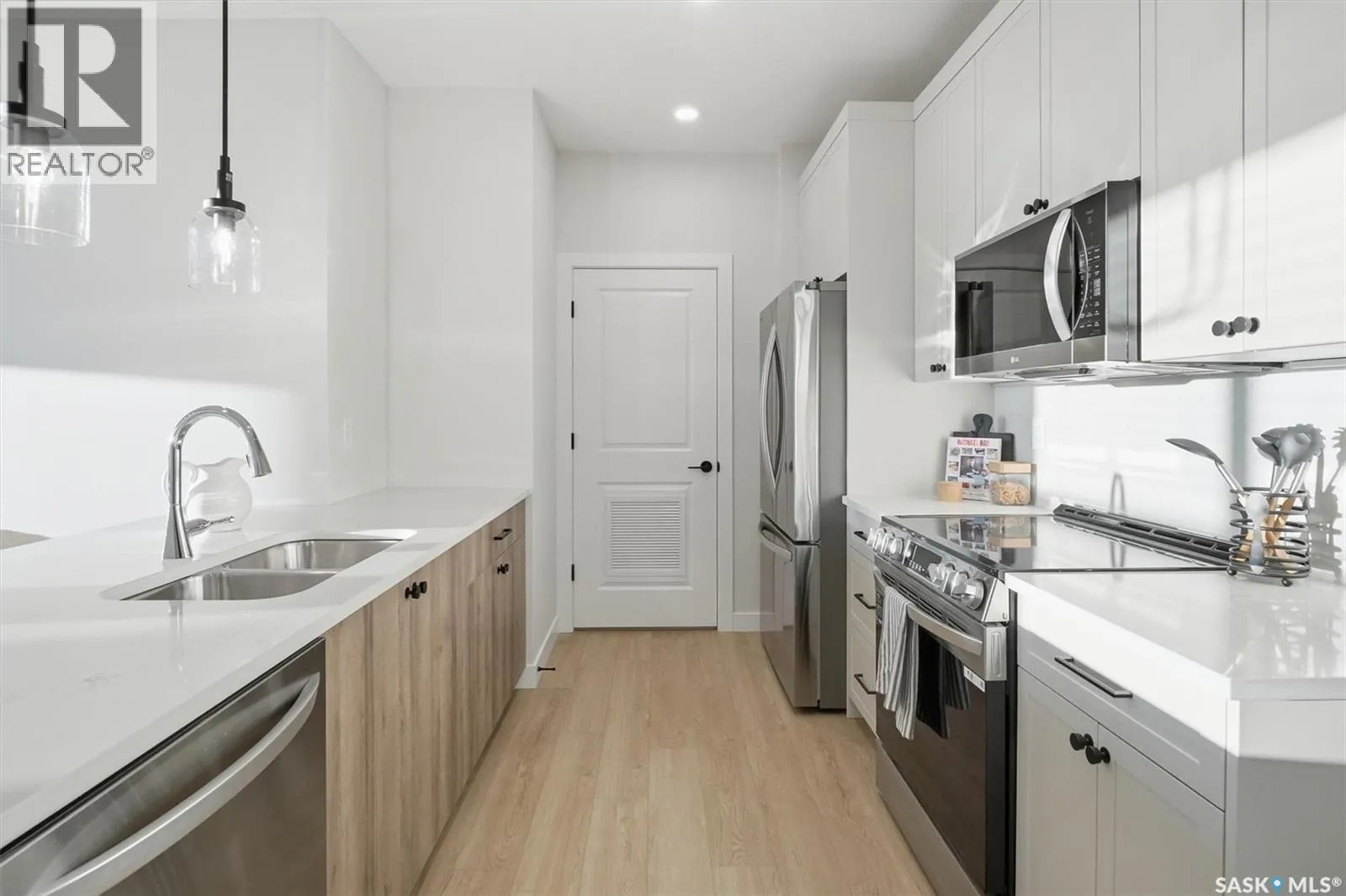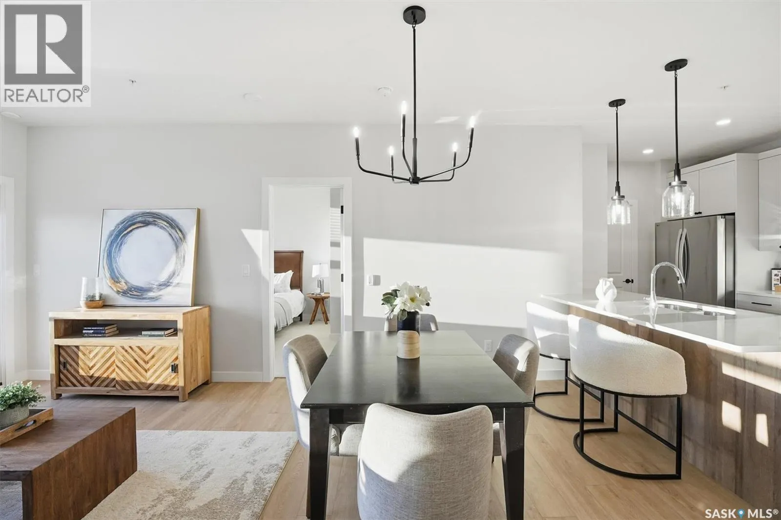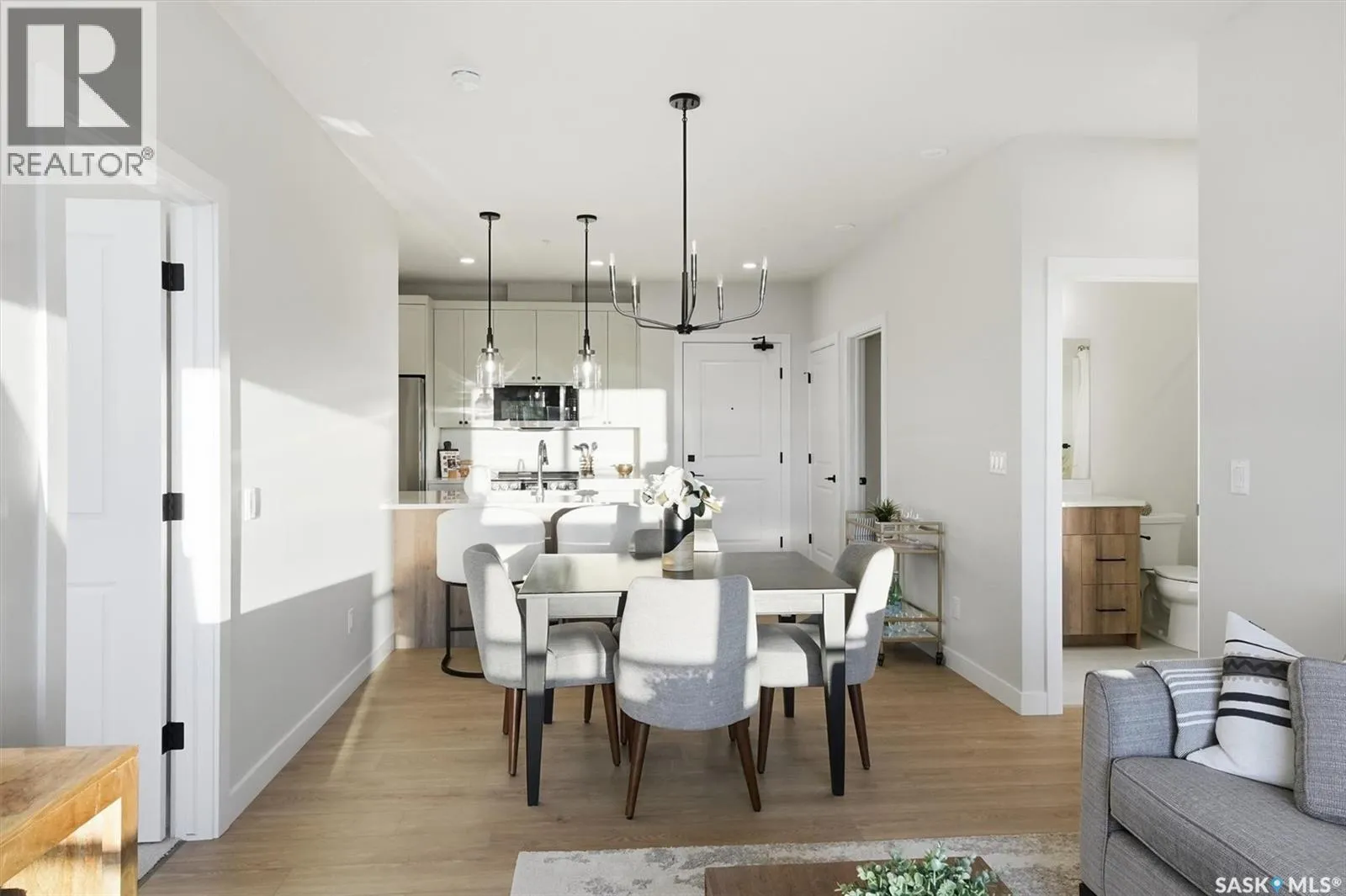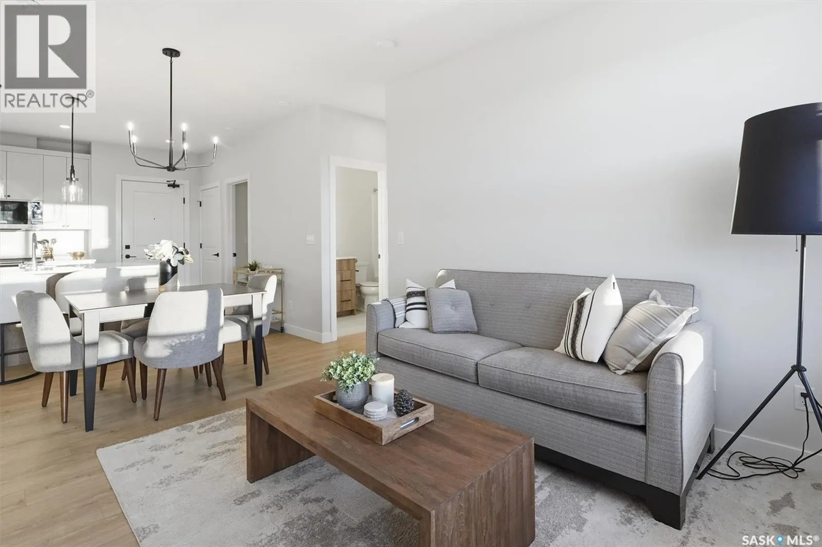 Welcome to âRYSE by North Ridge' located in Saskatoonâs growing community of Brighton! RYSE is a modernized apartment style condominium complex offering 1 bedroom, 2 bedroom, and 2 bedroom + den options. You will immediately notice the welcoming nature of RYSE the moment you step into the warm and inviting front entrance. Unit 1203 (Skyline layout) is a south east facing 964 sq ft condo with 2 bedrooms, 2 bathrooms, a den, separate laundry room, galley style kitchen, and dining/living areas. The interior features high end designer finishes, fixtures, countertops, and flooring, all with quality built craftsmanship. A private partially covered balcony awaits complete with duradeck, glass railing, natural gas bbq outlet, and electrical outlet. Each condo unit comes with a parking stall located in the heated parkade as well as a convenient storage room. Exterior parking stalls may be available to purchase. Each unit also includes a kitchen and laundry appliance package and air conditioning. RYSE has an amenity room for you to visit and relax featuring a bar area, comfortable seating, pool table, bathroom, and an outdoor patio lounge. GST and PST included in purchase price with any rebates to builder. Sask Home Warranty Premium Coverage Plan. This prime location is within a few minute walk to grocery/shopping/restaurants/bus and several other amenities. Show home hours are Mon thru Thurs 5-8PM and Weekends 12-5PM. Call to view! (id:27476)