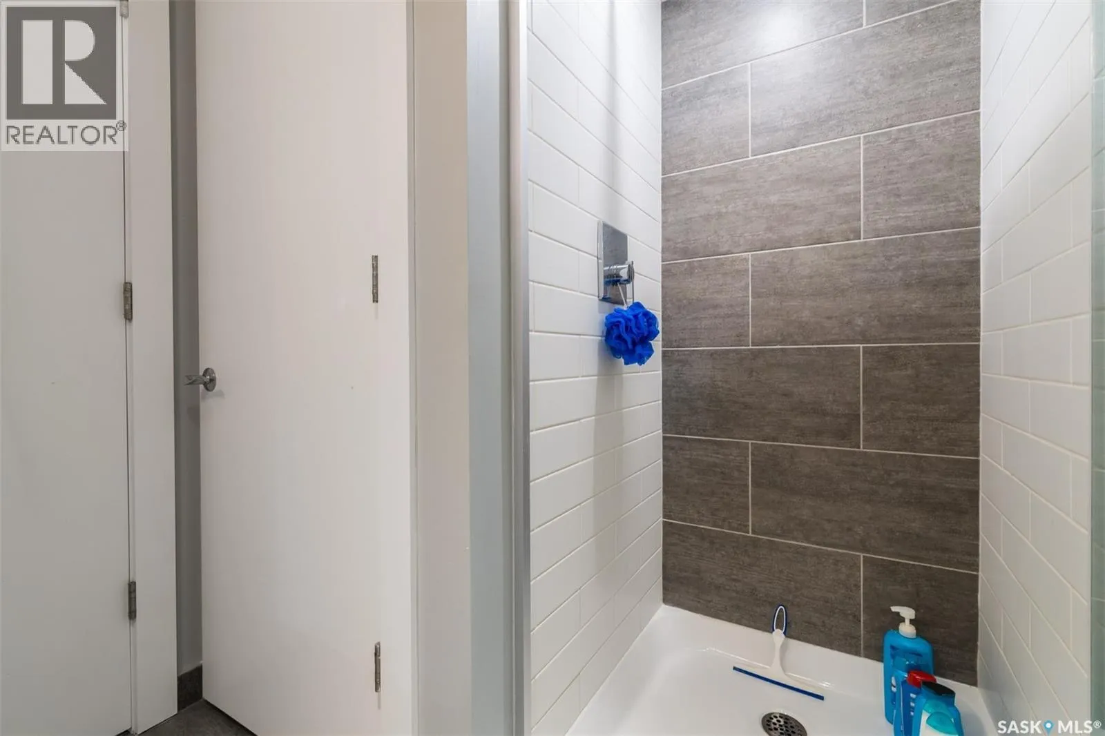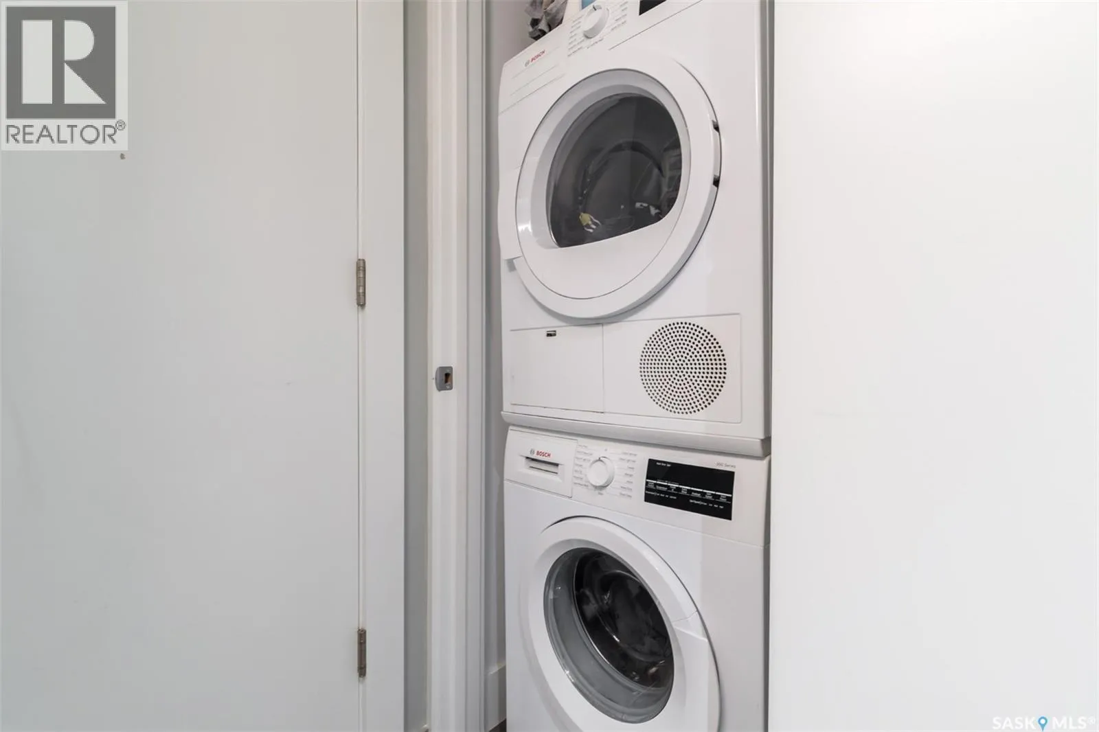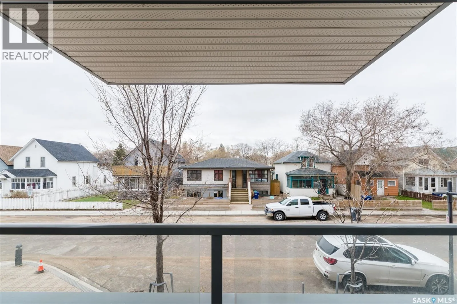 Enjoy downtown living in this newer, modern townhome located steps to the river. Well constructed and completed in 2017, this home is part of the popular Banks complex. Featuring 2 bedrooms, 3 bathrooms, an open concept layout on the main floor with lots of cabinetry and quartz countertops as well as stainless steel appliances, a Napoleon fireplace with new surround in the living room, a concrete feature wall and a two piece modern bath. Upstairs you will find a three piece bath with tiled shower and glass door, a Bosch washer and dryer, spacious primary bedroom with 4 piece en-suite and an additional bedroom both with balcony doors leading to a covered deck overlooking Avenue C. Brand new carpet throughout the upstairs and on the staircase. The townhome comes with TWO titled, heated underground side-by-side stalls and a storage unit. Other features include central air, natural gas hook-up for bbq, underground parking for your guests, rooftop deck and bike room. With only a few of these two-story style townhomes built, this is definitely a rare find. Enjoy the convenient location with many amenities close by including the newest restaurants, boutique shops and coffee spots. (id:27476)