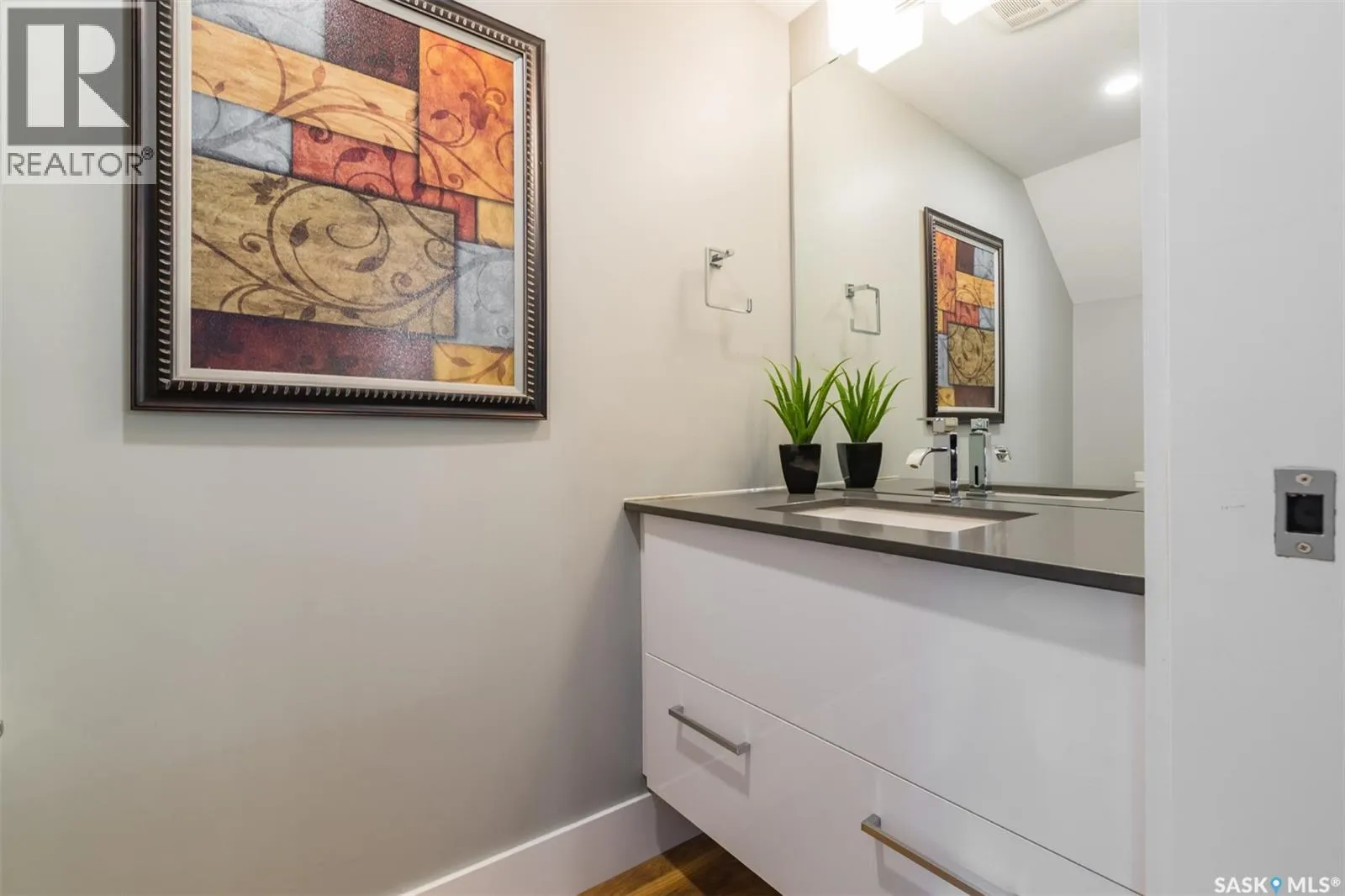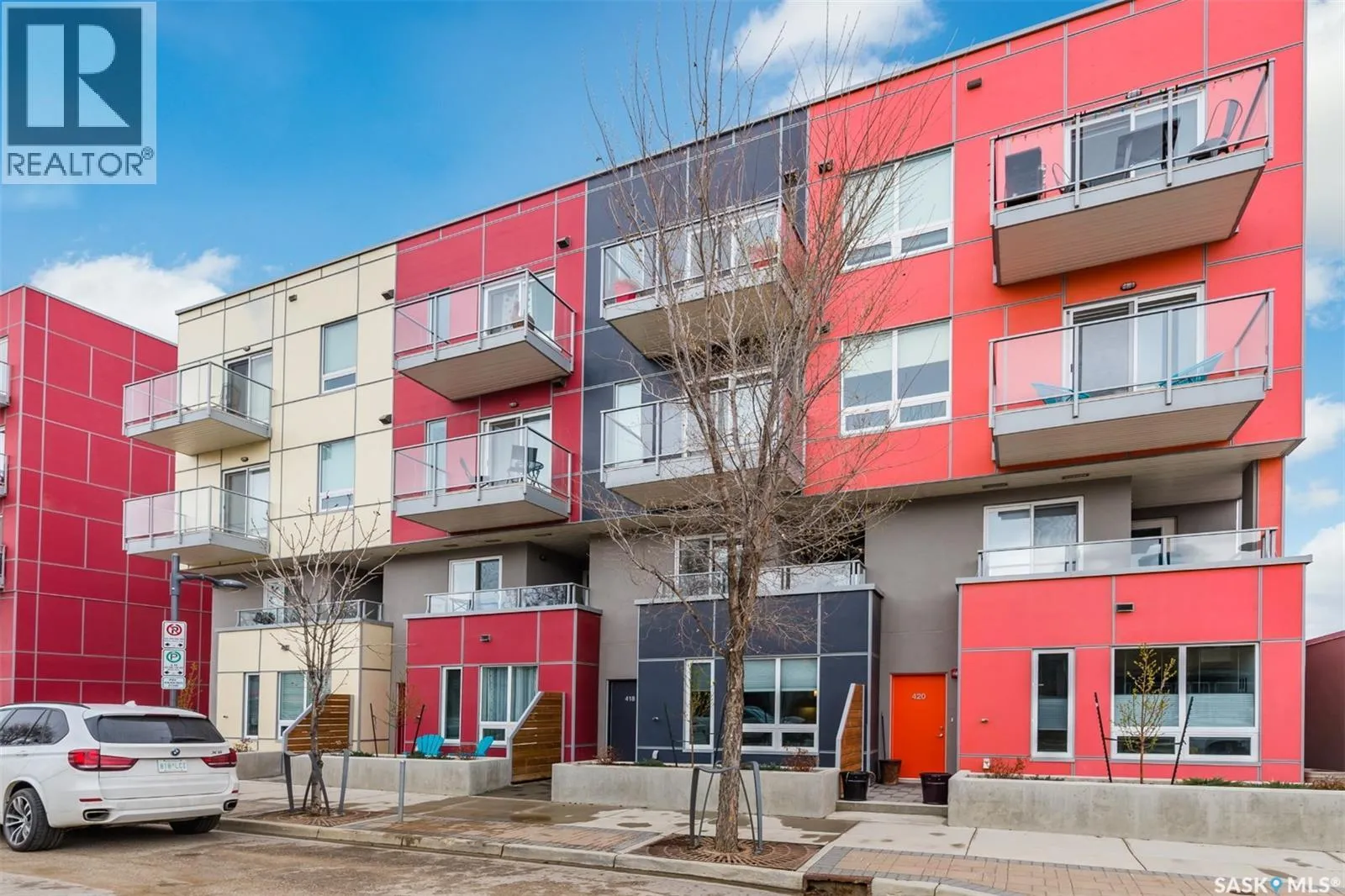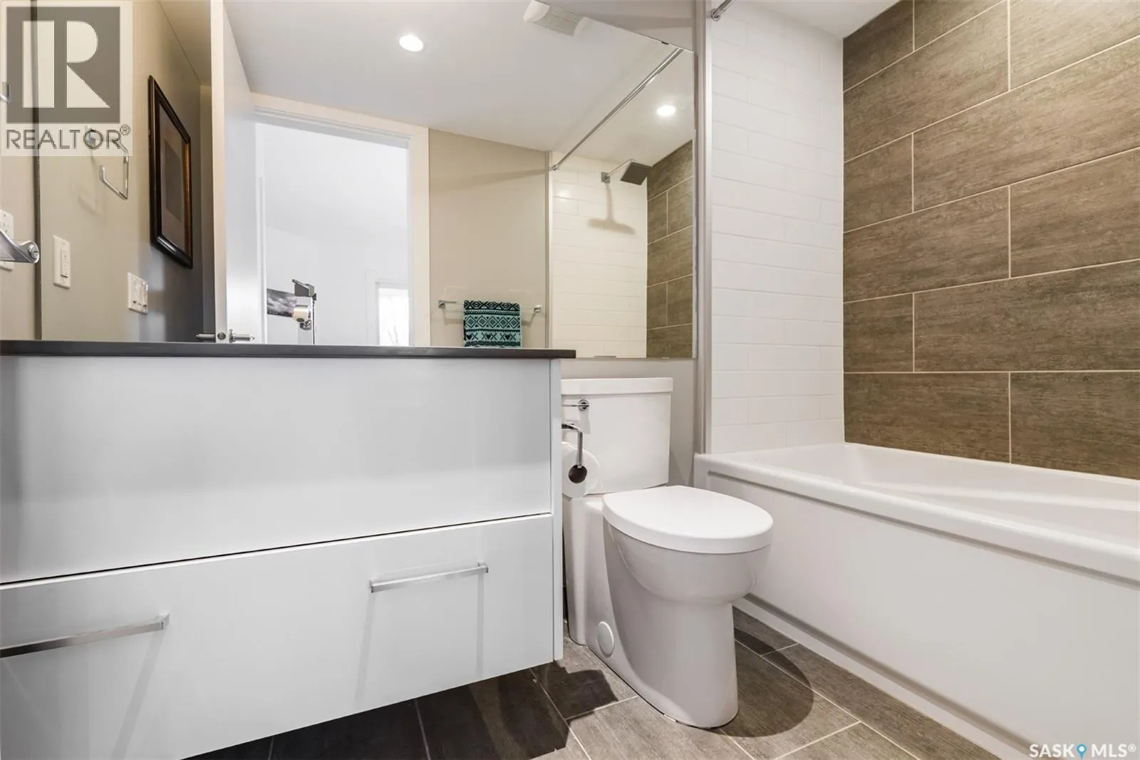 Enjoy downtown living in this newer, modern townhome located steps to the river. Well constructed and completed in 2017, this home is part of the popular Banks complex. Featuring 2 bedrooms, 3 bathrooms, an open concept layout on the main floor with lots of cabinetry and quartz countertops as well as stainless steel appliances, a Napoleon fireplace with new surround in the living room, a concrete feature wall and a two piece modern bath. Upstairs you will find a three piece bath with tiled shower and glass door, a Bosch washer and dryer, spacious primary bedroom with 4 piece en-suite and an additional bedroom both with balcony doors leading to a covered deck overlooking Avenue C. Brand new carpet throughout the upstairs and on the staircase. The townhome comes with TWO titled, heated underground side-by-side stalls and a storage unit. Other features include central air, natural gas hook-up for bbq, underground parking for your guests, rooftop deck and bike room. With only a few of these two-story style townhomes built, this is definitely a rare find. Enjoy the convenient location with many amenities close by including the newest restaurants, boutique shops and coffee spots. (id:27476)
