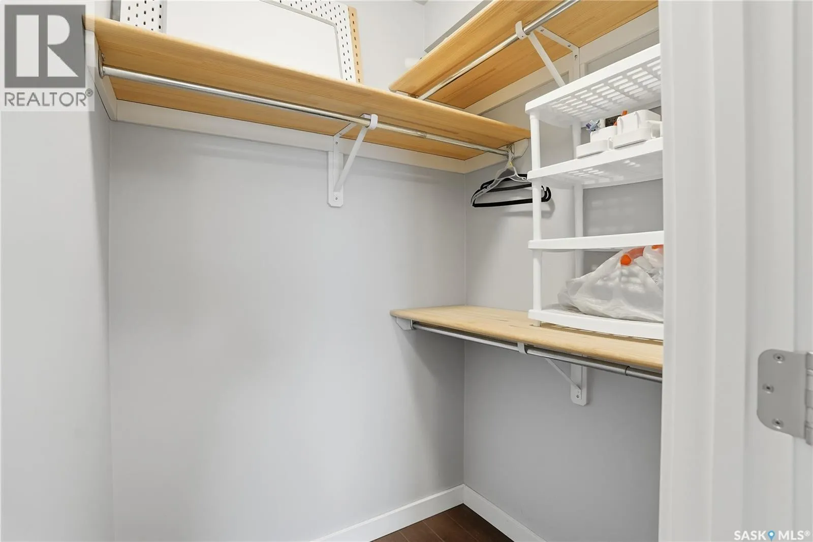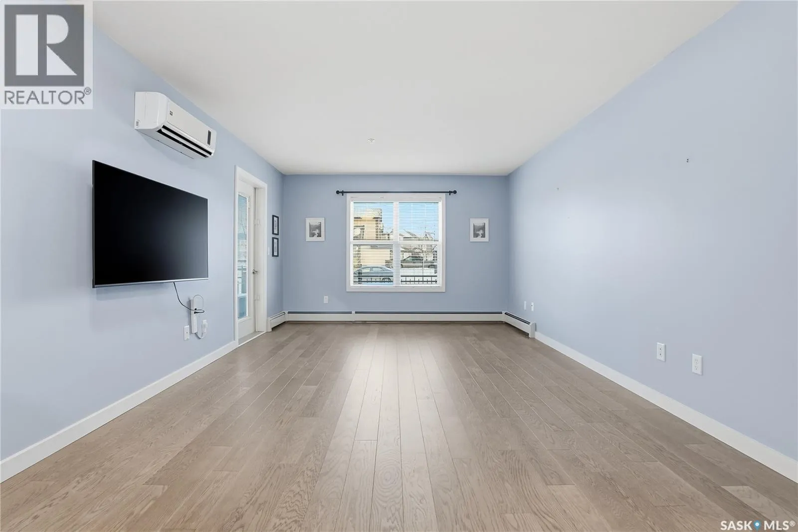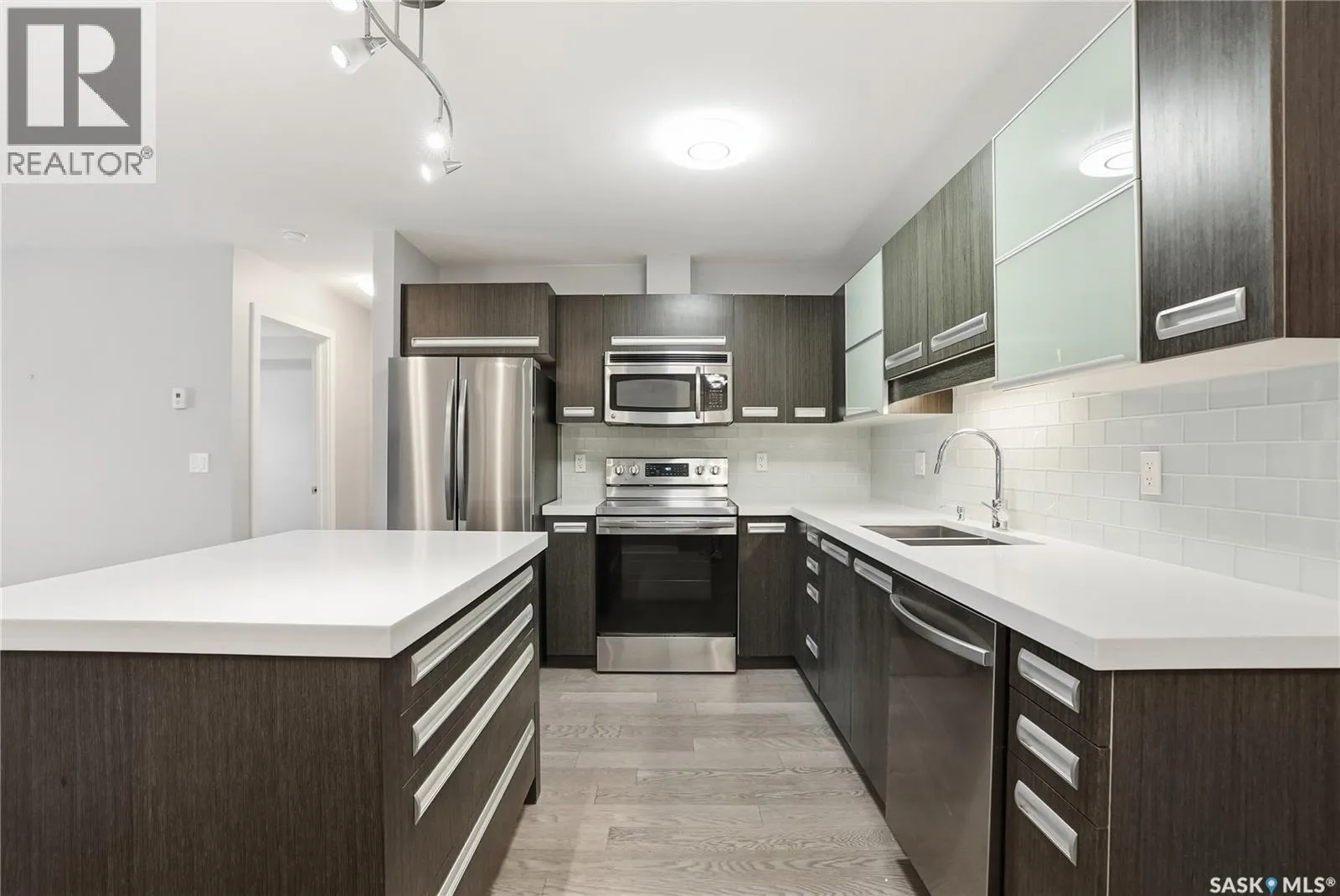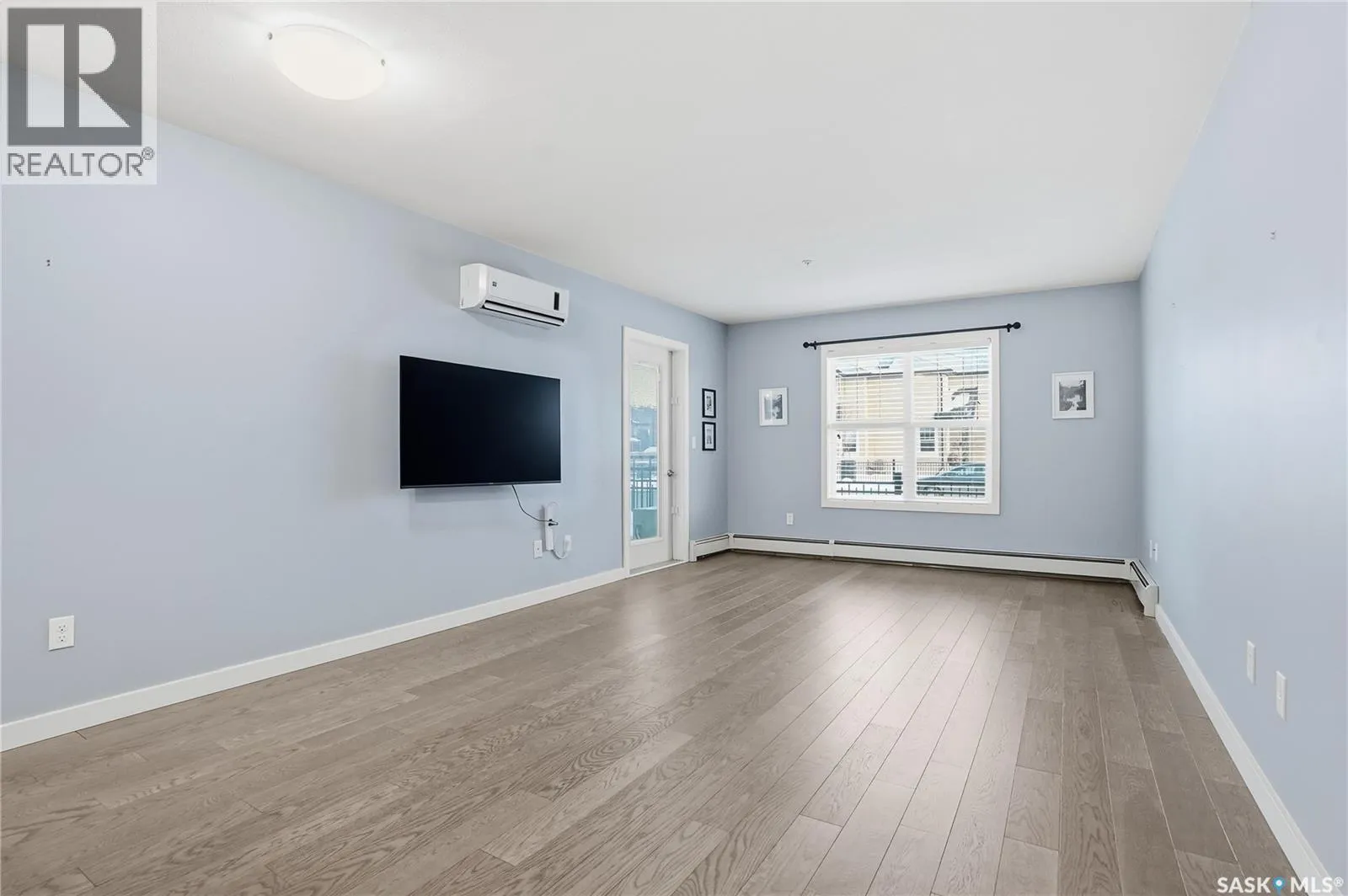 Welcome to this bright, east-facing 915 sq ft condo located in the highly sought-after Rosewood neighbourhood of Saskatoon. Perfectly positioned within walking distance to medical offices, Tim Hortons, and an excellent selection of shops and restaurants. The open-concept living area showcases brand new hardwood flooring and a kitchen featuring quartz countertops, a large island with pot drawers, stainless steel appliances, and glass tile backsplash. The thoughtful floor plan includes a spacious primary bedroom with a walk-in closet, a second bedroom with its own walk-in closet, and a convenient in-suite laundry/storage room with stacked washer and dryer. Additional features include air conditioning, a private balcony off the living room, and TWO electrified parking stalls. Stylish, modern, meticulously maintained and available for a quick possession! This move-in-ready condo is an outstanding opportunity in one of the cityâs most desirable communities! (id:27476)