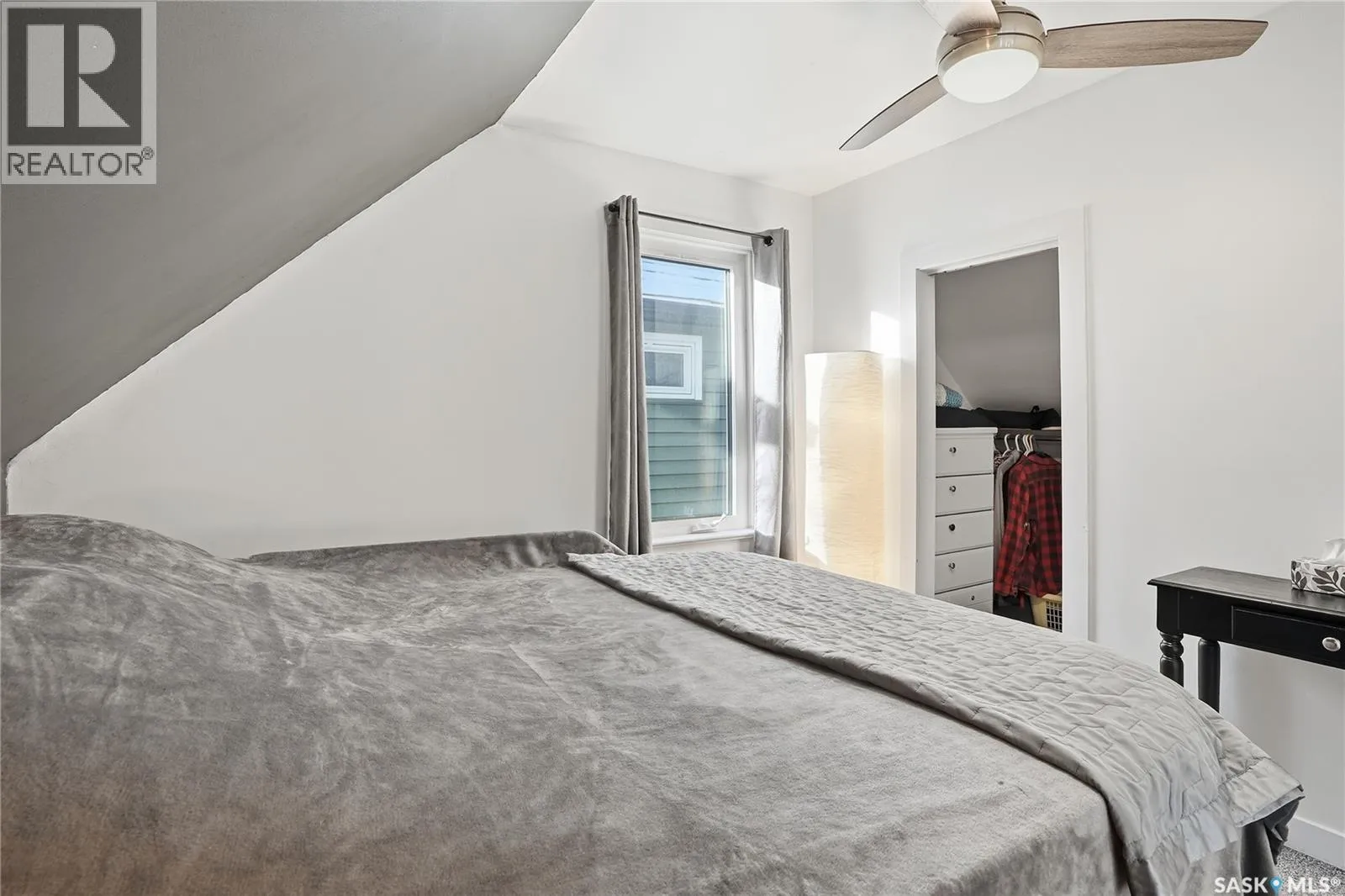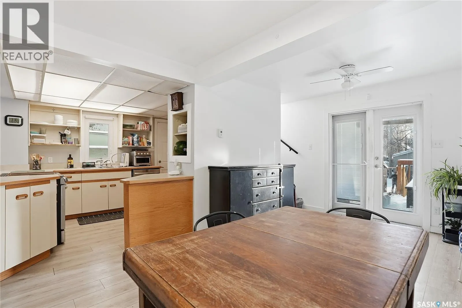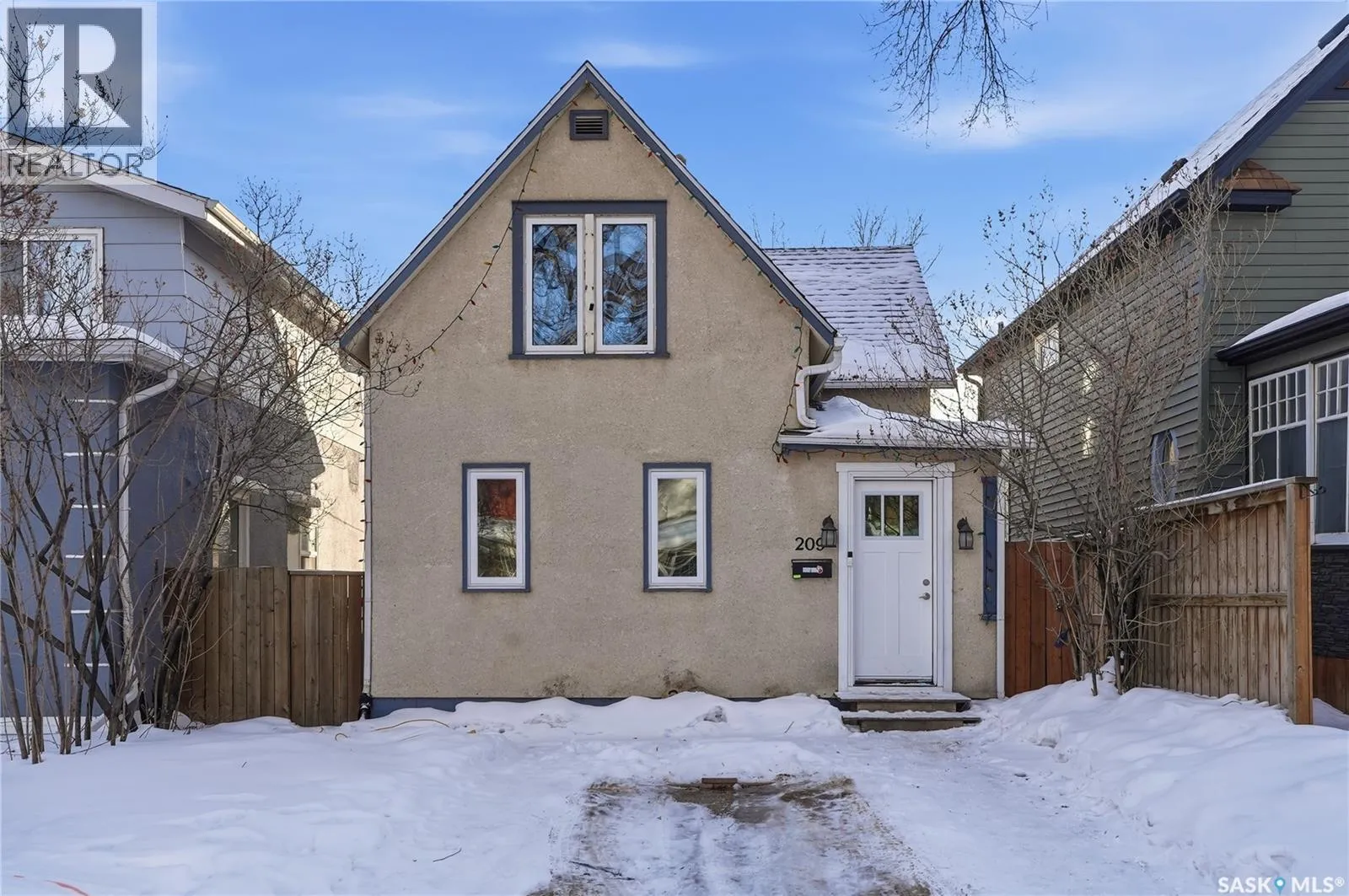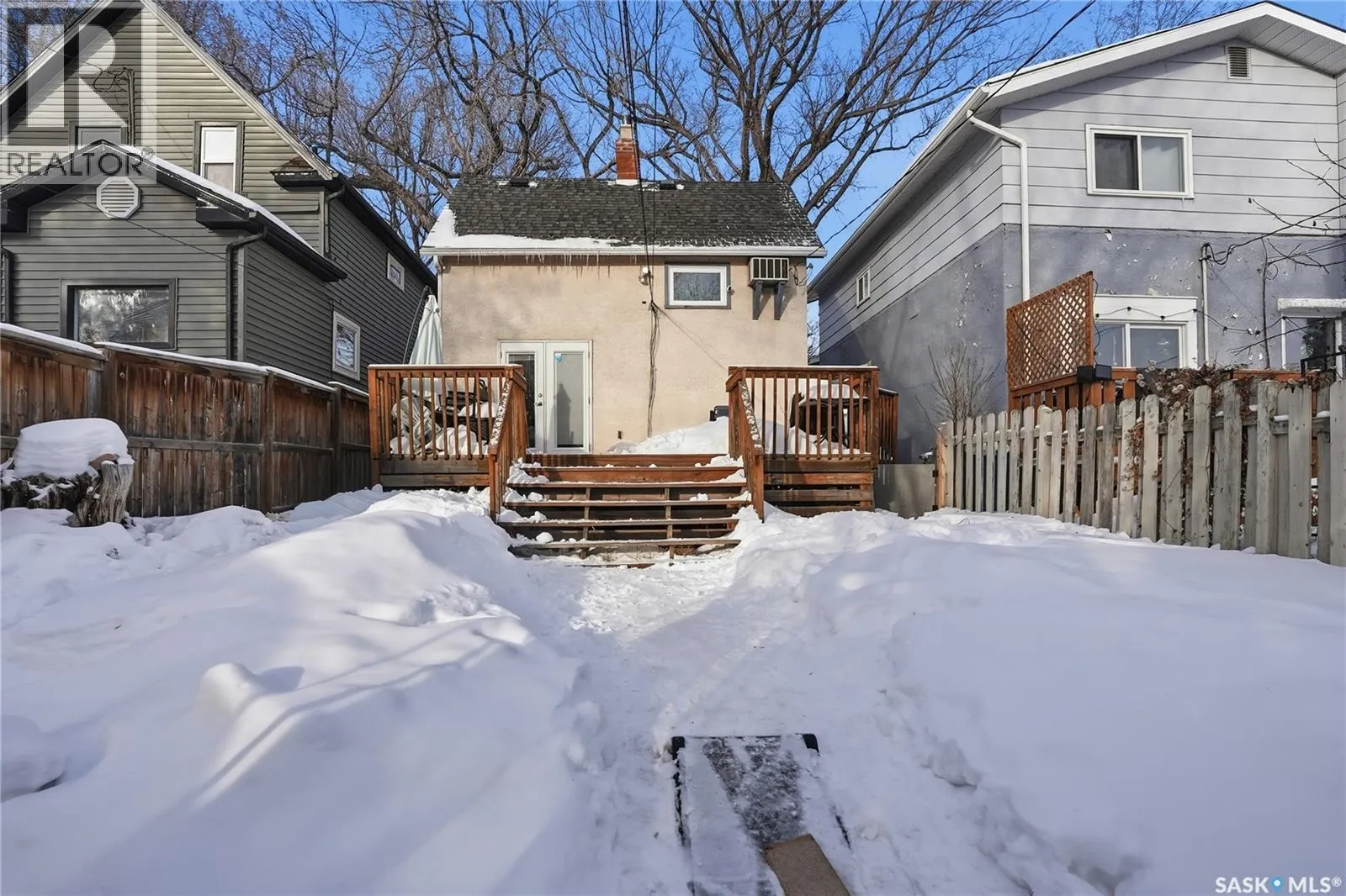 Welcome to 209 29th St â a 980 sq ft 1½ storey character home youâve been waiting for. Step inside through the heated front porch, perfect for those cold winter days. The main floor features a spacious dining room and kitchen with plenty of cabinet and counter space for all your cooking and storage needs. Just off the kitchen is a bright, inviting living room with French doors that open onto a large deck and sunny, south-facing backyard. Upstairs youâll find two comfortable bedrooms and a beautifully updated bathroom, with the primary bedroom offering a walk-in closet. The lower level adds even more functional space, including a generous laundry and utility/storage area, a third bedroom with its own walk-in closet, and a second bathroom. Outside, enjoy the convenience of a front driveway for off-street parking plus additional parking access from the rear alley. Thereâs also ample space to build a future garage. Numerous upgrades have been completed, including updated windows, making this home move-in ready while still full of character. Call for your private viewing. (id:27476)