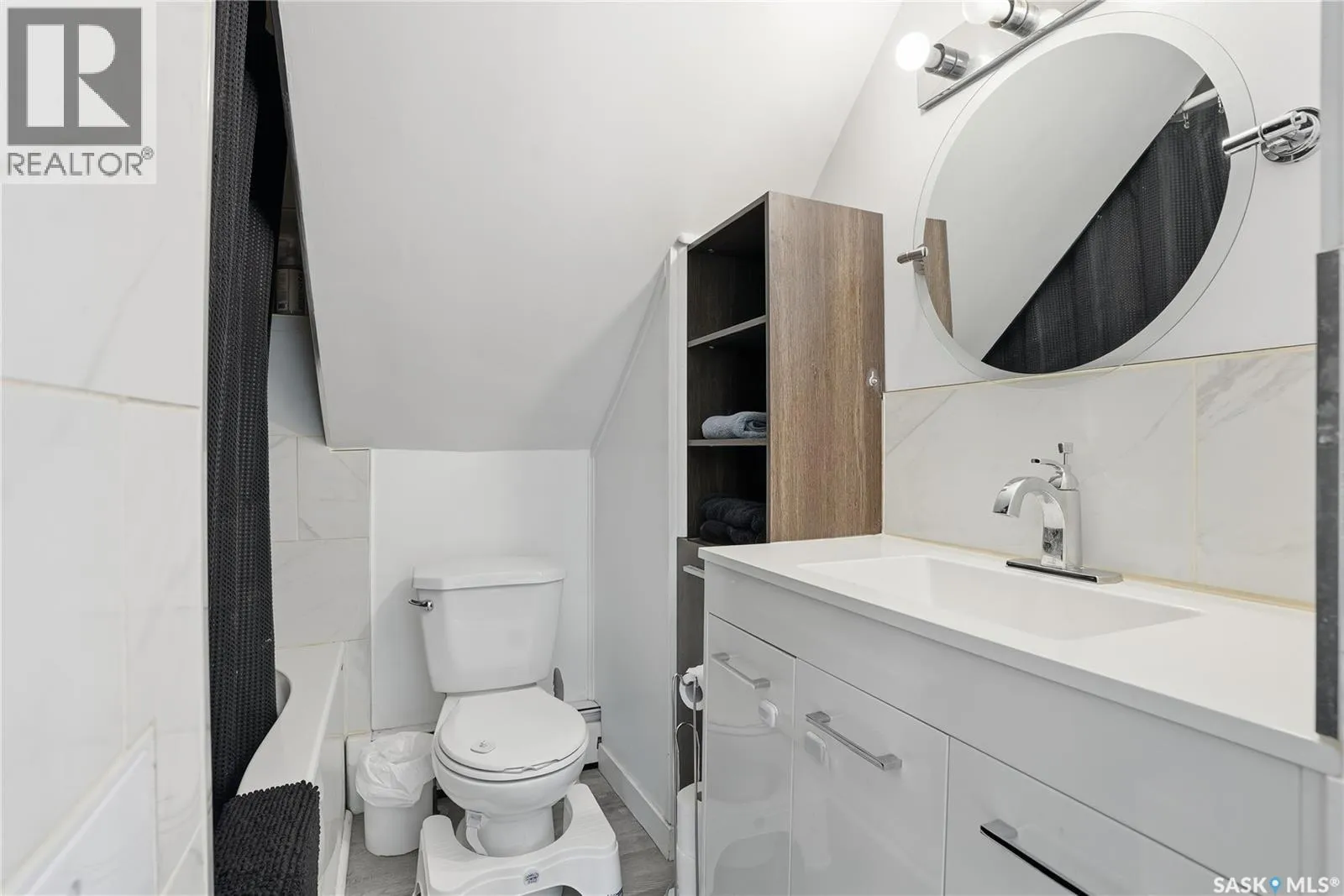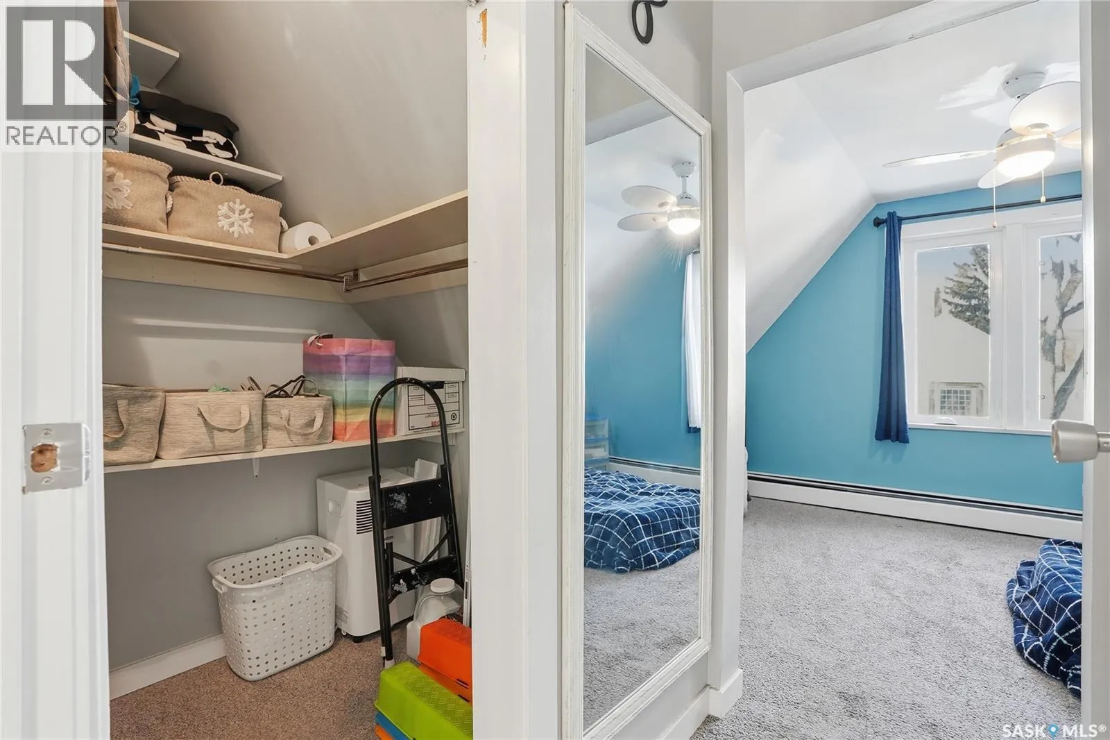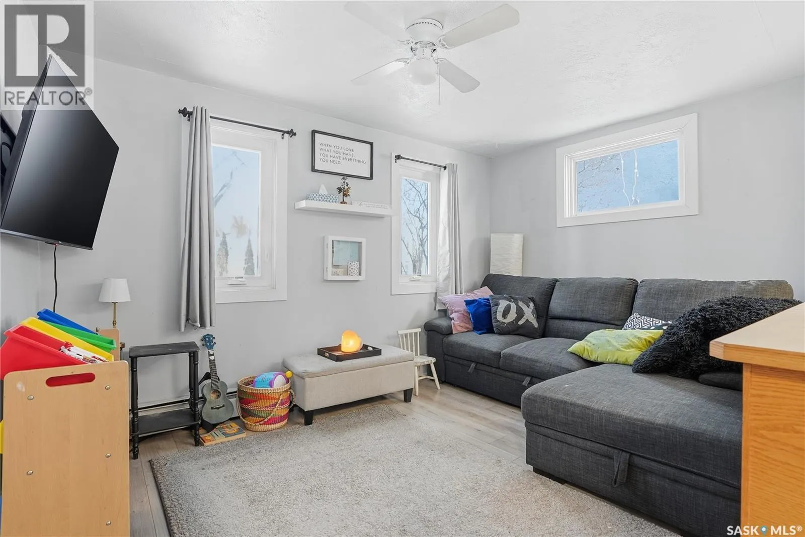 Welcome to 209 29th St â a 980 sq ft 1½ storey character home youâve been waiting for. Step inside through the heated front porch, perfect for those cold winter days. The main floor features a spacious dining room and kitchen with plenty of cabinet and counter space for all your cooking and storage needs. Just off the kitchen is a bright, inviting living room with French doors that open onto a large deck and sunny, south-facing backyard. Upstairs youâll find two comfortable bedrooms and a beautifully updated bathroom, with the primary bedroom offering a walk-in closet. The lower level adds even more functional space, including a generous laundry and utility/storage area, a third bedroom with its own walk-in closet, and a second bathroom. Outside, enjoy the convenience of a front driveway for off-street parking plus additional parking access from the rear alley. Thereâs also ample space to build a future garage. Numerous upgrades have been completed, including updated windows, making this home move-in ready while still full of character. Call for your private viewing. (id:27476)