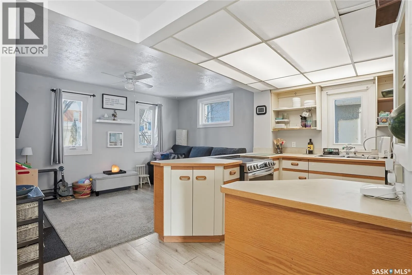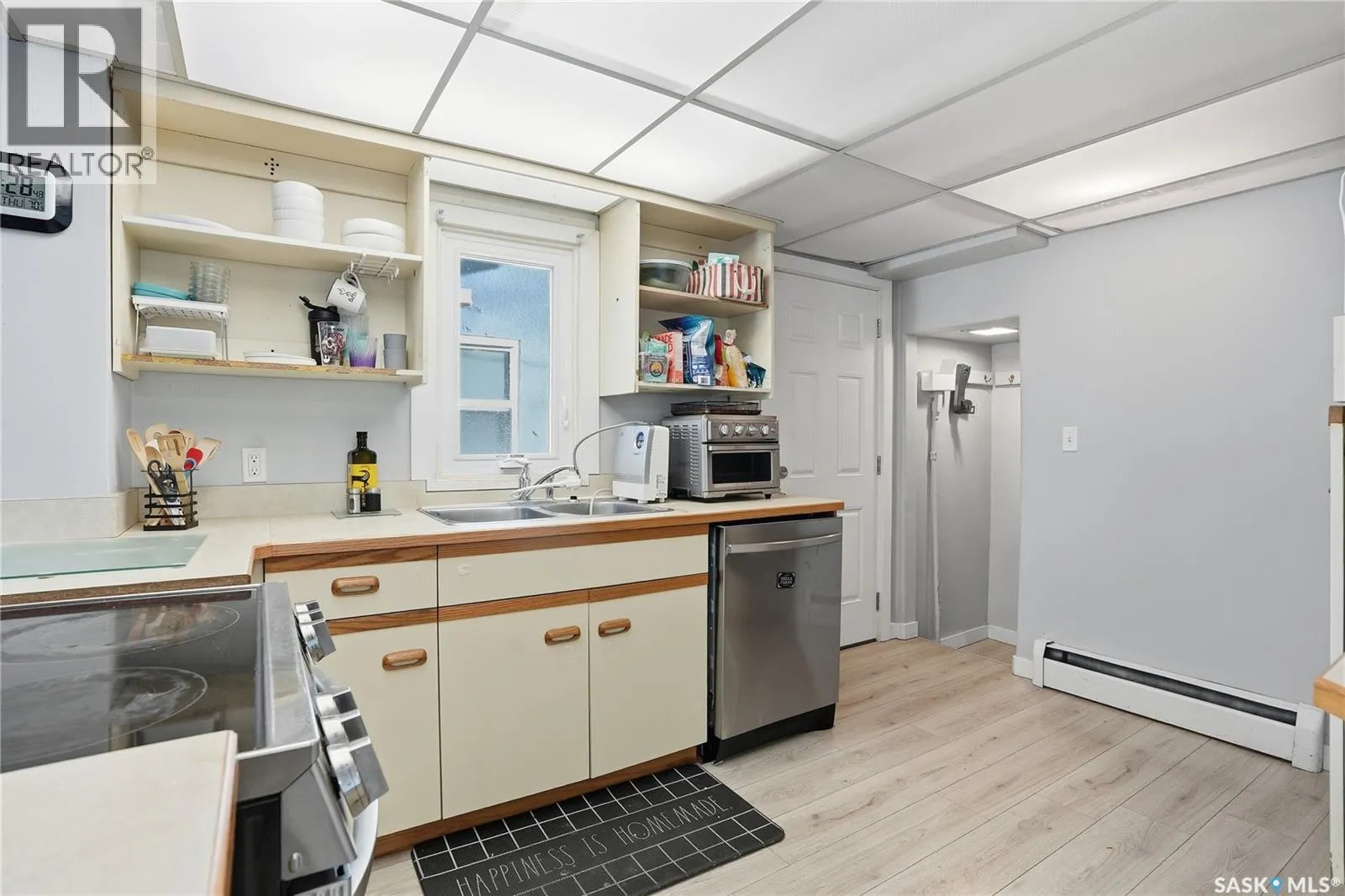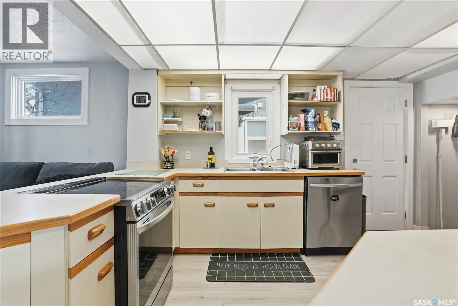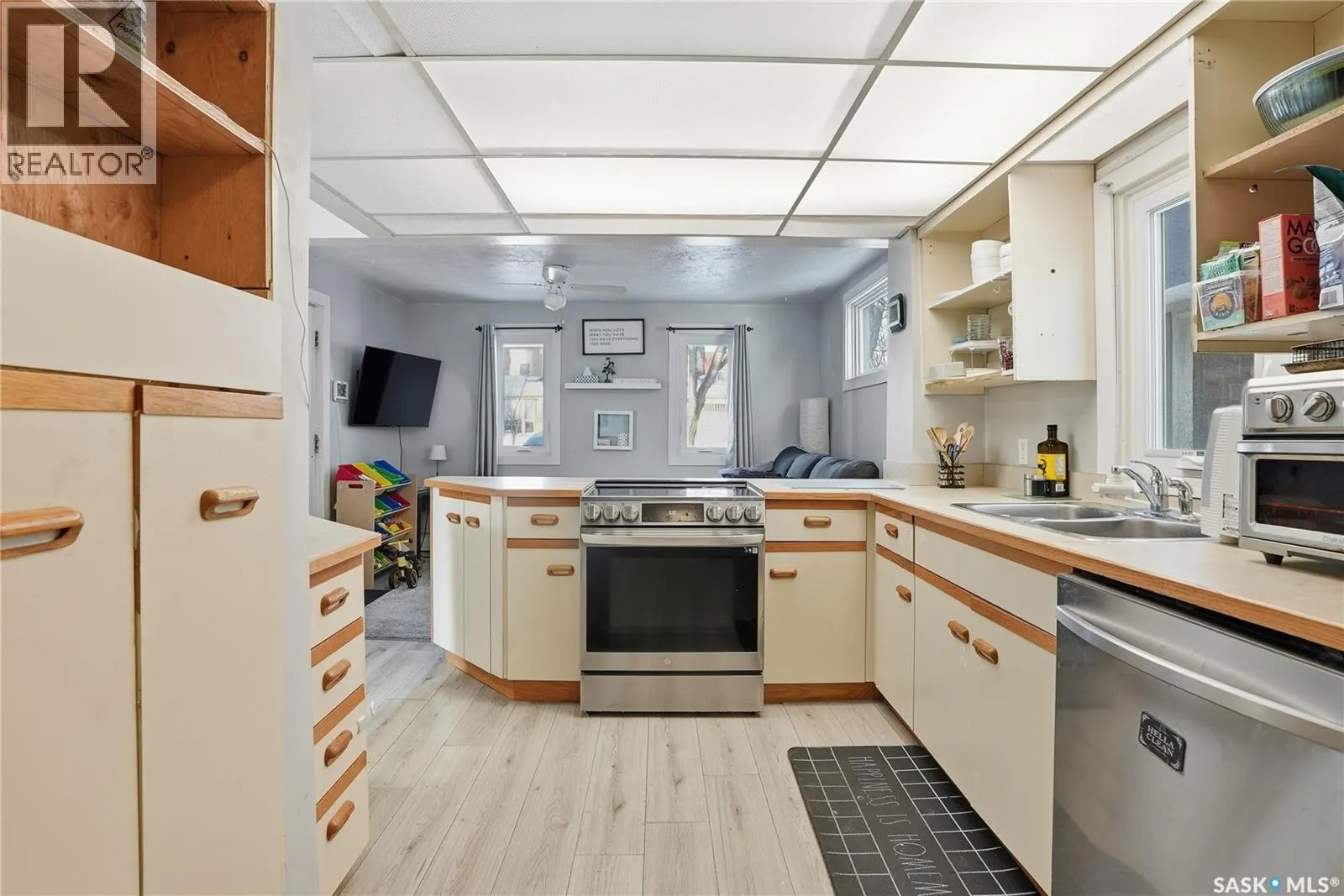 Welcome to 209 29th St â a 980 sq ft 1½ storey character home youâve been waiting for. Step inside through the heated front porch, perfect for those cold winter days. The main floor features a spacious dining room and kitchen with plenty of cabinet and counter space for all your cooking and storage needs. Just off the kitchen is a bright, inviting living room with French doors that open onto a large deck and sunny, south-facing backyard. Upstairs youâll find two comfortable bedrooms and a beautifully updated bathroom, with the primary bedroom offering a walk-in closet. The lower level adds even more functional space, including a generous laundry and utility/storage area, a third bedroom with its own walk-in closet, and a second bathroom. Outside, enjoy the convenience of a front driveway for off-street parking plus additional parking access from the rear alley. Thereâs also ample space to build a future garage. Numerous upgrades have been completed, including updated windows, making this home move-in ready while still full of character. Call for your private viewing. (id:27476)
