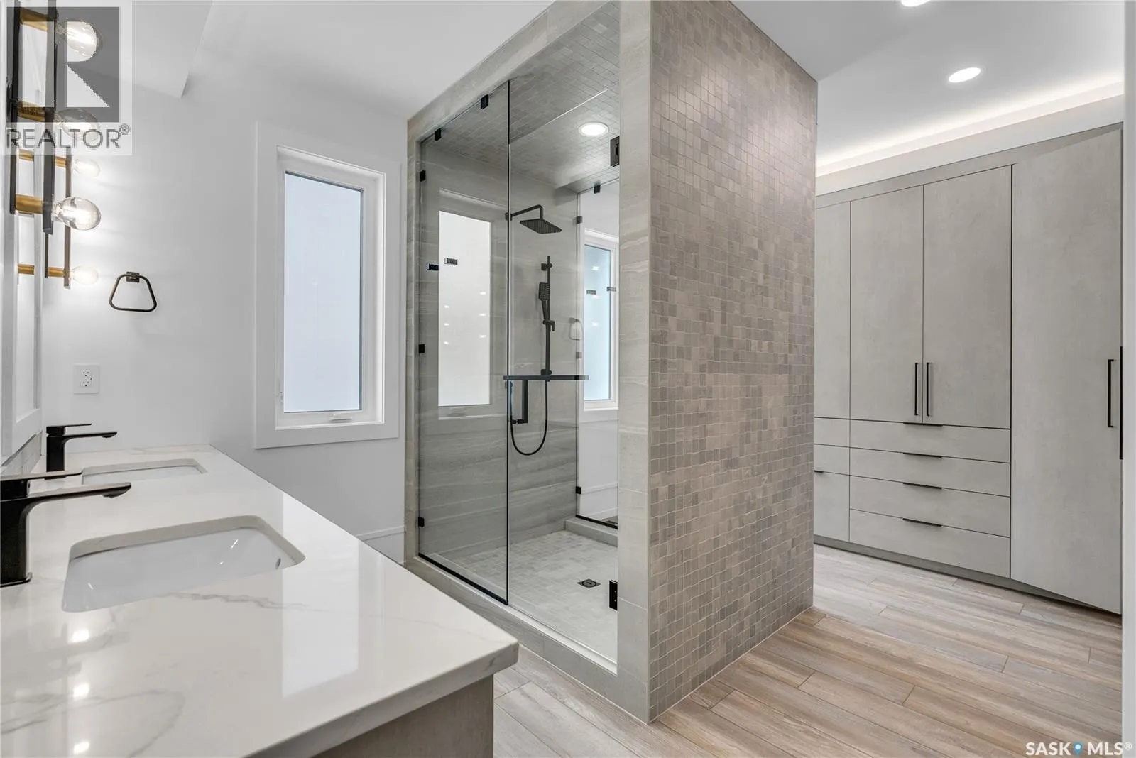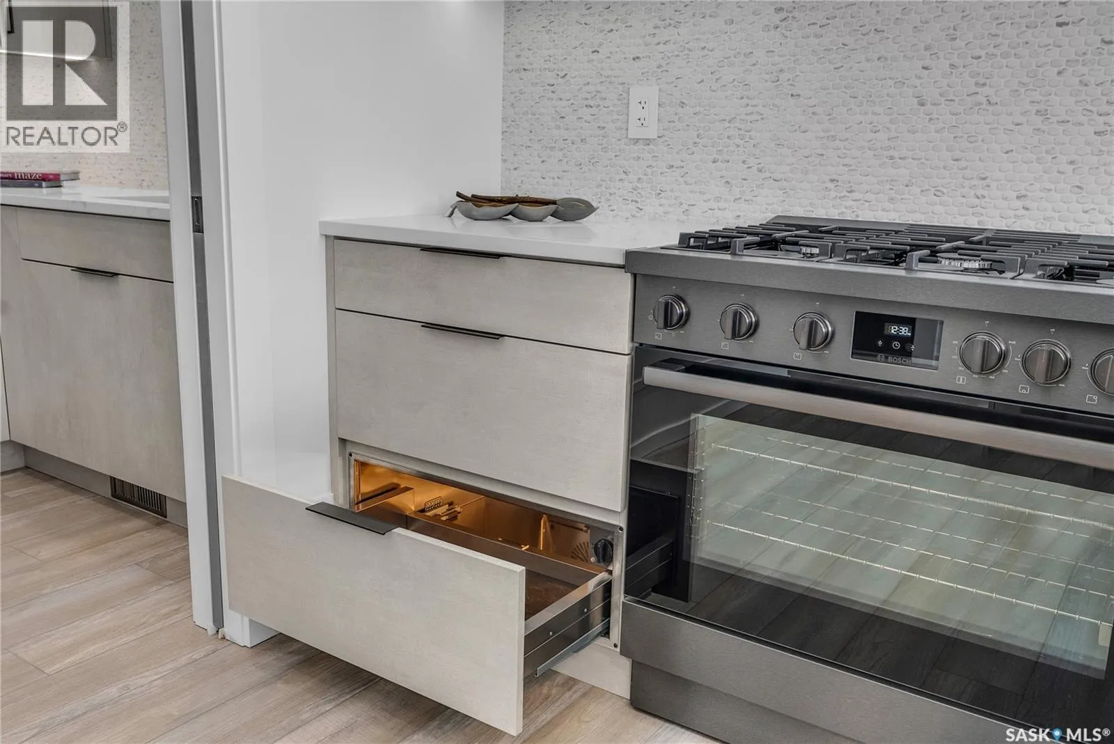 Homes by Norwood located at 428 Woolf Bend in Saskatoonâs Aspen Ridge, featuring luxury finishes and expert craftsmanship. The spacious foyer welcomes you, stained wood railings and glass staircase inserts lead to 2nd floor. Engineered Vinyl Plank flooring throughout home. The main floor boasts 8â interior doors, 9â ceilings with LED-lit tray designs, a great room with a brick feature wall, large south-facing windows, and a dining area with sliding doors to a 12âx12â covered deck. The gourmet kitchen includes modern cabinetry, a 6-burner gas convection range, warming tray, range hood, LED strip lighting, tile backsplash, quartz countertops, and a peninsula bar, with an adjoining butlerâs pantry offering a fridge/freezer, dishwasher, microwave, prep sink, spice rack, and ample storage. The primary bedroom features a custom feature wall and insulated walls for sound comfort, while the ensuite offers dual vanities, a custom walk-in shower, abundant storage, a stacking washer/dryer, and a private commode. Additional main-floor spaces include a 2-piece powder room and mudroom with extensive storage. The second floor has three large bedrooms with interior insulated walls, a second laundry room with a sink, and a split main bathroom with dual vanities, a soaker tub/shower with tile, and separate lavatory. The basementâs exterior walls are framed, insulated, and wired, with interior walls framed and wired as well. Mechanical features include a high-efficiency furnace with zoned heating and thermostats on each floor, a power vent hot water heater with a circulating pump, an HRV system, central air, and 200-amp electrical service. The 27âW x 26âD double attached garage is insulated, wired, drywalled, has LED lighting, and is nearly 14â high for future car lifts. The exterior features Hardie board siding, composite finishes, and a maintenance-free covered deck with a privacy wall and natural gas outlet. Enjoy breathtaking south views of Kernen Prairieâschedule a viewing today (id:27476)