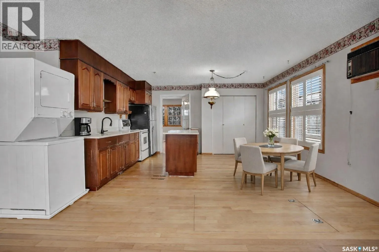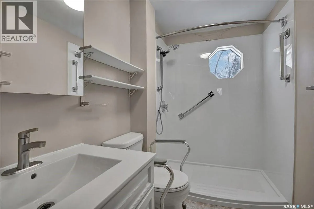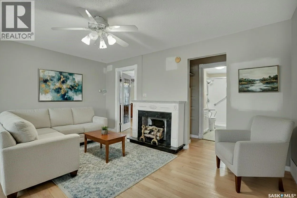 Welcome to 1109 11th Street West, ideally located in the desirable Holiday Park neighbourhood just a few blocks from the river, Riversdale Pool, elementary schools, and parks. This inviting home offers a bright and open main floor layout, beginning with a welcoming living room featuring a freestanding electric fireplace that creates a warm focal point. The living space flows seamlessly into the kitchen, dining area, and a sun-filled family room, complete with a gas stove and an abundance of windows that fill the home with natural light. Off the living room is a versatile office or bedroom, while the primary bedroom and a well-appointed three-piece bathroom with a walk-in shower complete the main level. Wood flooring runs throughout most of the main floor, with carpet in the family room for added comfort. Main floor laundry adds everyday convenience, and several key upgrades have been completed, including updated bathroom and plumbing lines, a newer water heater, and a high-efficiency furnace. Situated on a generously sized 45â by 125â lot, the property is fully fenced, well treed, and includes a detached two-car garage. This home combines character, functionality, and a prime location, making it an excellent opportunity to enjoy the best of Holiday Park living. (id:27476)