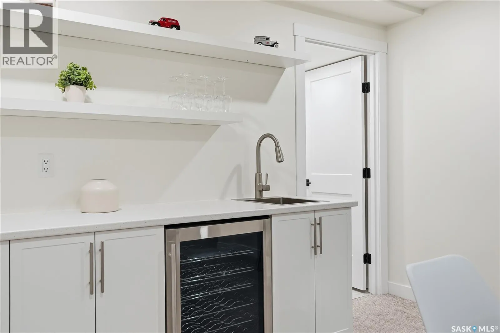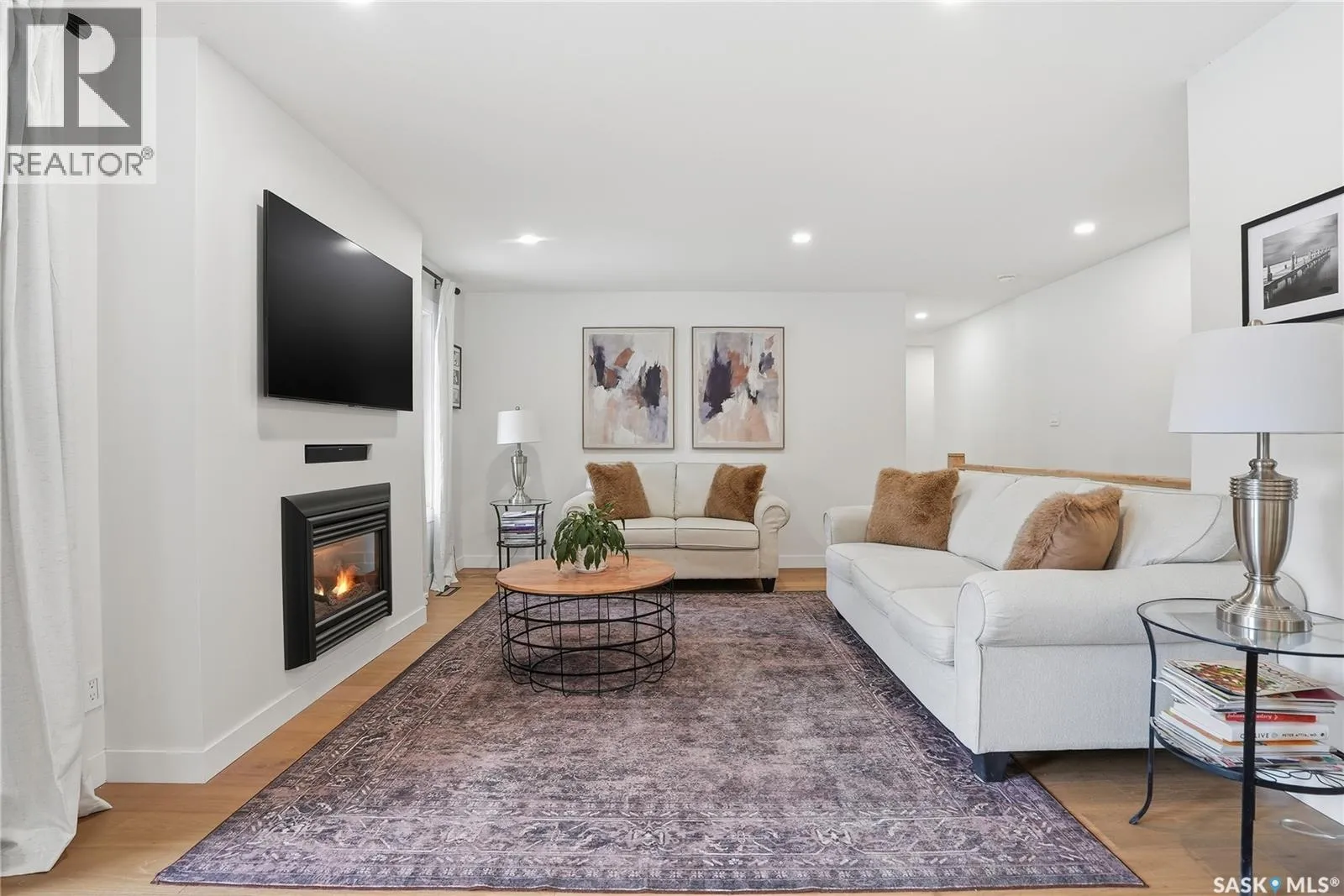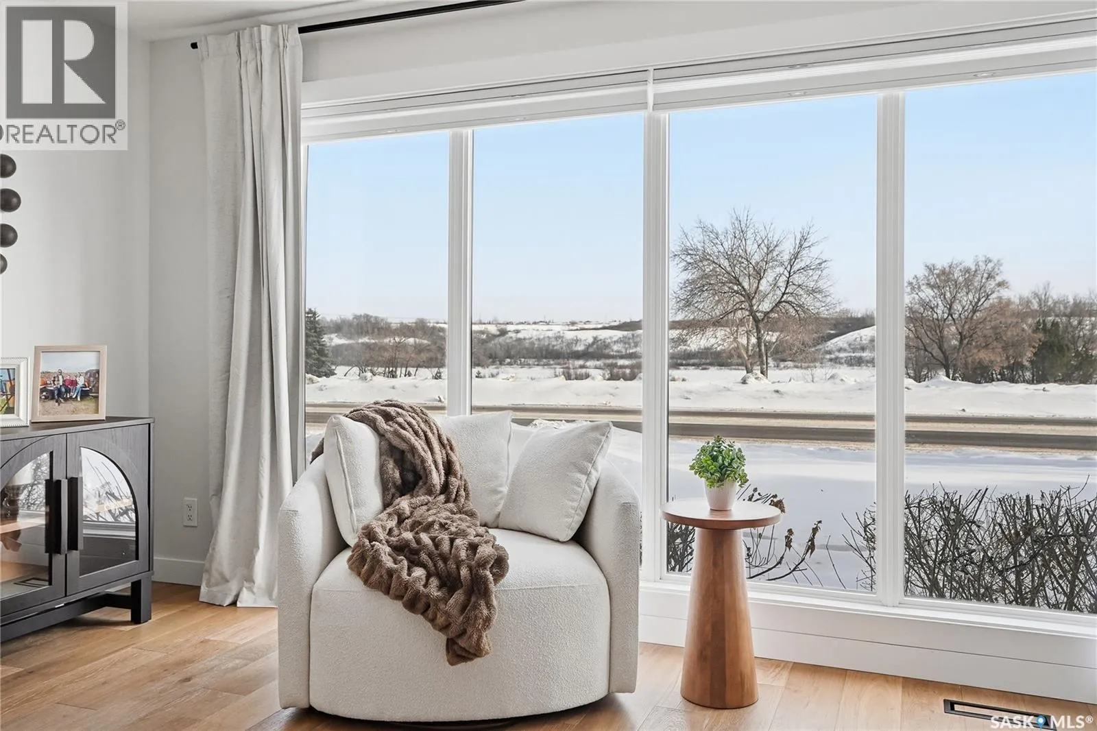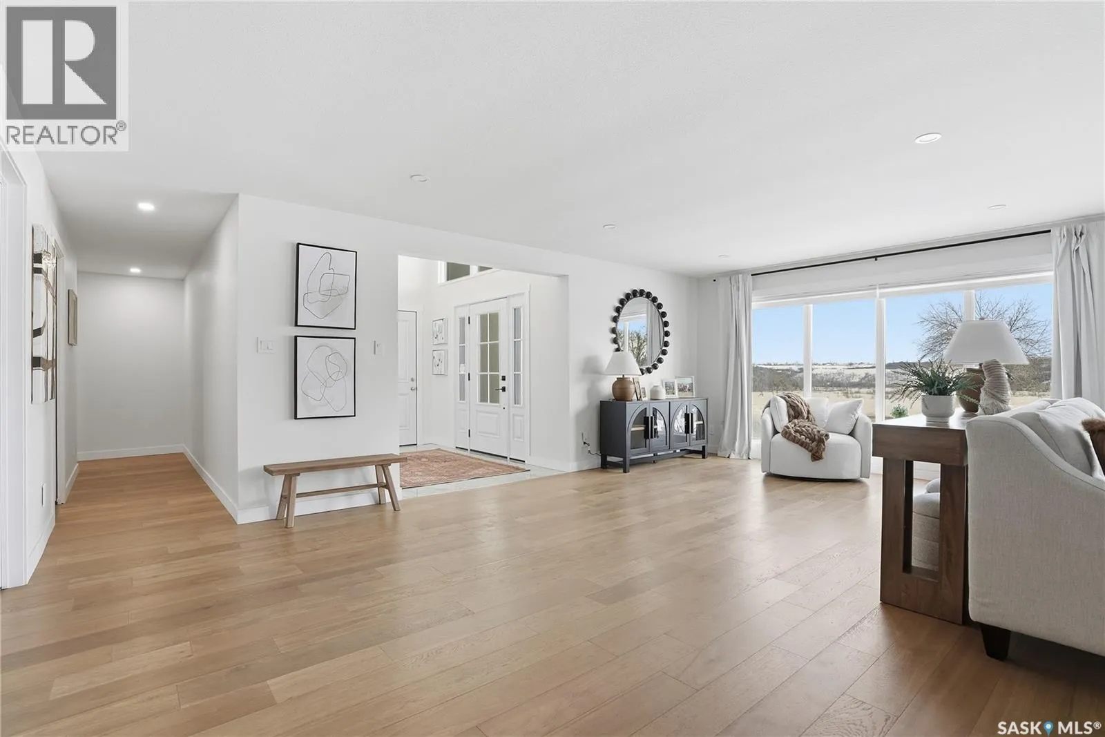 CHECK ON THE VIDEO ABOVE! Timeless style and exceptional craftsmanship define this stunning 2,691 sq. ft. bungalow in prestigious Lawson Heights, offering river views and overlooking Meewasin Trail. Welcome to 115 Whiteswan Drive, where a grand foyer with soaring ceilings creates an inviting first impression. Sun-filled living and dining areas showcase breathtaking views and feature a striking custom warm-toned wood feature wall with a sleek linear gas fireplace, ideal for both everyday living and entertaining. Beautiful new warm-coloured hardwood flooring flows throughout the main floor, enhancing the homeâs elegant, cohesive design. A private main-floor office with glass doors is perfect for working from home. The executive kitchen impresses with white cabinetry, an expansive island, quartz countertops, and a fully equipped butlerâs pantry with all new stainless steel appliances, including double refrigerators, double ovens, gas stove, beverage fridges, tall wine cooler, and warming ovenâdesigned for hosting and convenience. The breakfast nook features a south-facing window seat, while the adjoining family room opens to outdoor living. The spacious primary bedroom (19â x 13â) offers a large walk-in closet and a spa-like 5-piece ensuite. Two additional well-proportioned bedrooms share a 5-piece bath, along with rare main-floor storage and extra cabinetry. The newly fully developed lower level provides a wet bar, extra bedroom, bright 3-piece bathroom, gym/exercise space, and generous storage. Mechanical upgrades include a high-efficiency furnace and on-demand water heater. Enjoy breathtaking sunrise views from the front of the home, then unwind in a sun-filled, private backyard retreat featuring a privacy wall, stamped concrete patio, stunning brick fireplace, tranquil water fountain, lush landscaping, brand new fencing, and a shedâa truly secluded oasis. (id:27476)