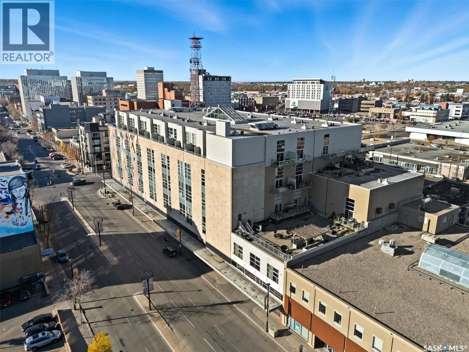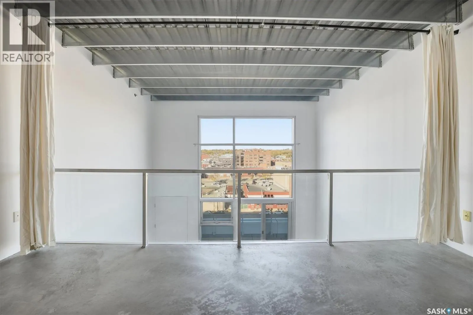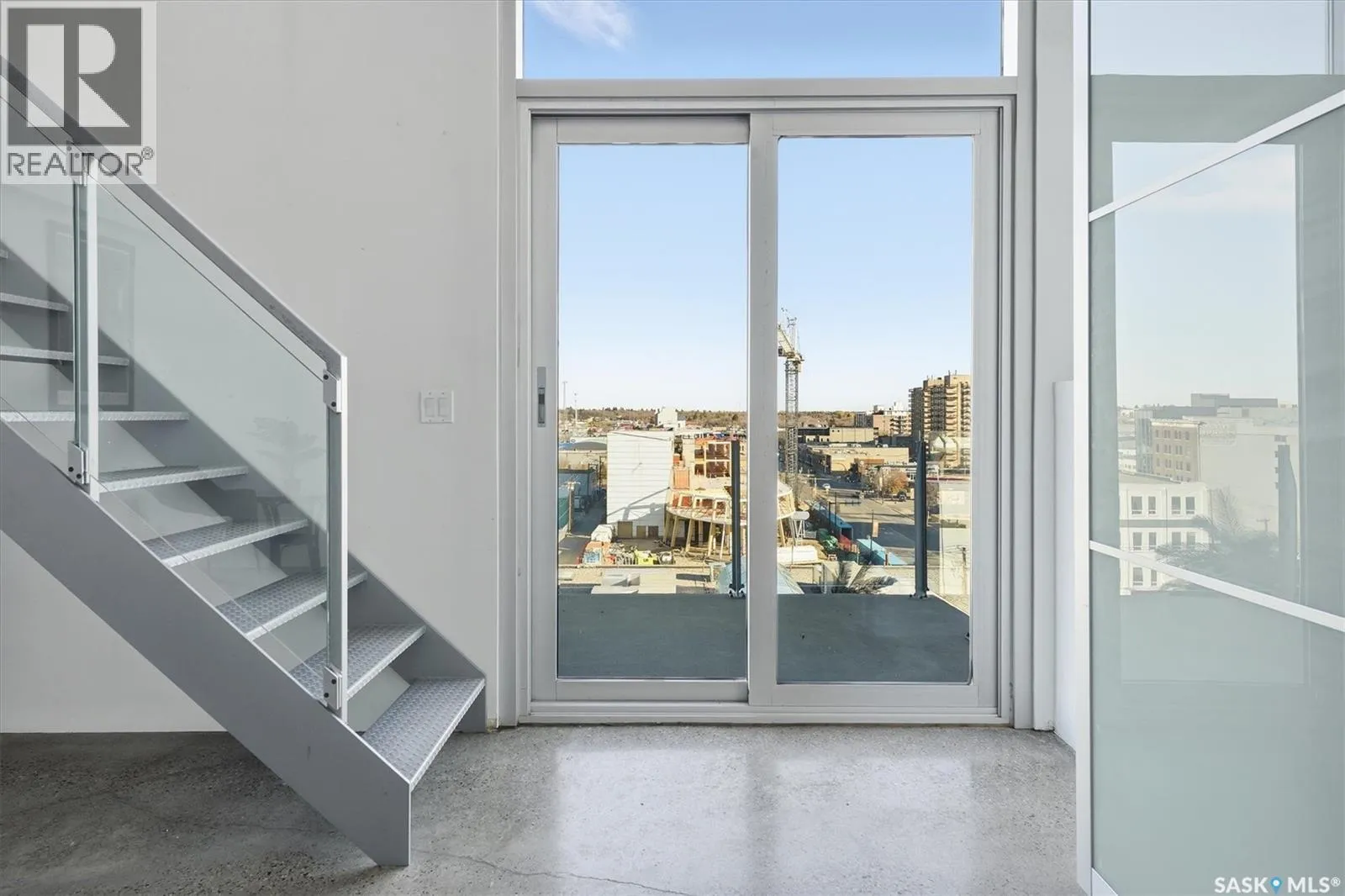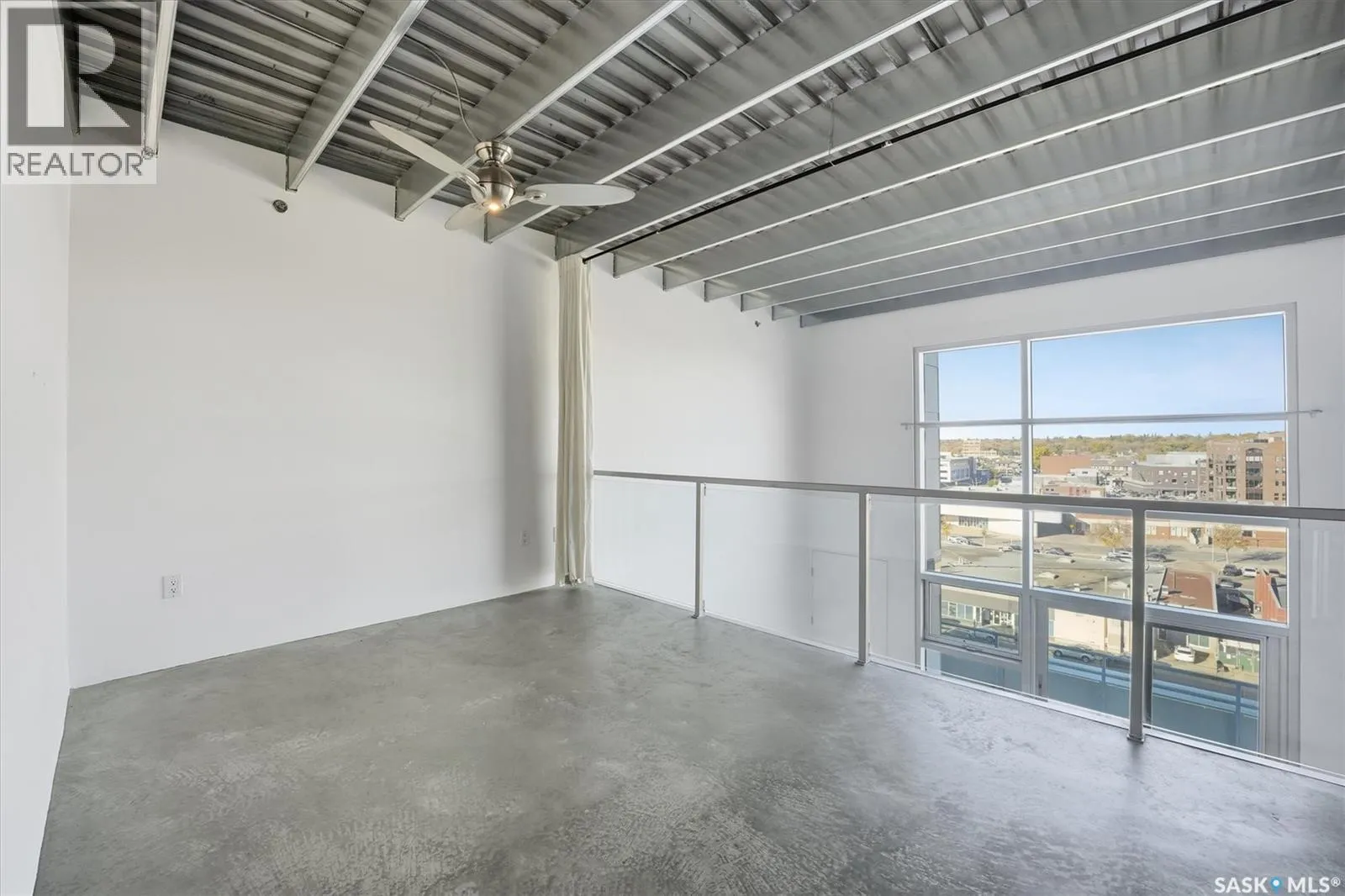 Top floor CORNER unit with massive wrap around balcony overlooking the city sky line! Welcome to the 2nd Avenue LOFTS where modern downtown living meets comfort and architectural character. This spacious 1,075 sq. ft. loft-style condo offers an open-concept layout with soaring ceilings, large windows, and a wraparound balcony that provides sweeping views of downtown Saskatoon. The highlight of this home is the large wraparound balcony overlooking Saskatoonâs new central library and the proposed new rink and event venue â the perfect spot to enjoy your morning coffee while taking in the energy and excitement of Saskatoonâs downtown revitalization. Located on the exclusive fifth floorâthe only level equipped with central air conditioningâthis unit ensures year-round comfort. The interior features polished concrete floors, a bright and functional kitchen, and a generous bedroom suite with a four-piece bath. This units updated kitchen includes brand new stainless steel kitchen appliances. A tandem underground parking for two vehicles is included for convenience and security. The installing of a vehicle lift is permitted as well (with board approval). The 2nd Avenue Lofts building offers residents access to excellent amenities, including a fully equipped gym, a recreation area with ping pong tables, a modern meeting room, and one of the best roof top patio areas (located on 3rd level) in the city. Situated in the heart of the Central Business District, youâll be steps away from restaurants, shopping, and the river valley trails. A unique opportunity to own one of the most desirable units in this sought-after building. (id:27476)