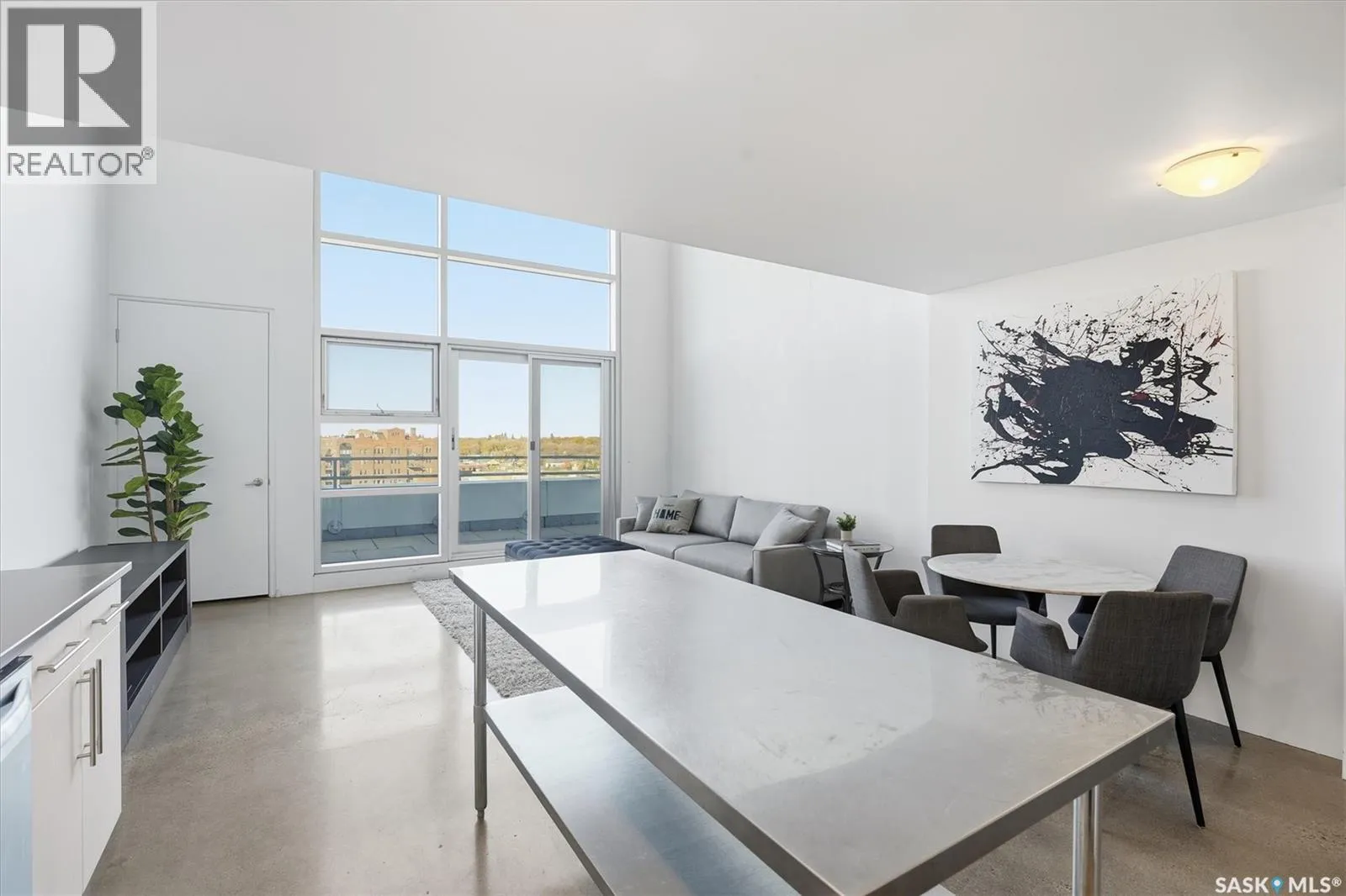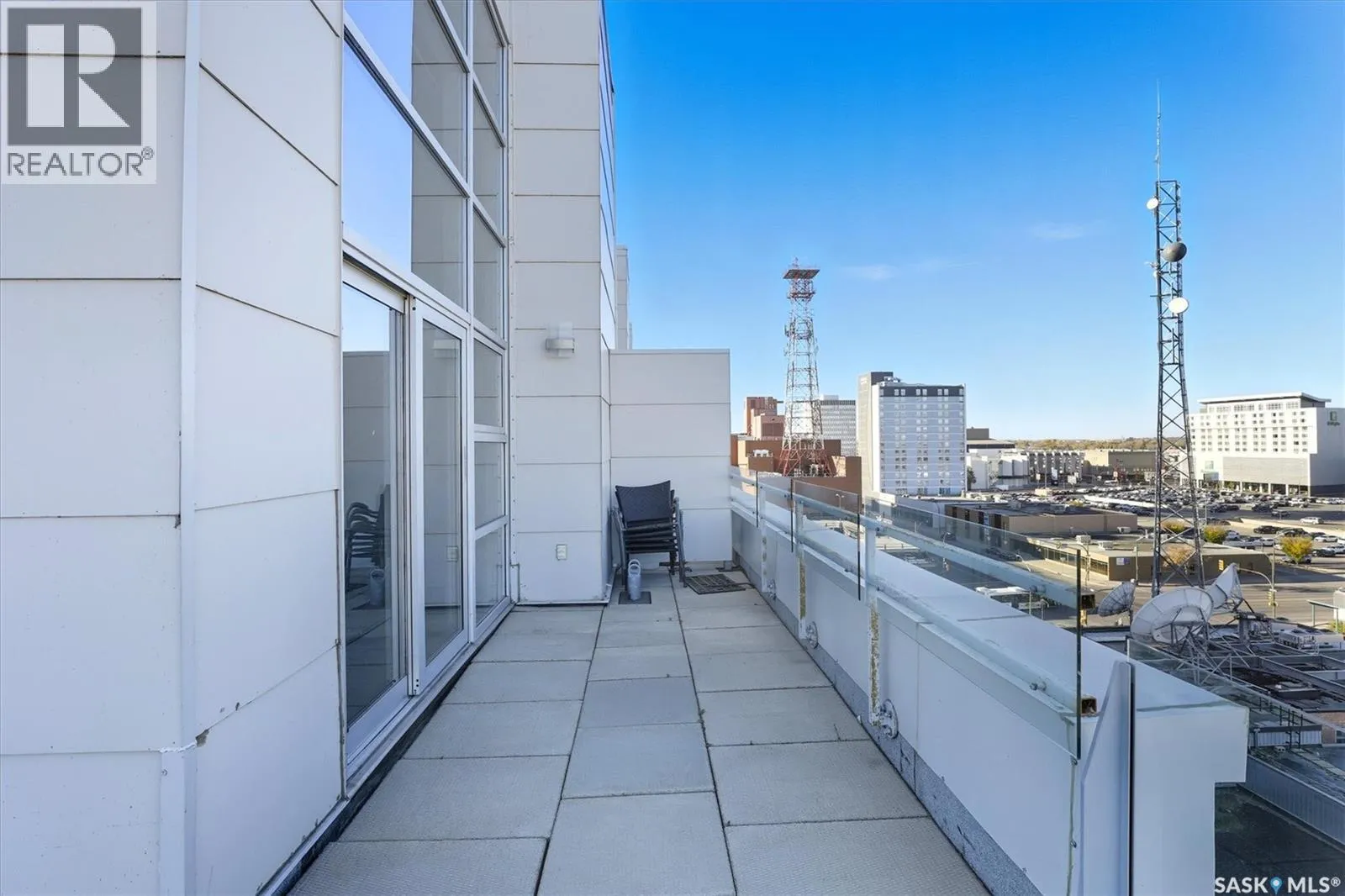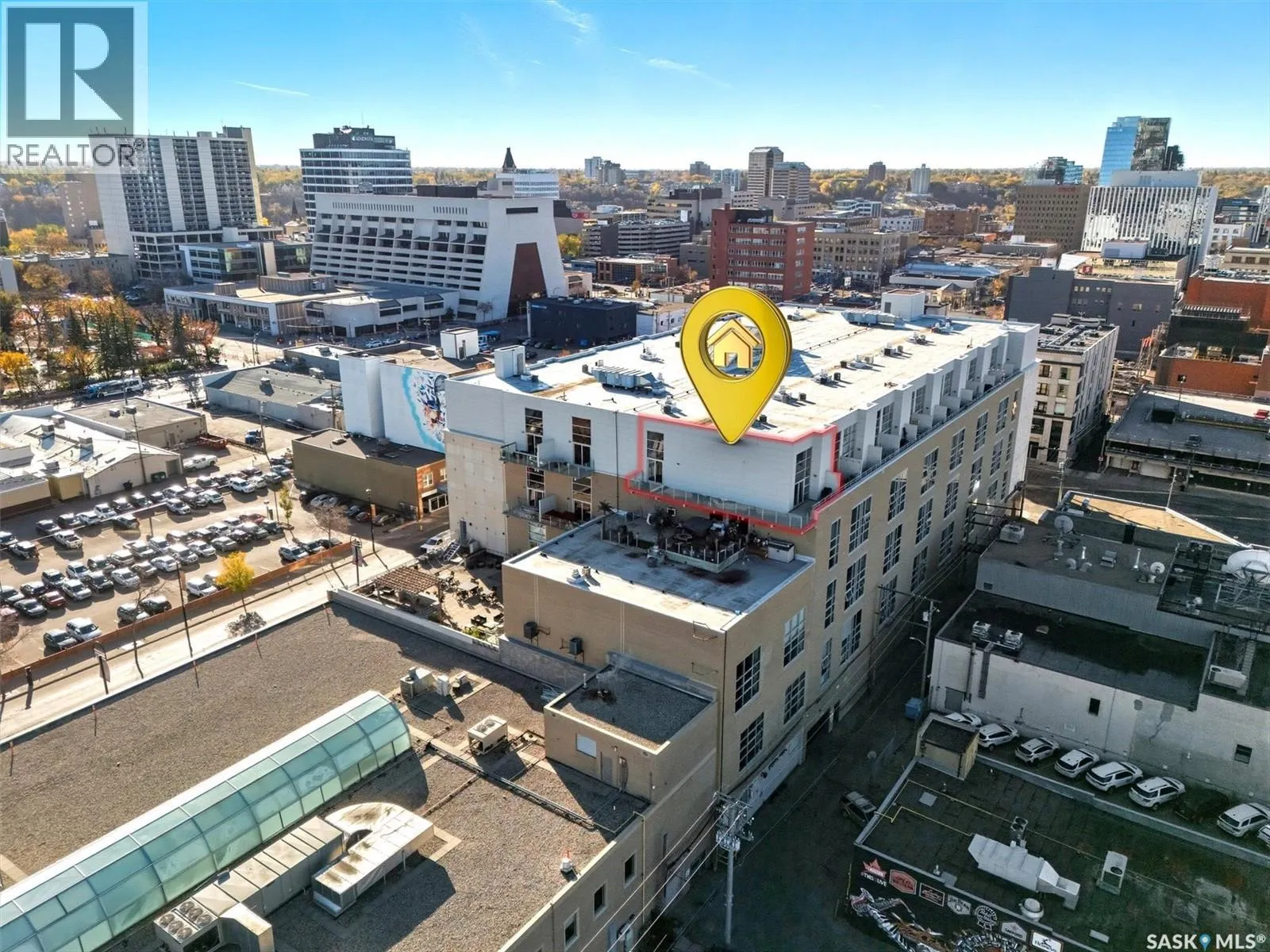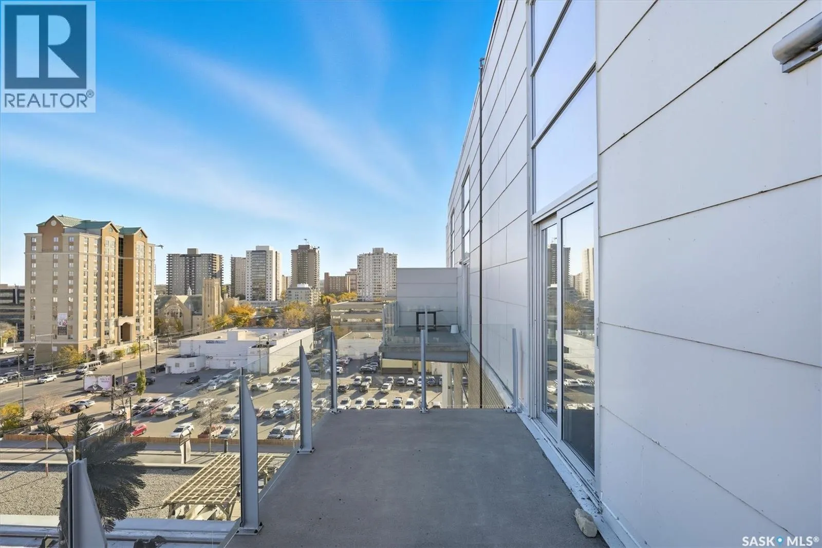 Top floor CORNER unit with massive wrap around balcony overlooking the city sky line! Welcome to the 2nd Avenue LOFTS where modern downtown living meets comfort and architectural character. This spacious 1,075 sq. ft. loft-style condo offers an open-concept layout with soaring ceilings, large windows, and a wraparound balcony that provides sweeping views of downtown Saskatoon. The highlight of this home is the large wraparound balcony overlooking Saskatoonâs new central library and the proposed new rink and event venue â the perfect spot to enjoy your morning coffee while taking in the energy and excitement of Saskatoonâs downtown revitalization. Located on the exclusive fifth floorâthe only level equipped with central air conditioningâthis unit ensures year-round comfort. The interior features polished concrete floors, a bright and functional kitchen, and a generous bedroom suite with a four-piece bath. This units updated kitchen includes brand new stainless steel kitchen appliances. A tandem underground parking for two vehicles is included for convenience and security. The installing of a vehicle lift is permitted as well (with board approval). The 2nd Avenue Lofts building offers residents access to excellent amenities, including a fully equipped gym, a recreation area with ping pong tables, a modern meeting room, and one of the best roof top patio areas (located on 3rd level) in the city. Situated in the heart of the Central Business District, youâll be steps away from restaurants, shopping, and the river valley trails. A unique opportunity to own one of the most desirable units in this sought-after building. (id:27476)