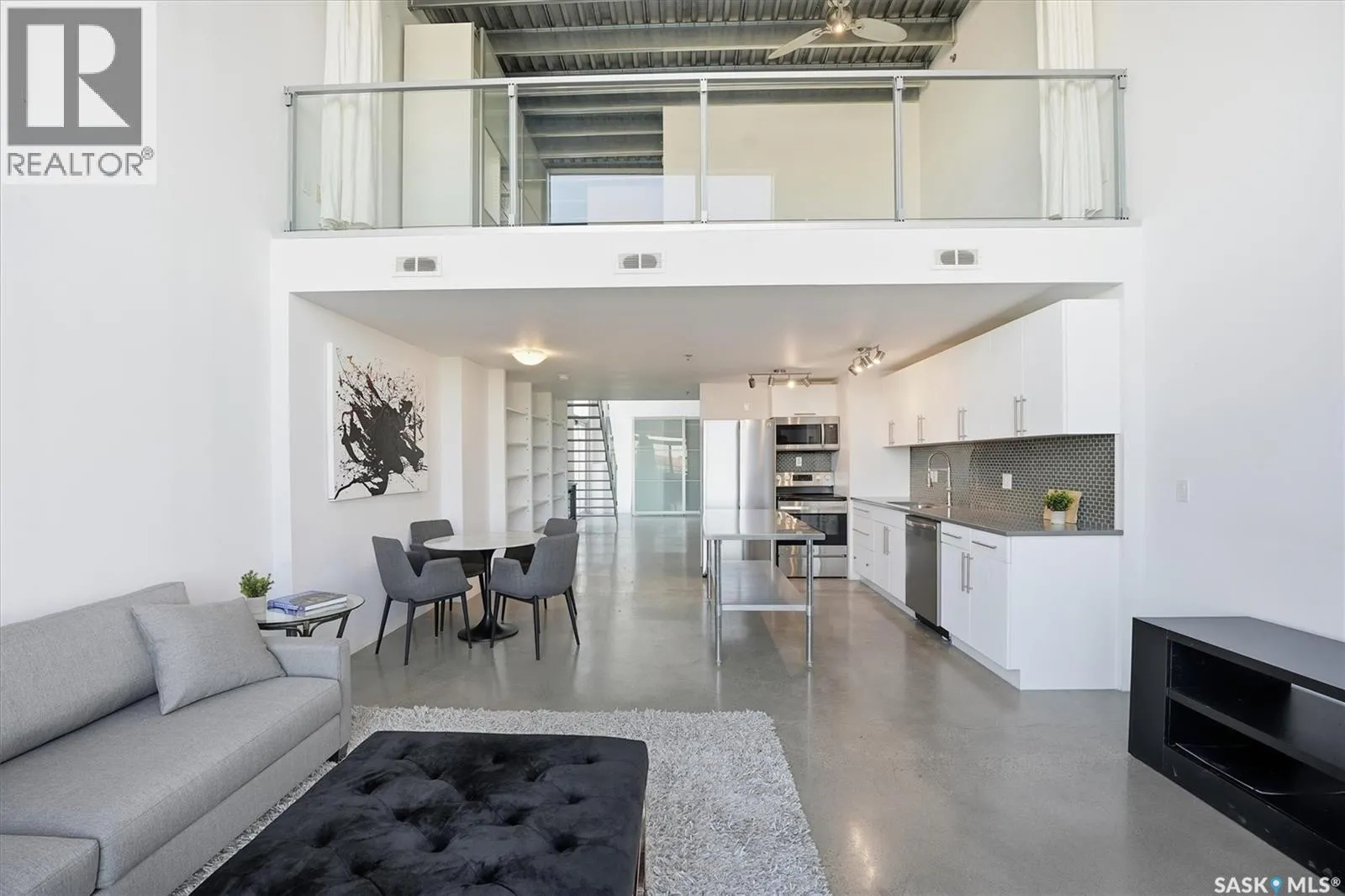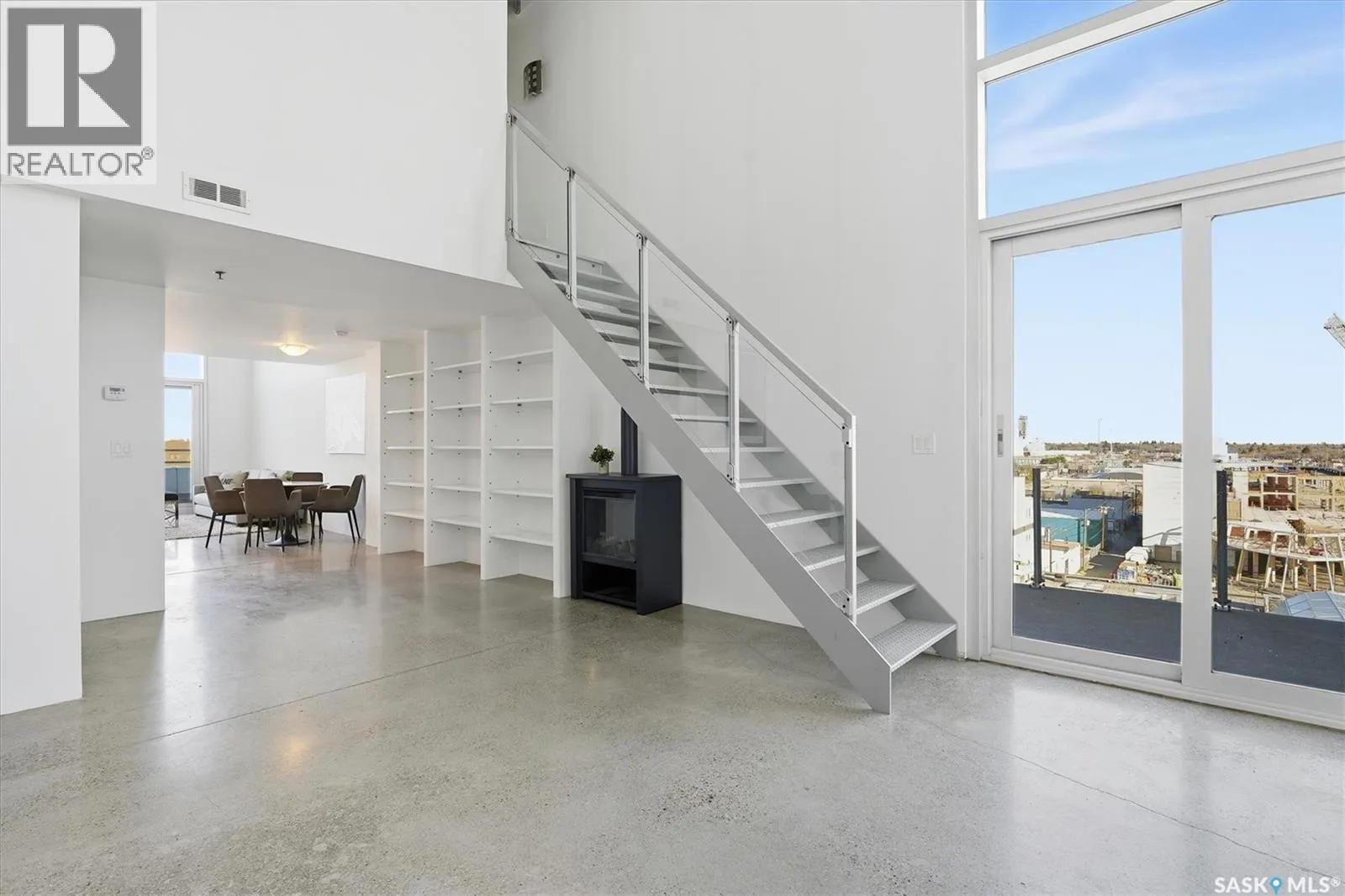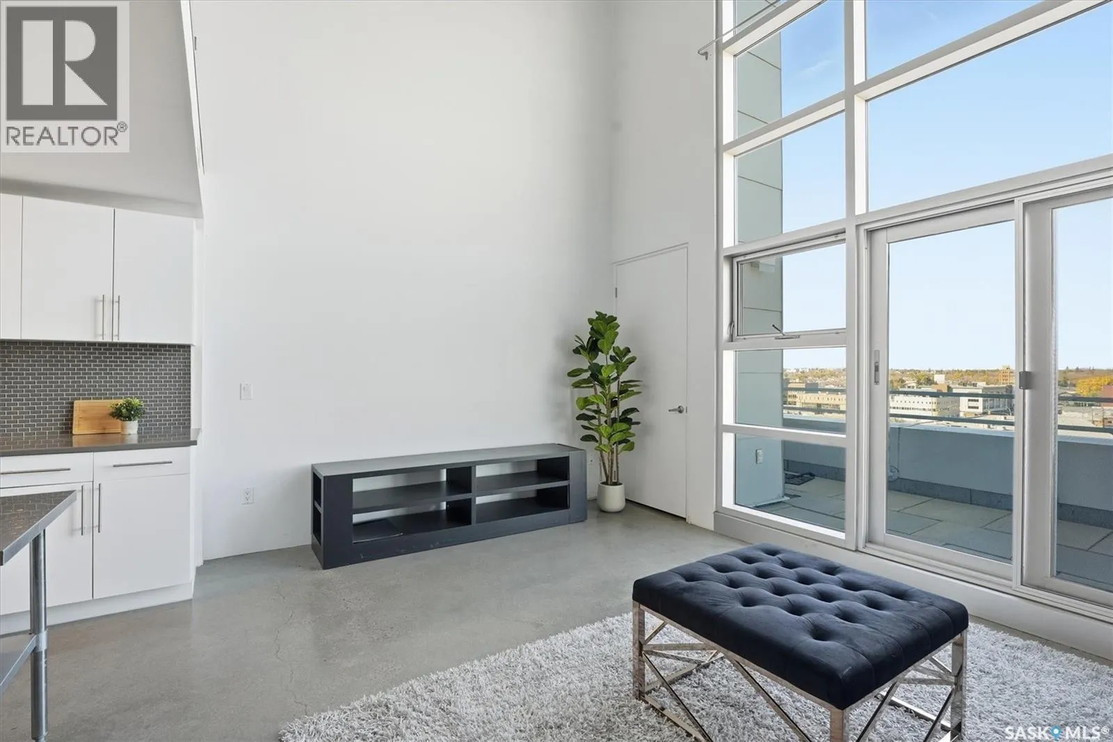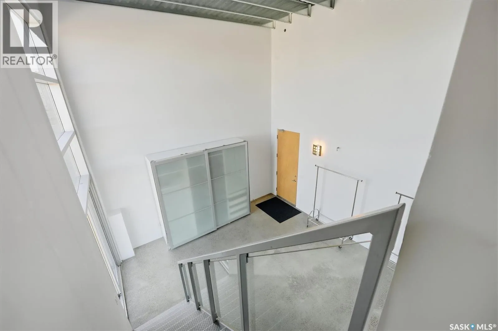 Top floor CORNER unit with massive wrap around balcony overlooking the city sky line! Welcome to the 2nd Avenue LOFTS where modern downtown living meets comfort and architectural character. This spacious 1,075 sq. ft. loft-style condo offers an open-concept layout with soaring ceilings, large windows, and a wraparound balcony that provides sweeping views of downtown Saskatoon. The highlight of this home is the large wraparound balcony overlooking Saskatoonâs new central library and the proposed new rink and event venue â the perfect spot to enjoy your morning coffee while taking in the energy and excitement of Saskatoonâs downtown revitalization. Located on the exclusive fifth floorâthe only level equipped with central air conditioningâthis unit ensures year-round comfort. The interior features polished concrete floors, a bright and functional kitchen, and a generous bedroom suite with a four-piece bath. This units updated kitchen includes brand new stainless steel kitchen appliances. A tandem underground parking for two vehicles is included for convenience and security. The installing of a vehicle lift is permitted as well (with board approval). The 2nd Avenue Lofts building offers residents access to excellent amenities, including a fully equipped gym, a recreation area with ping pong tables, a modern meeting room, and one of the best roof top patio areas (located on 3rd level) in the city. Situated in the heart of the Central Business District, youâll be steps away from restaurants, shopping, and the river valley trails. A unique opportunity to own one of the most desirable units in this sought-after building. (id:27476)