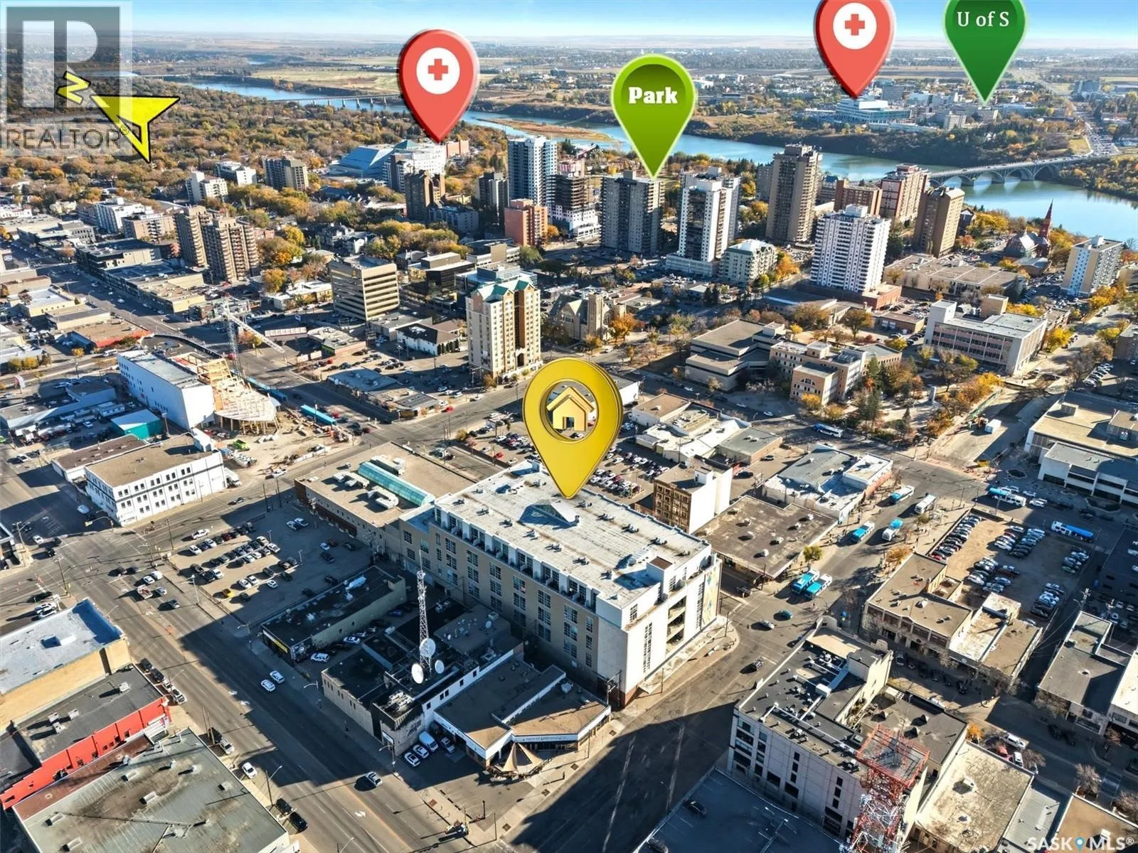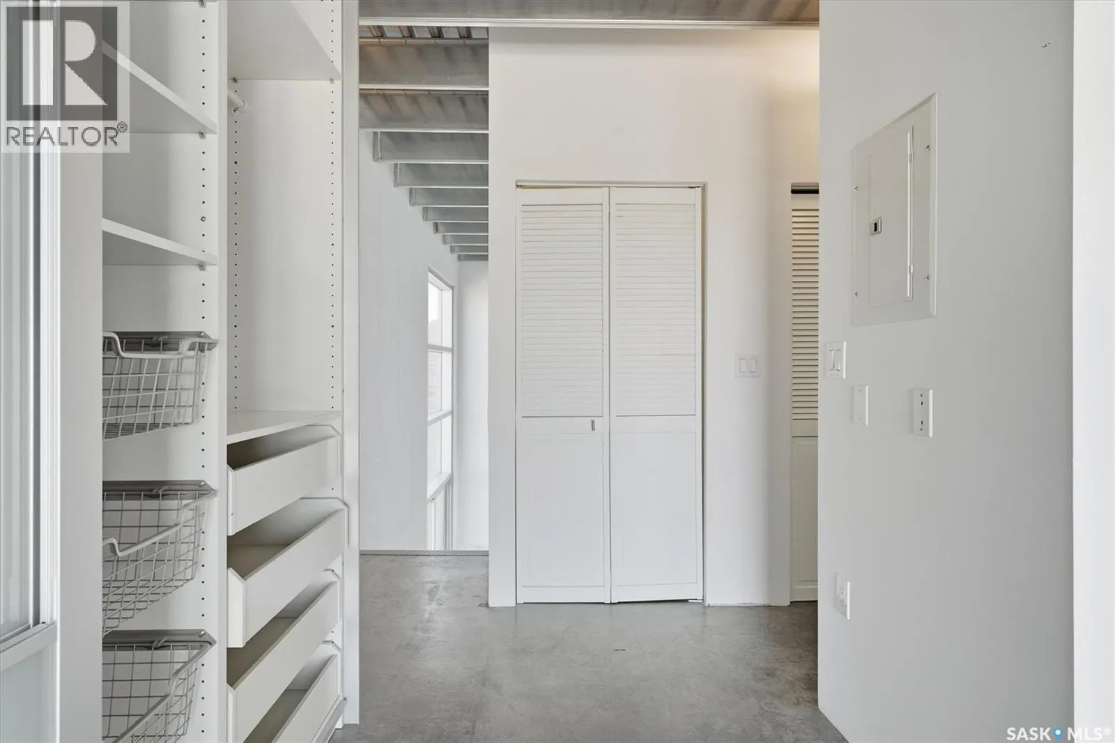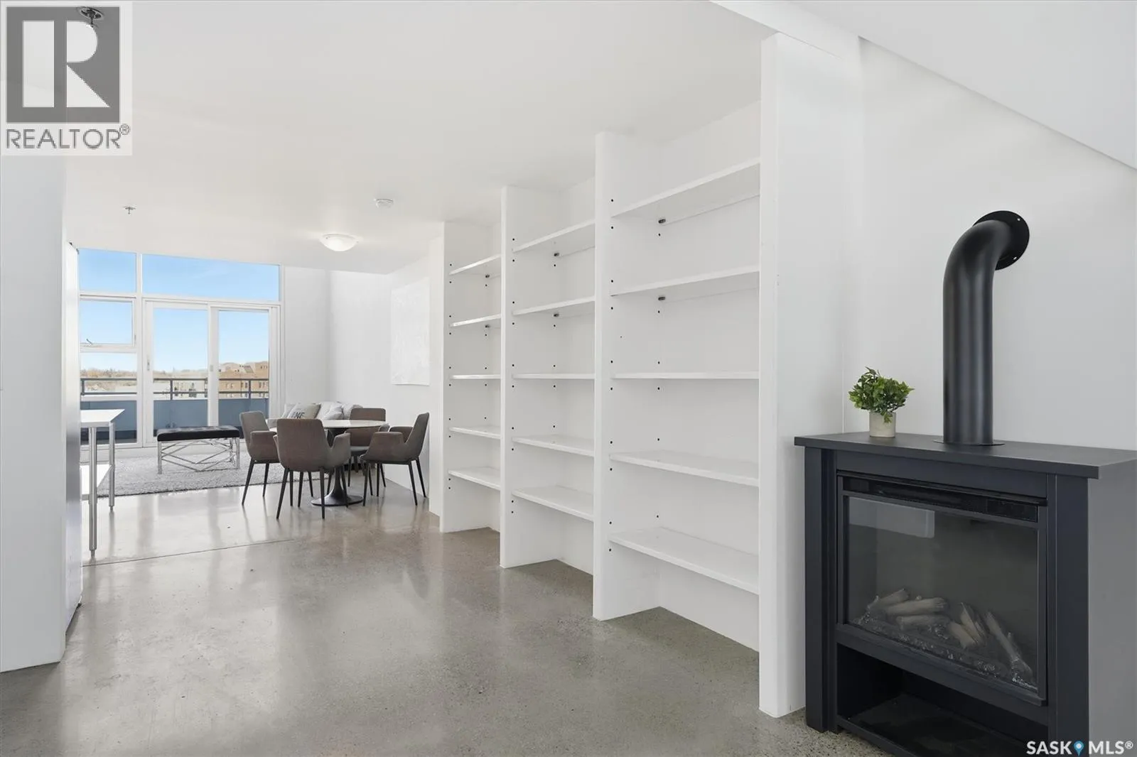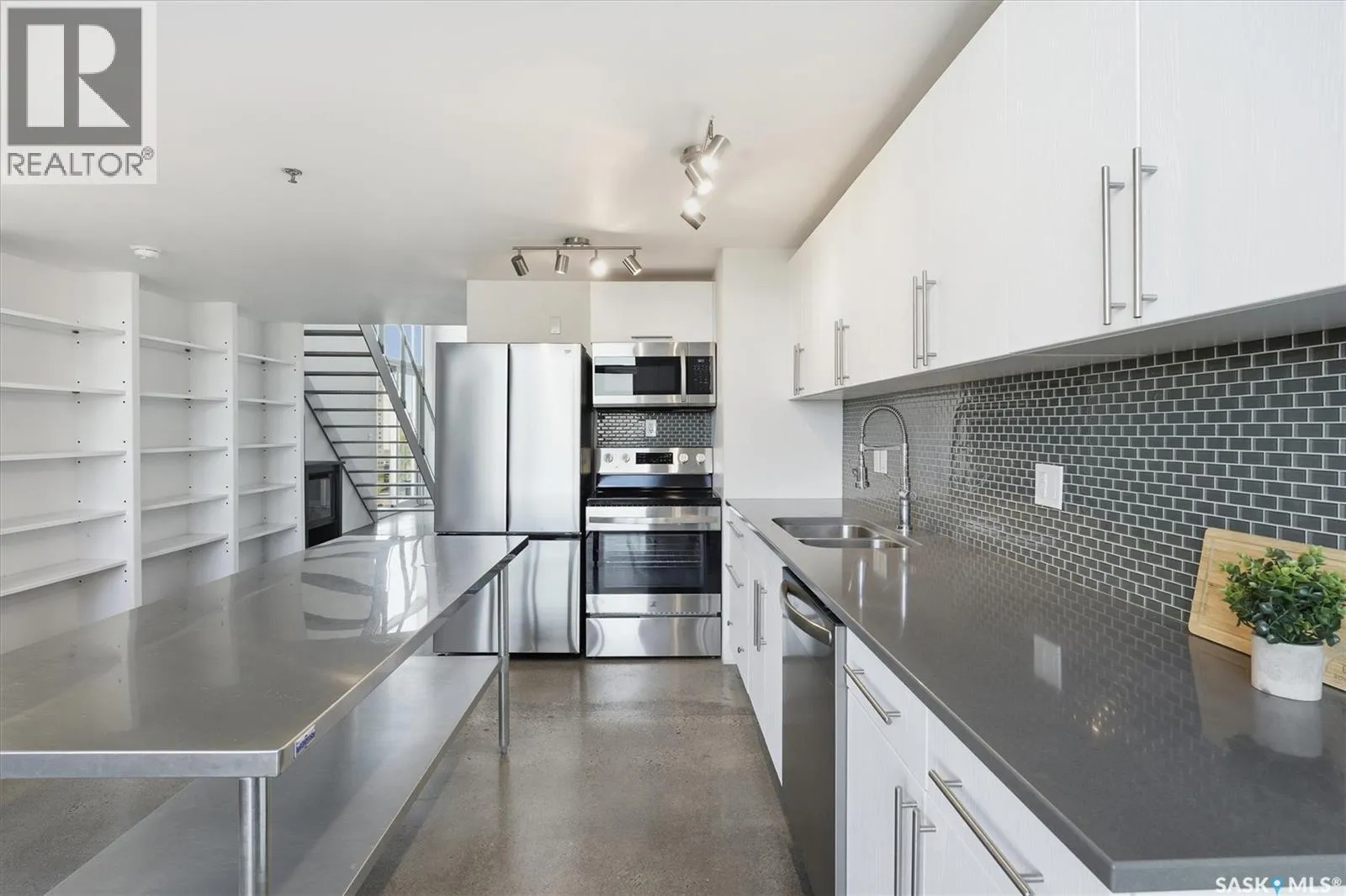 Top floor CORNER unit with massive wrap around balcony overlooking the city sky line! Welcome to the 2nd Avenue LOFTS where modern downtown living meets comfort and architectural character. This spacious 1,075 sq. ft. loft-style condo offers an open-concept layout with soaring ceilings, large windows, and a wraparound balcony that provides sweeping views of downtown Saskatoon. The highlight of this home is the large wraparound balcony overlooking Saskatoonâs new central library and the proposed new rink and event venue â the perfect spot to enjoy your morning coffee while taking in the energy and excitement of Saskatoonâs downtown revitalization. Located on the exclusive fifth floorâthe only level equipped with central air conditioningâthis unit ensures year-round comfort. The interior features polished concrete floors, a bright and functional kitchen, and a generous bedroom suite with a four-piece bath. This units updated kitchen includes brand new stainless steel kitchen appliances. A tandem underground parking for two vehicles is included for convenience and security. The installing of a vehicle lift is permitted as well (with board approval). The 2nd Avenue Lofts building offers residents access to excellent amenities, including a fully equipped gym, a recreation area with ping pong tables, a modern meeting room, and one of the best roof top patio areas (located on 3rd level) in the city. Situated in the heart of the Central Business District, youâll be steps away from restaurants, shopping, and the river valley trails. A unique opportunity to own one of the most desirable units in this sought-after building. (id:27476)