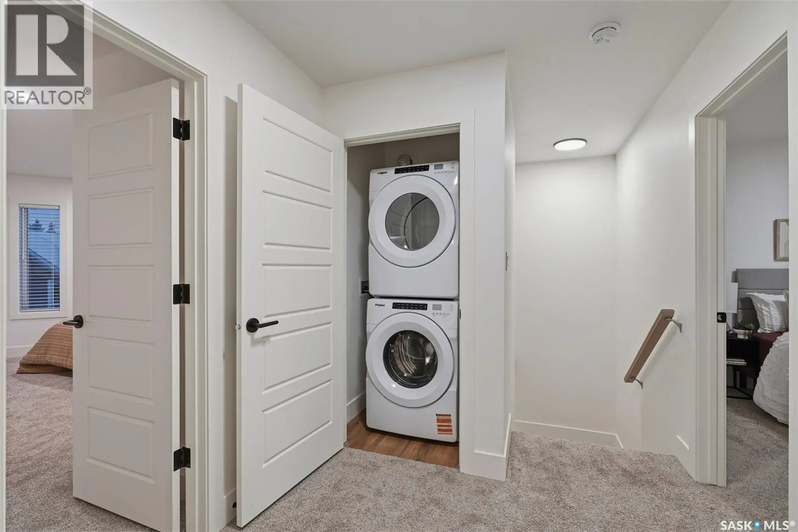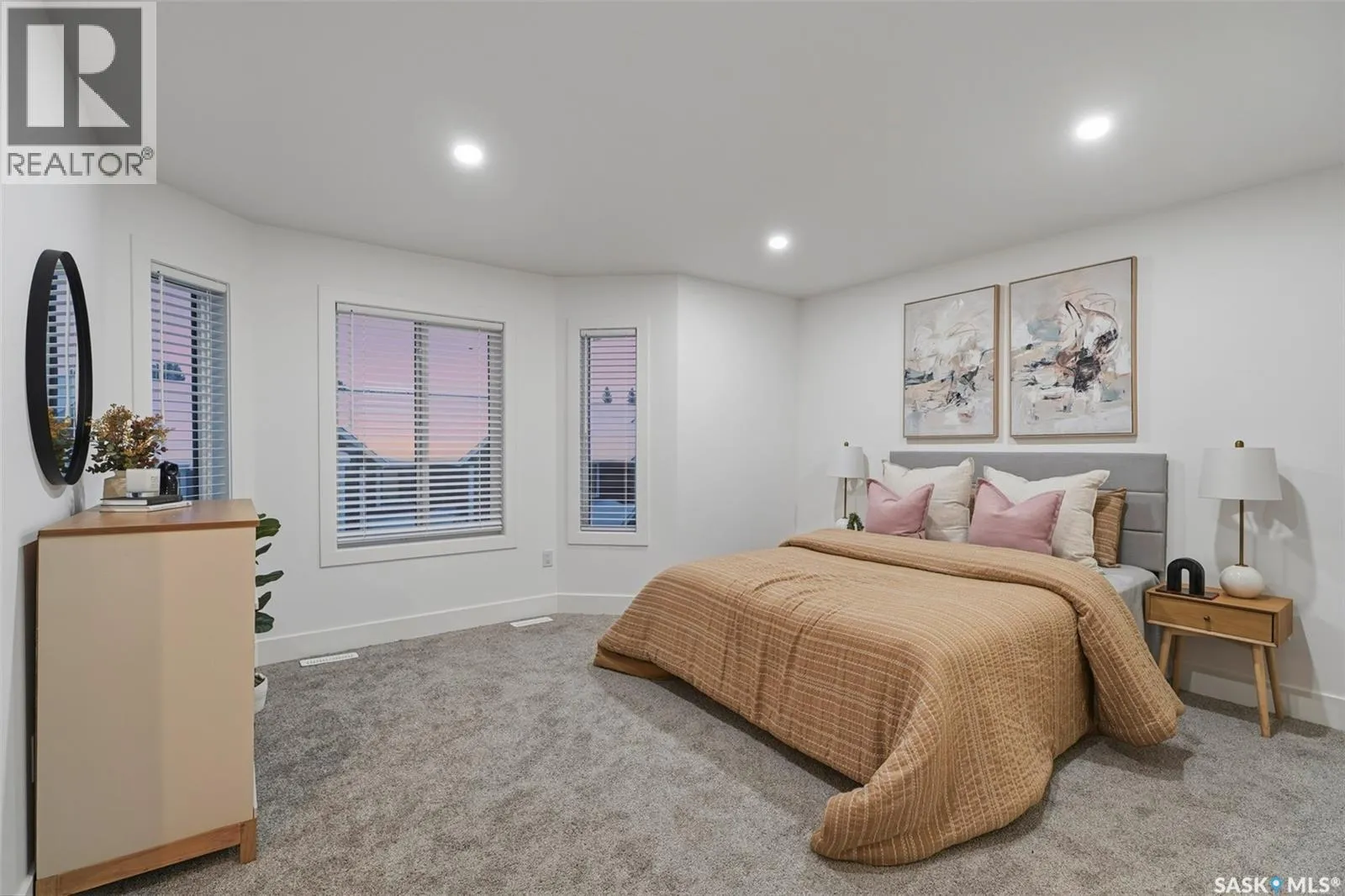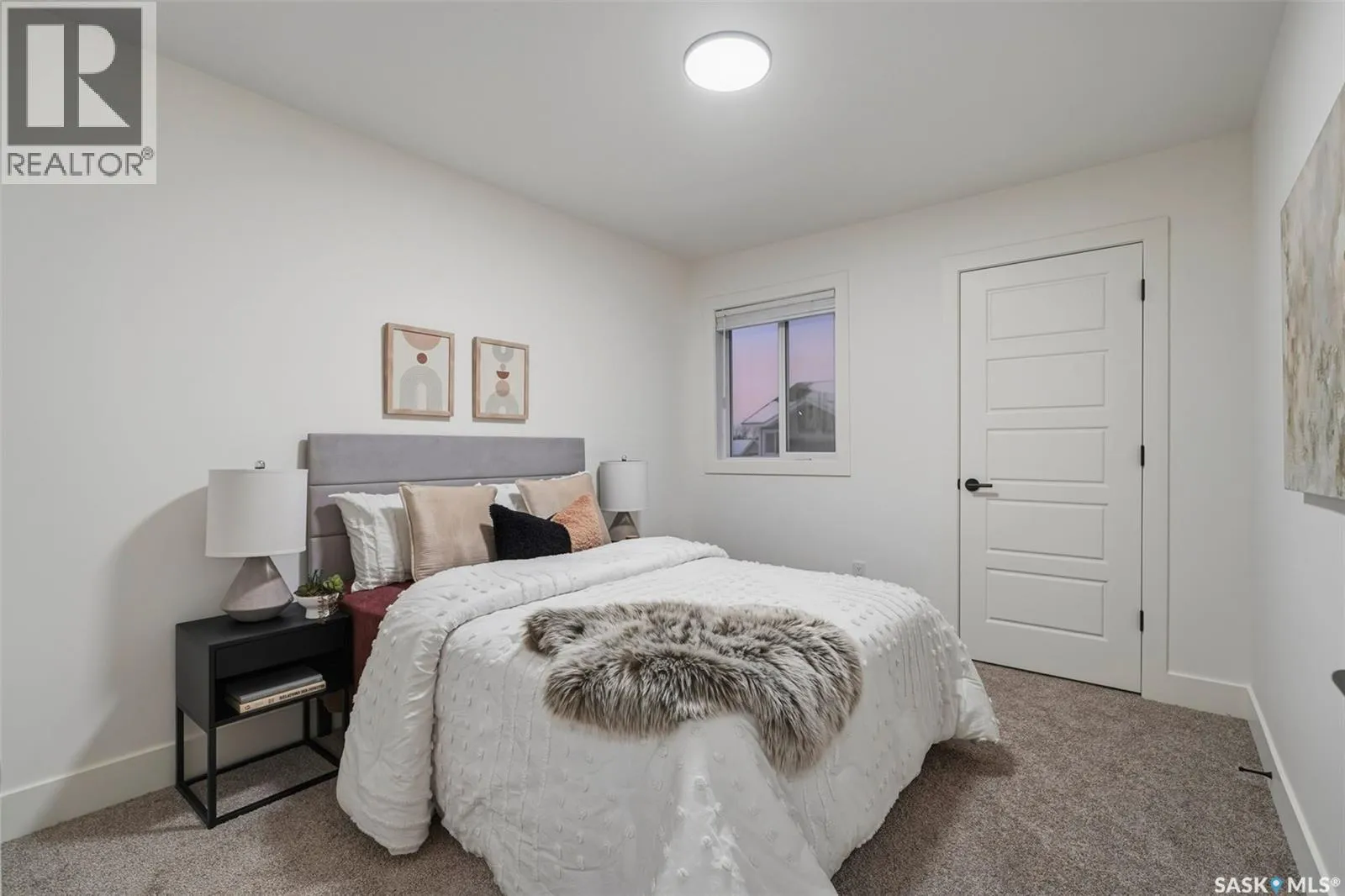 Welcome to 135â3220 11th Street West. A brand new, end unit, contemporary 3-storey townhouse offering the perfect blend of style, comfort, and functionality. Designed with modern living in mind, this home features an attached 2-car tandem style garage with a single drive and over 1,400 sq. ft. of thoughtfully designed space. Step inside to a bright and open second floor featuring 9 ft. ceilings, a spacious living and dining area, and a beautifully finished kitchen with quartz countertops, soft-close cabinetry, tiled backsplash, and a patio door to your balcony. A convenient 2-piece bath completes this level. Upstairs, the third floor offers a well-planned layout with 3 bedrooms and 2 full bathrooms, including a primary suite with a walk-in closet and beautiful ensuite. The additional 4-piece bath and laundry area are ideally located on the same floor for everyday convenience. Enjoy the practicality of a slab foundation providing durability and low maintenance, along with the peace of mind that comes with new construction. Located in the desirable Montgomery Place area, this development offers quiet residential living with quick access to Circle Drive, shopping, and amenities. Whether youâre a first-time buyer, young professional, or investor, this home checks all the boxes for modern, low-maintenance living. Please note: photos are of a similar unit and the interior photos are virtually staged. This home will be move in ready mid to end of March 2026. (id:27476)