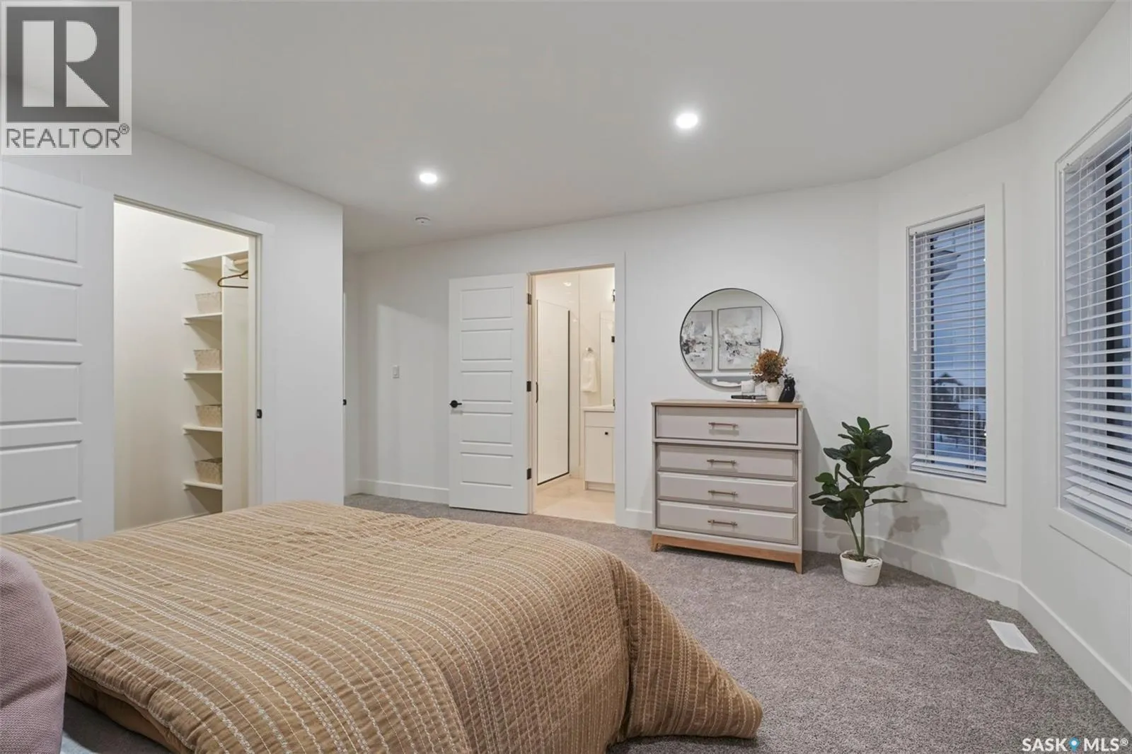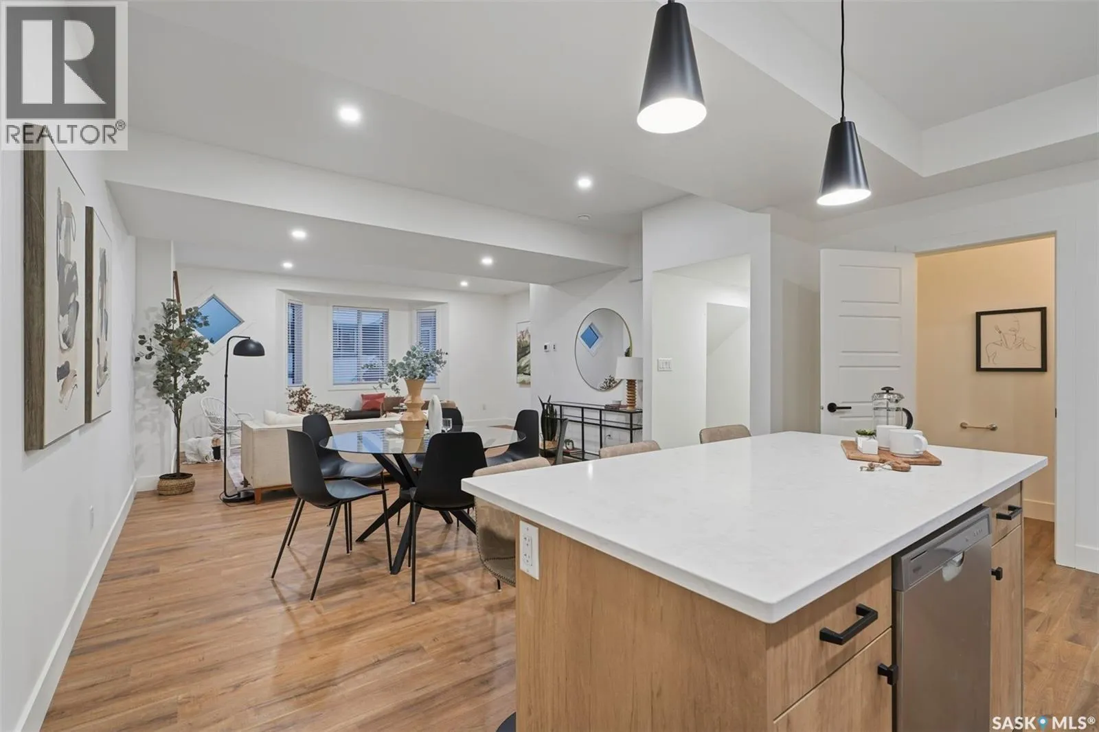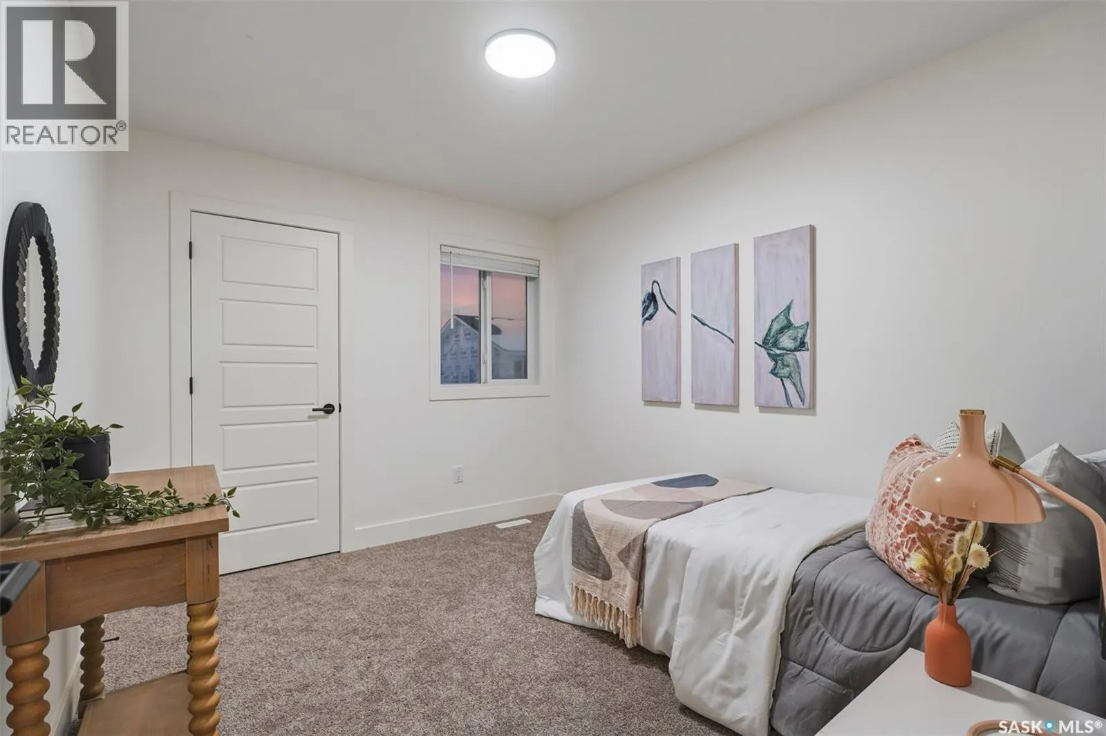 Welcome to 135â3220 11th Street West. A brand new, end unit, contemporary 3-storey townhouse offering the perfect blend of style, comfort, and functionality. Designed with modern living in mind, this home features an attached 2-car tandem style garage with a single drive and over 1,400 sq. ft. of thoughtfully designed space. Step inside to a bright and open second floor featuring 9 ft. ceilings, a spacious living and dining area, and a beautifully finished kitchen with quartz countertops, soft-close cabinetry, tiled backsplash, and a patio door to your balcony. A convenient 2-piece bath completes this level. Upstairs, the third floor offers a well-planned layout with 3 bedrooms and 2 full bathrooms, including a primary suite with a walk-in closet and beautiful ensuite. The additional 4-piece bath and laundry area are ideally located on the same floor for everyday convenience. Enjoy the practicality of a slab foundation providing durability and low maintenance, along with the peace of mind that comes with new construction. Located in the desirable Montgomery Place area, this development offers quiet residential living with quick access to Circle Drive, shopping, and amenities. Whether youâre a first-time buyer, young professional, or investor, this home checks all the boxes for modern, low-maintenance living. Please note: photos are of a similar unit and the interior photos are virtually staged. This home will be move in ready mid to end of March 2026. (id:27476)