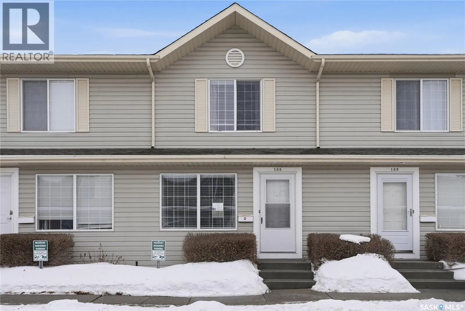 Welcome to unit 185 â 815 Kristjanson Road. This 952 sq ft townhouse is located in Silverspring â offering a great location close to the U of S, elementary schools, and many amenities nearby. Main floor consists of your living room with large front facing window, kitchen/dining area with bright white cabinets, and appliances including dishwasher, stove, hood fan, and fridge. Sliding glass door gives you access to your backyard patio, offering privacy and grass area. 2-pc bath completes the main floor. Coming upstairs you will find two spacious bedroom â with carpet flooring, and a 4-pc bath. Basement is open for development and contains your laundry + utility area. Unit comes with 1 parking spot located right in front of unit, as well additional spots can be rented from Property Management Firm at an additional $50/month. Great opportunity home! (id:27476)