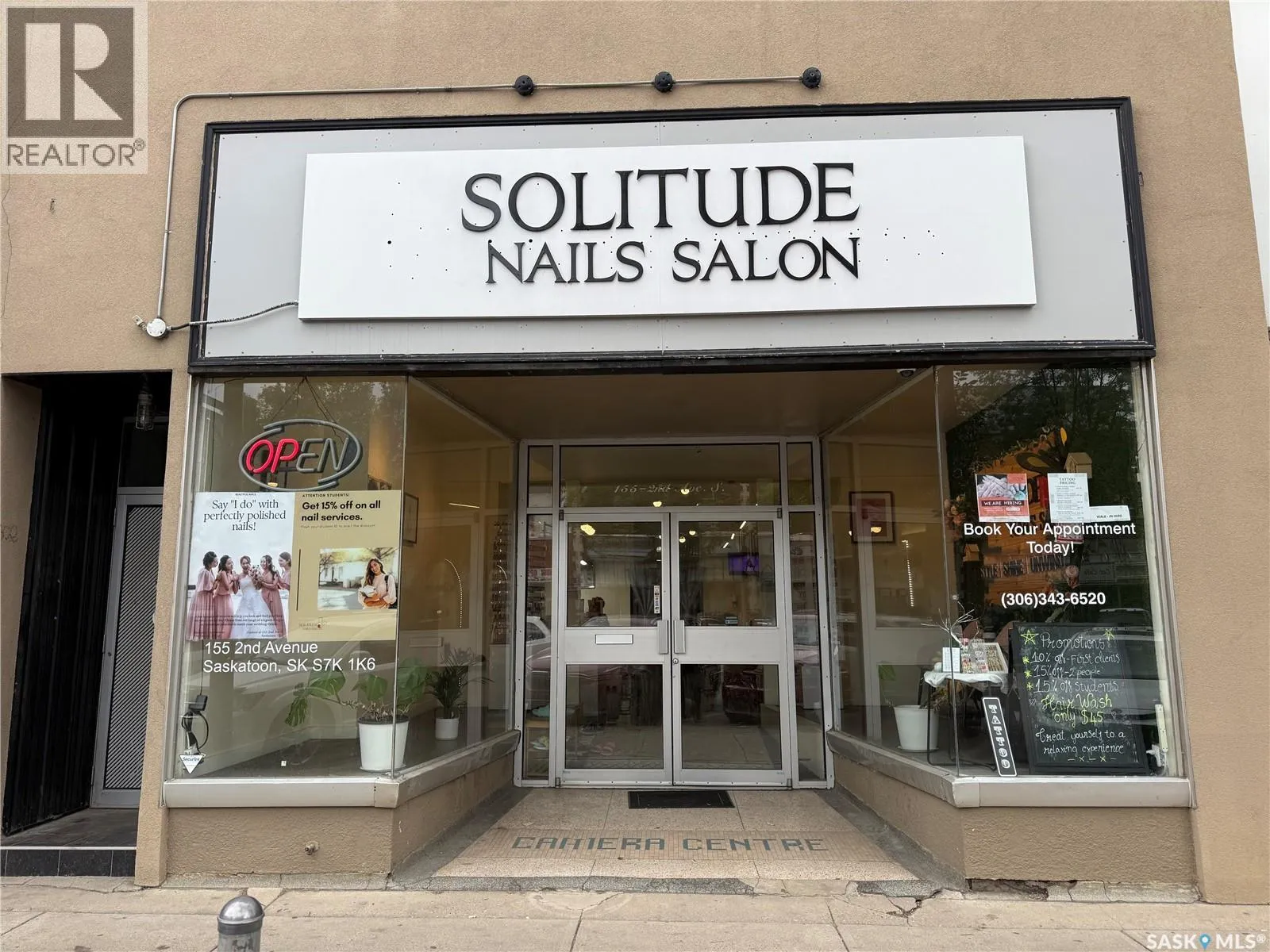 Become the owner of Solitude Salon, an established business located in the heart of downtown Saskatoon. This fully operational salon includes all existing equipment and supplies, allowing for a smooth transition for a new owner. The space offers a functional layout, an existing client base, and established day-to-day systems. Situated in a central, high-traffic area, the business provides a solid foundation for someone looking to continue operations with the opportunity to maintain, refine, or grow the business over time. (id:27476)