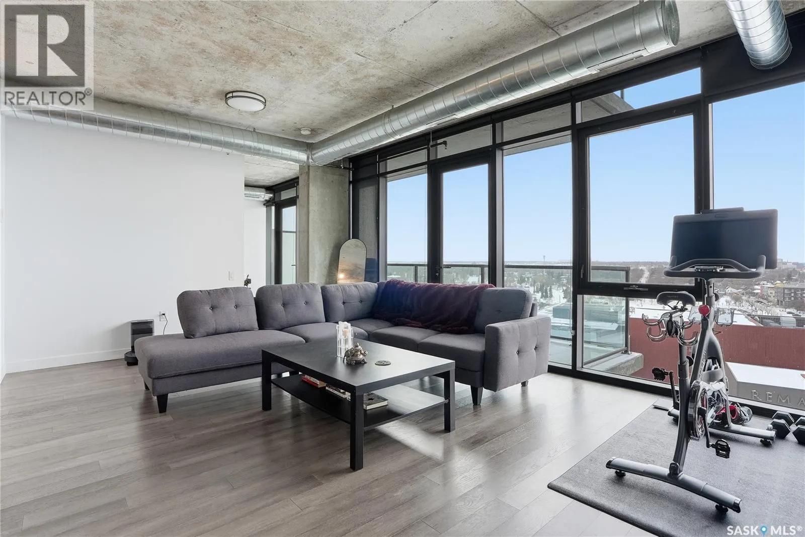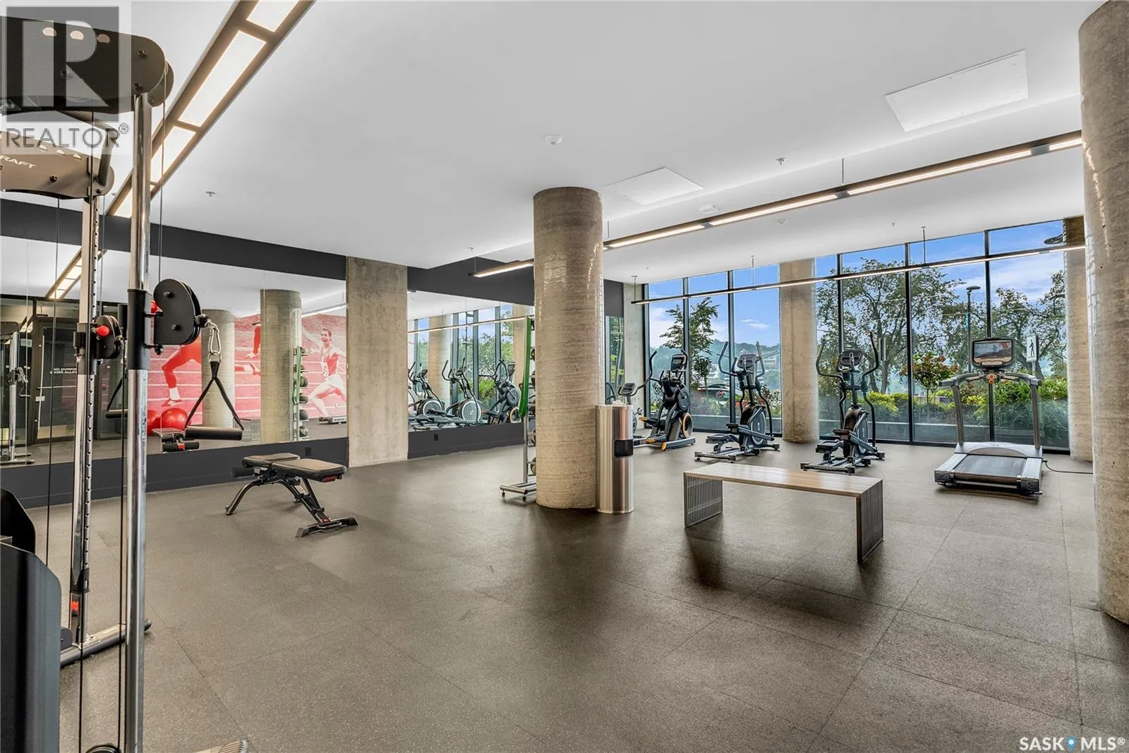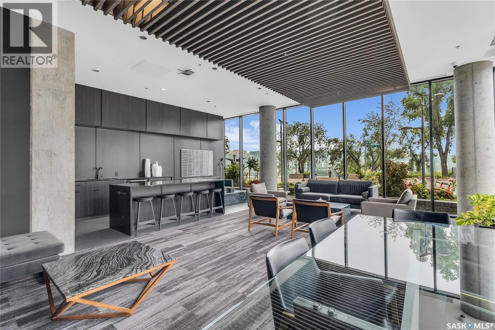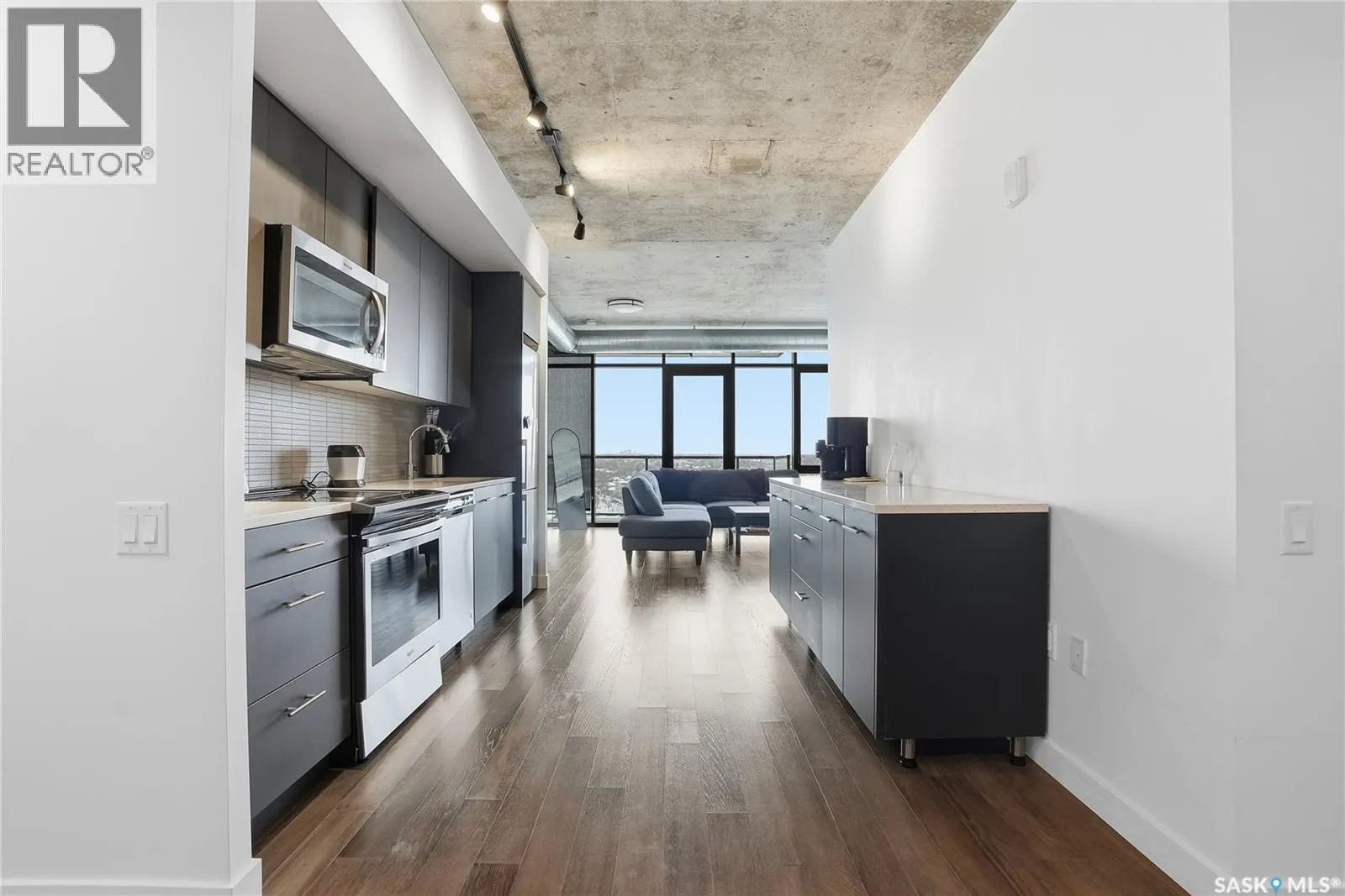 Stunning 13th floor unit at No. 1 River Landing, featuring an expansive view of Saskatoon's downtown, River Landing Park and the South Saskatchewan River. Great layout with 9 ft concrete ceilings, kitchen with quartz counters and stainless steel appliances, 2 bedrooms + den and two bathrooms. Primary bedroom has direct access to the balcony and features a walk-thru closet open to your ensuite with a tiled shower. Second bedroom has a large closet and sliding door entry. Laundry (new washer & dryer!) and additional bathroom are tucked away from the main living space. The floor to ceiling windows run along the whole west side of the unit in the primary Bedroom and spacious living room. This home has central air conditioning, underground parking, storage space, gym and amenities room with pool table and kitchenette. Located just steps away from the river, Remai Modern, many local restaurants, the movie theatre and Midtown Mall. Easily access all downtown amenities and Circle Drive ensuring you're well-connected. (id:27476)