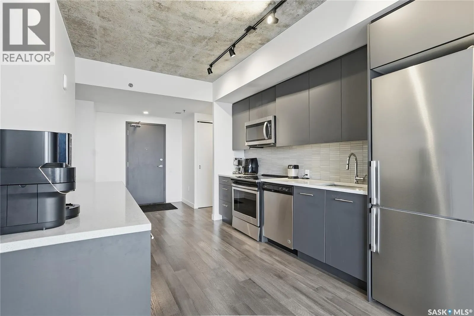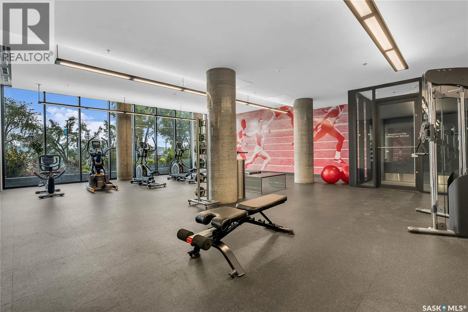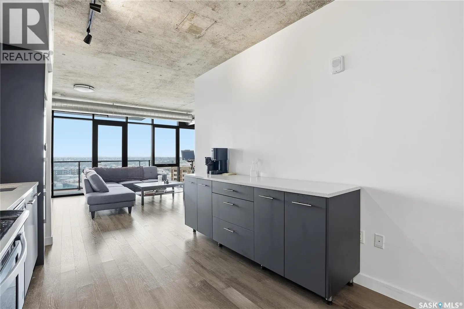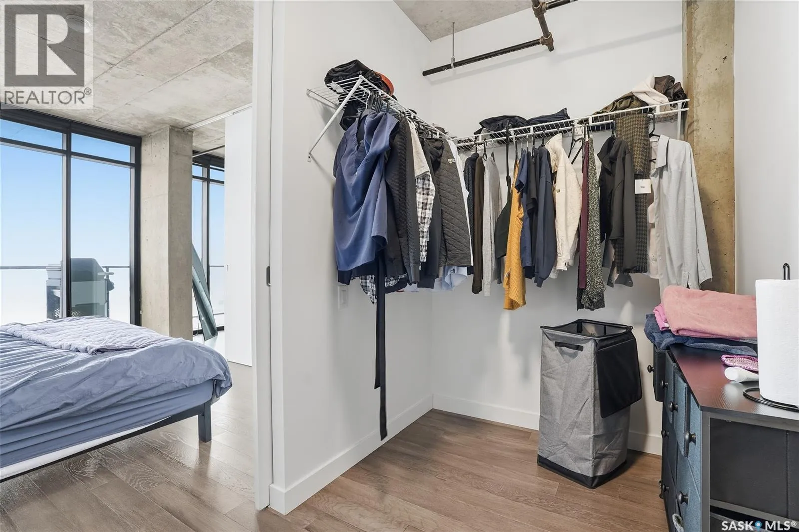 Stunning 13th floor unit at No. 1 River Landing, featuring an expansive view of Saskatoon's downtown, River Landing Park and the South Saskatchewan River. Great layout with 9 ft concrete ceilings, kitchen with quartz counters and stainless steel appliances, 2 bedrooms + den and two bathrooms. Primary bedroom has direct access to the balcony and features a walk-thru closet open to your ensuite with a tiled shower. Second bedroom has a large closet and sliding door entry. Laundry (new washer & dryer!) and additional bathroom are tucked away from the main living space. The floor to ceiling windows run along the whole west side of the unit in the primary Bedroom and spacious living room. This home has central air conditioning, underground parking, storage space, gym and amenities room with pool table and kitchenette. Located just steps away from the river, Remai Modern, many local restaurants, the movie theatre and Midtown Mall. Easily access all downtown amenities and Circle Drive ensuring you're well-connected. (id:27476)