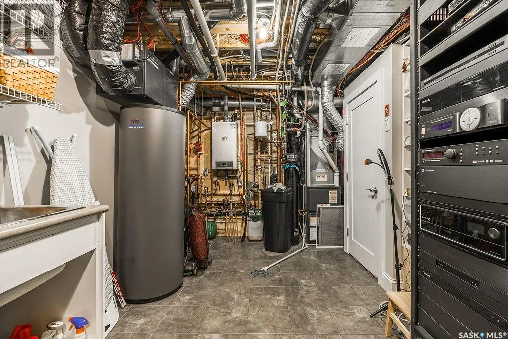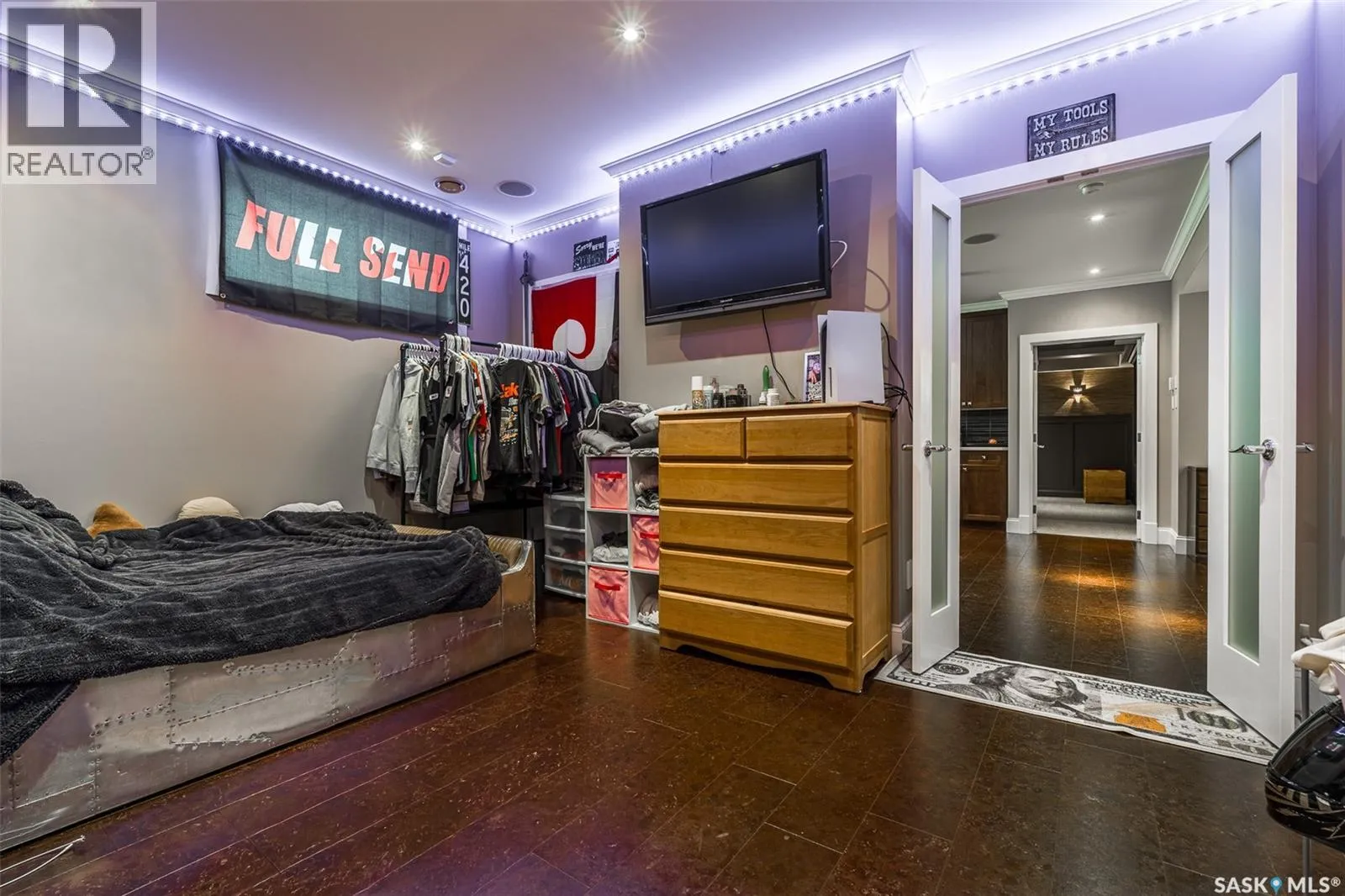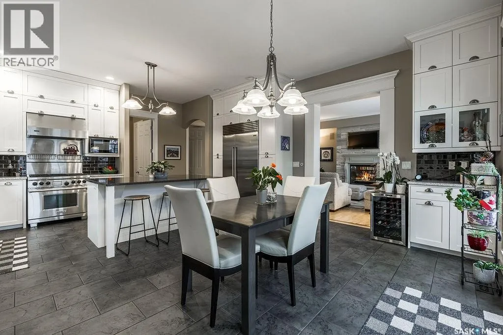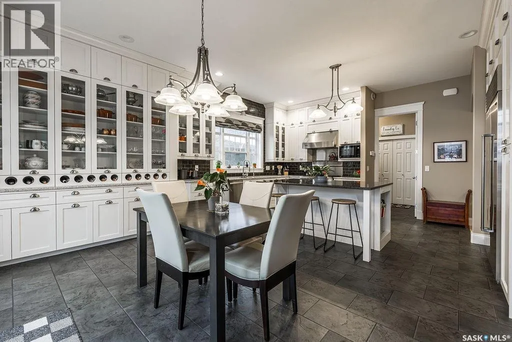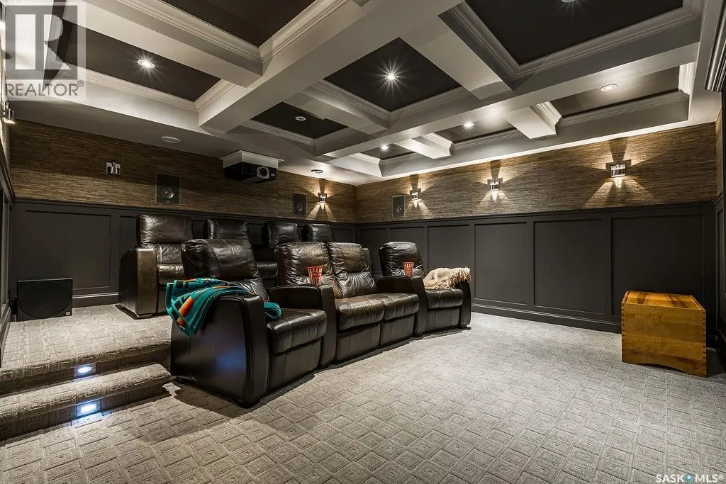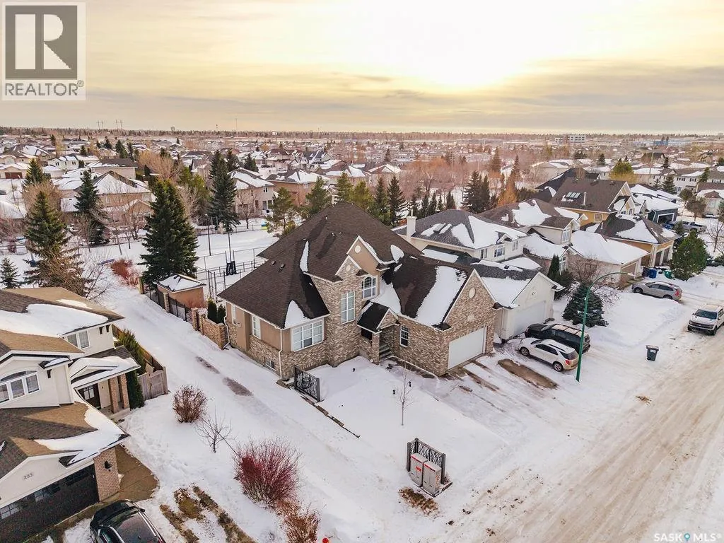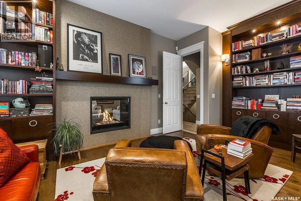 Stately and elegant, welcome to this beautiful home backing the park on a quiet street in sought-after Arbor Creek.This exceptional property has been finished with premium, high-end finishes & offers an incredible blend of luxury, comfort & family functionality. The main floor welcomes you with a striking 20' 2-storey front foyer that leads into a stunning living room with a cozy gas fireplace & large windows overlooking the backyard. Through the living room is a chefâs dream kitchen featuring granite countertops, a massive island, top-end appliances & an abundance of custom cabinetry. A large dining space features a coffee bar & garden doors to the backyard. Through the kitchen is a large mudroom with laundry & access to the attached double garage. A 2-pc powder room off of the mudroom & foyer makes for easy convenience. A main floor office overlooks the front garden. A stunning main-floor library with built-in bookcases & double sided fireplace is the perfect main floor retreat. Upstairs, the primary suite has an abundance of storage, complete with an updated 4-piece ensuite featuring a soaker tub & standalone shower. Two more generously sized bedrooms & another 4-piece bathroom complete the upper level. The fully developed basement is equally impressive, offering a cozy family room with a bar and fireplace, dedicated games rooms, an additional bedroom & a luxury bathroom with a steam shower. The best part of the basement is the theatre room with overhead projection and tiered theatre seating, ideal for movie nights and entertaining. The utility room has a sink and plenty of extra storage room. The outdoor space is nothing short of spectacular. Enjoy an outdoor kitchen, multiple lounging and dining areas, a hot tub, an incredible sport court, and a heated skate shack. Great curb appeal with an impressive brick exterior & wide driveway. This home backs the park for additional privacy. Great location, great finishes, great space, waiting for you to call it home. (id:27476)