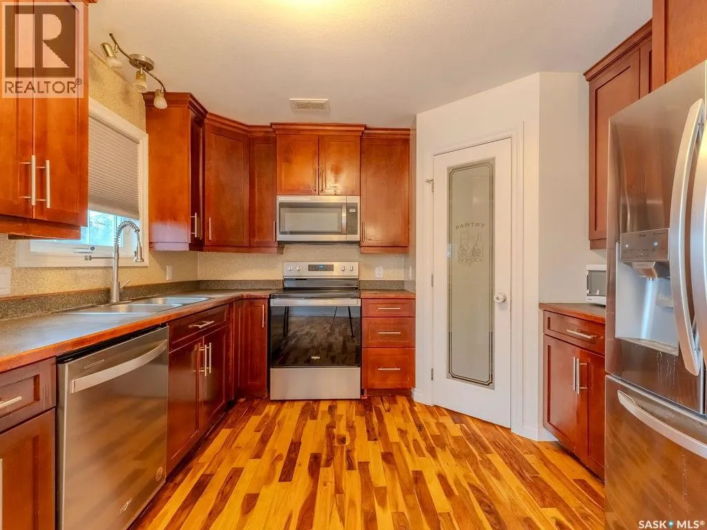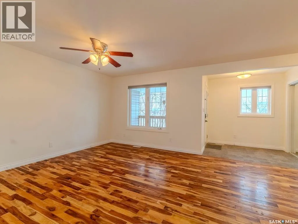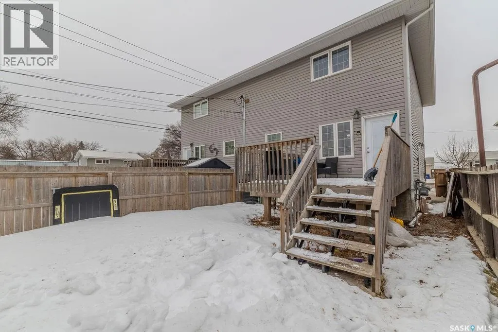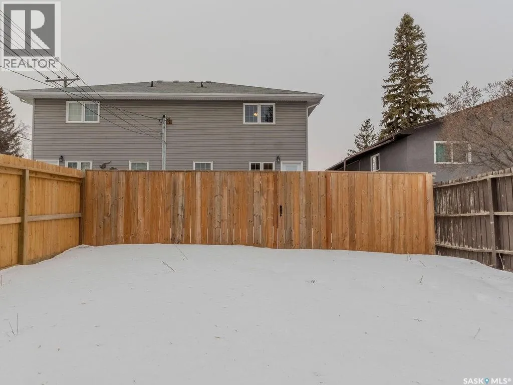 Welcome to this well-designed 1,452 sq ft half duplex offering flexibility, functionality, and excellent income potential in a convenient north-end location. The home is anchored by a charming front porch, perfect for morning coffee or evening relaxation, and a rear deck ideal for summer entertaining and outdoor dining. Inside, the main floor features a welcoming foyer that opens into a bright living room, followed by a convenient 2-piece bathroom with main-floor laundry. The dining area and kitchen are positioned at the rear of the home, creating a practical and connected layout for everyday living. Hardwood flooring runs throughout the entire main floor, which has been recently painted, giving the space a fresh and move-in-ready feel. Upstairs, you will find a full 4-piece bathroom, two generously sized bedrooms ideal for children, guests, or a home office, plus a spacious primary bedroom complete with a walk-in closet and private 3-piece ensuite. The fully developed basement offers a non-conforming 2-bedroom, 1-bathroom suite with a seperate entrance and separate laundry, providing an excellent opportunity to offset your mortgage or generate additional rental income. Completing the package are four off-street parking spaces, adding convenience and value for homeowners and tenants alike. This property is a fantastic option for first-time buyers, families, or investors seeking a Saskatoon duplex with rental income potential, a functional layout, and long-term value. (id:27476)
