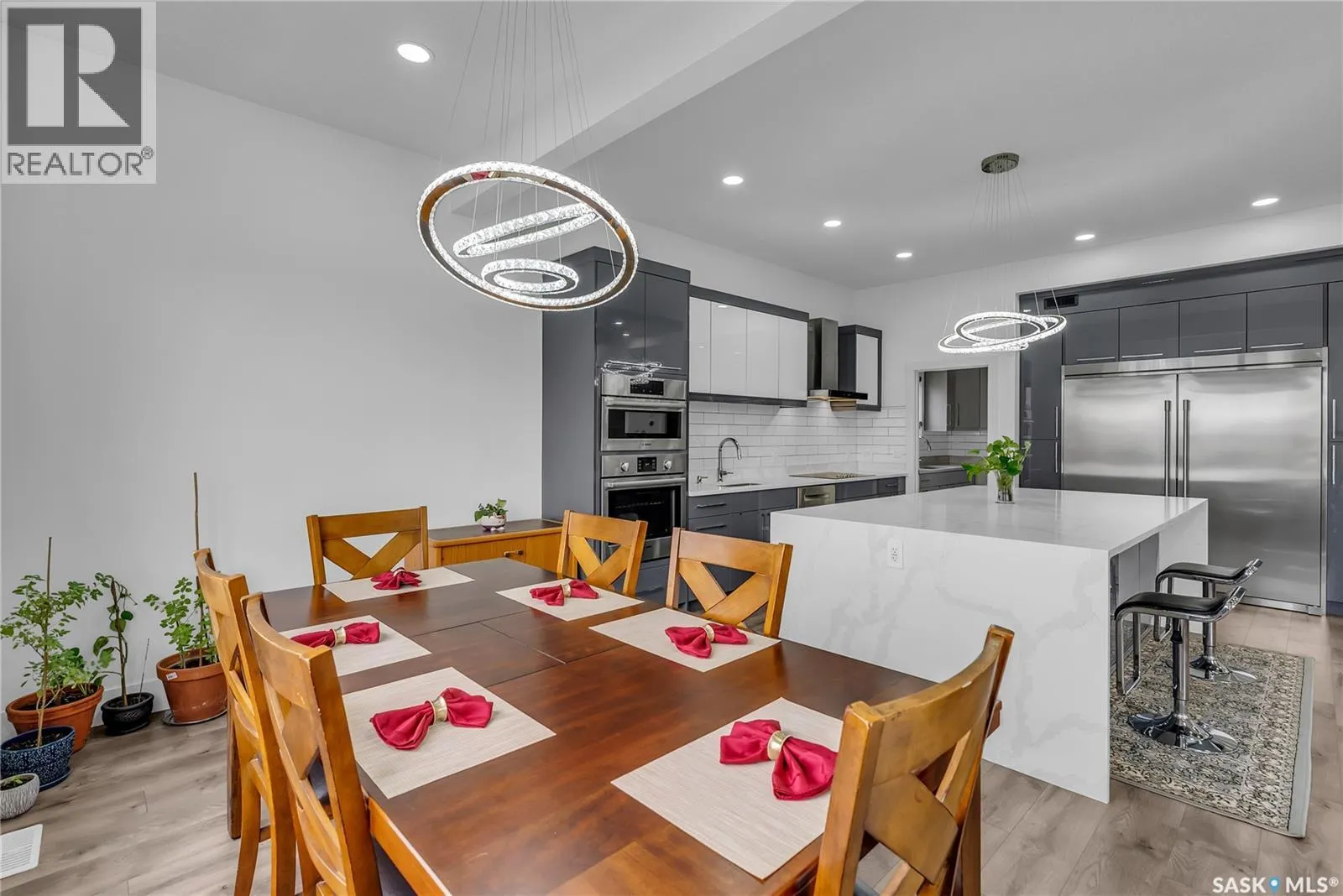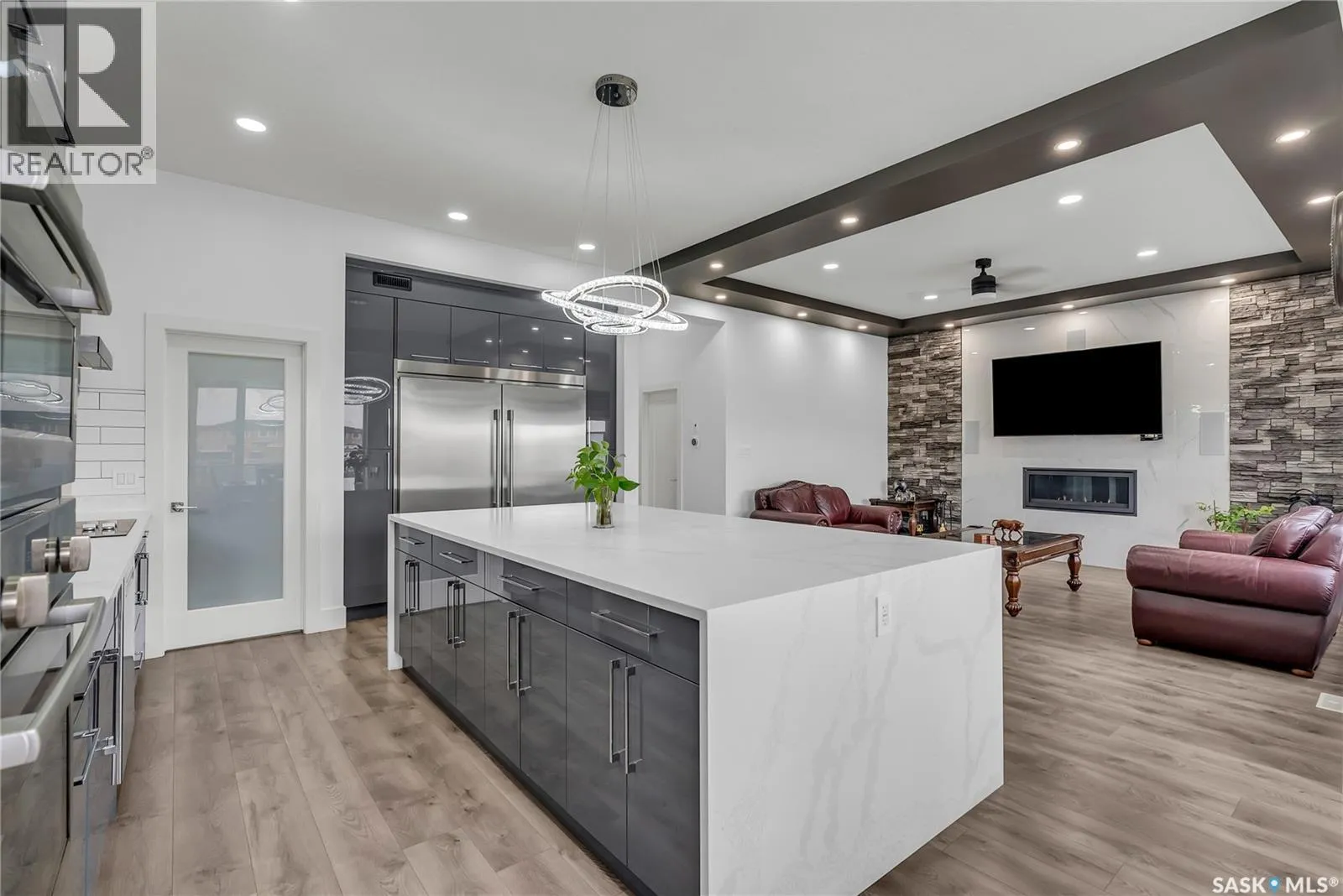 This one-of-a-kind 2,619 sq ft 2 storey home beams w/ modern elegance & the upmost quality. Walking into your foyer w/ oversized tile floors, chandelier, & elegant staircase leading you to the 2nd level. Main floor living space, w/ 10 ft ceilings, wide plank laminate flooring, upgraded trim/baseboards, tile feature wall, cove ceiling, recessed lighting, gas fireplace w/ stone accent, built-in sound system & motorized blinds. Leading to your dinette & kitchen w/ high-end appliances including dishwasher, glass top stove, built-in microwave & oven, Frigidaire fridge/freezer combo, custom vented hoodfan, soft-close cabinets, Calcutta quartz island w/ waterfall edge, custom backsplash/lighting pack. Equipped w/ a 2nd prep kitchen w/ quartz counter, backsplash, gas range w/ powerful exhaust fan, garburator, & walk-in pantry w/ custom shelving. Bedroom, 4pc bath w/ heated floors complete this floor. 2nd level primary bedroom, motorized blinds, ceiling fan, built-in speakers,walk-in closet w/ custom floor to ceiling mirror, ensuite w/ Calcutta quartz double vanity, jet soaker tub, tempered glass shower w/ tile surround, rainfall shower w/ steam option & heated tile flooring. 2 additional good sized bedrooms, 4-pc bath & walk-in laundry room w/ S.S sink & tile floors, additional bonus room w/ French doors & built in speakers, complete the 2nd floor. Basement equipped w/ full legal suite w/ separate entrance, laminate flooring, 2 bedrooms, separate laundry, SS appliances, 4pc bath w/ tile floors, quartz countertops, separate furnace/HRV unit. Additional bedroom in basement w/ 4pc ensuite that is in the owners side, but is being presently rented to tenant along with basement suite. Coming to your park backing yard, w/ upgraded metal fencing, oversized composite deck w/ glass aluminum railing, glass privacy screen, & BBQ gas line. Double attached heated garage w/ high ceilings, upgraded triple car driveway, security cameras, 2ft concrete apron around the home. B'ment rent $1700 (id:27476)