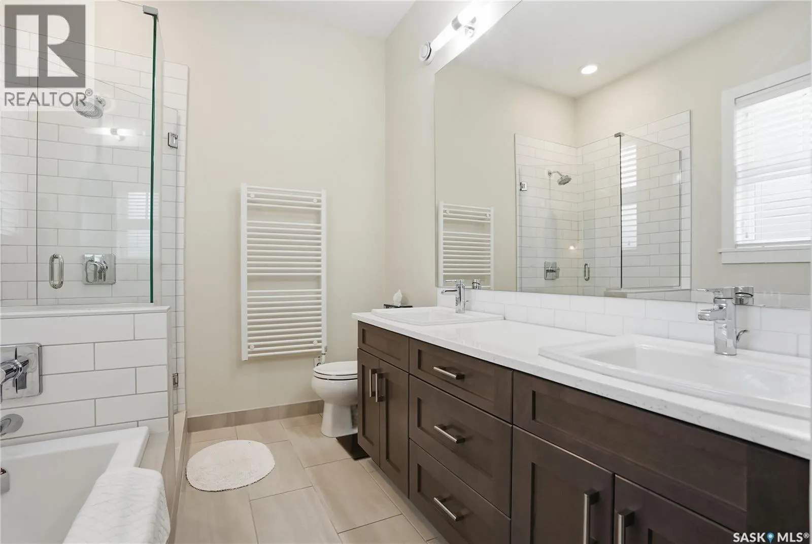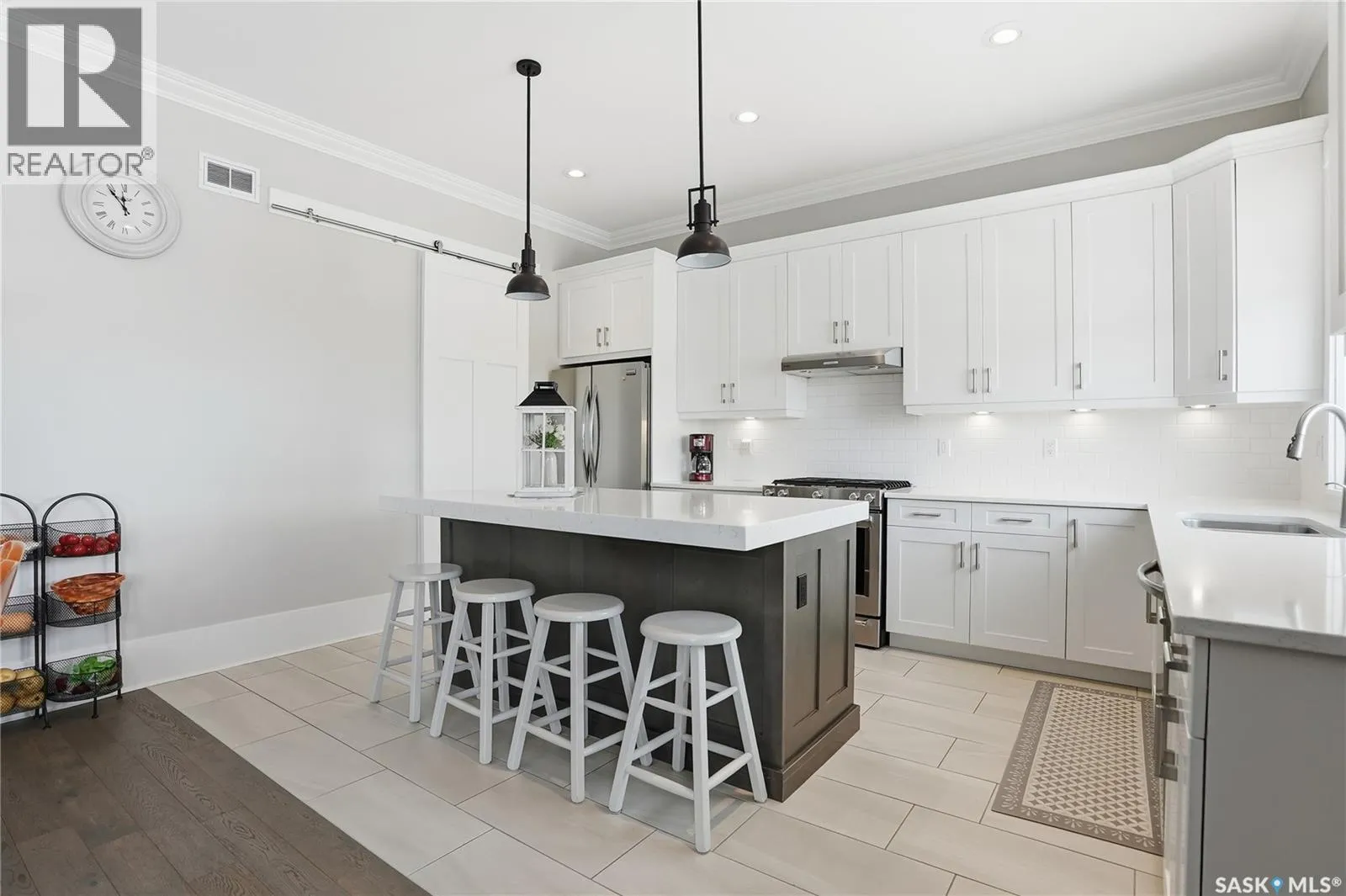 Experience upscale living in Rosewood, an area renowned for its upscale homes and convenient location. This modern, meticulously maintained home offers beautiful landscaping, excellent curb appeal, and seamless indoor-outdoor living. A warm entry welcomes you to a main floor office, while 10-foot ceilings create an expansive feel throughout the main level. The living area centers on a gas fireplace, and the chefâs kitchen features stainless steel appliances, a gas stove, abundant cabinetry, an island, a dining area, garden doors to the deck, and a natural gas barbecue hookup. The primary bedroom is a private retreat with a walk-in closet, a luxurious 5-piece en suite, and heated floors. The walkout lower level boasts 9-foot ceilings, in-floor heating, a gas fireplace, and direct outdoor access, plus two bedroomsâone with its own en suiteâand a convenient coffee bar with a wine fridge for entertaining. For parking and convenience, the heated garage includes a complete package with cabinets and above-door metal platforms. This property combines modern design with luxury finishes and a thoughtful layout, delivering an exceptional indoor-outdoor living experience ideal for entertaining. (id:27476)