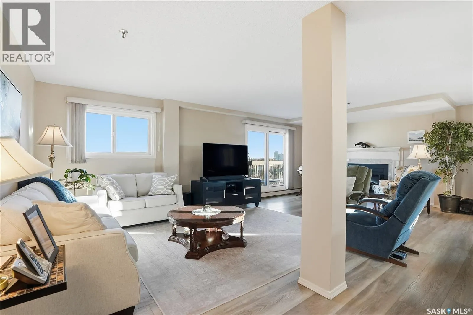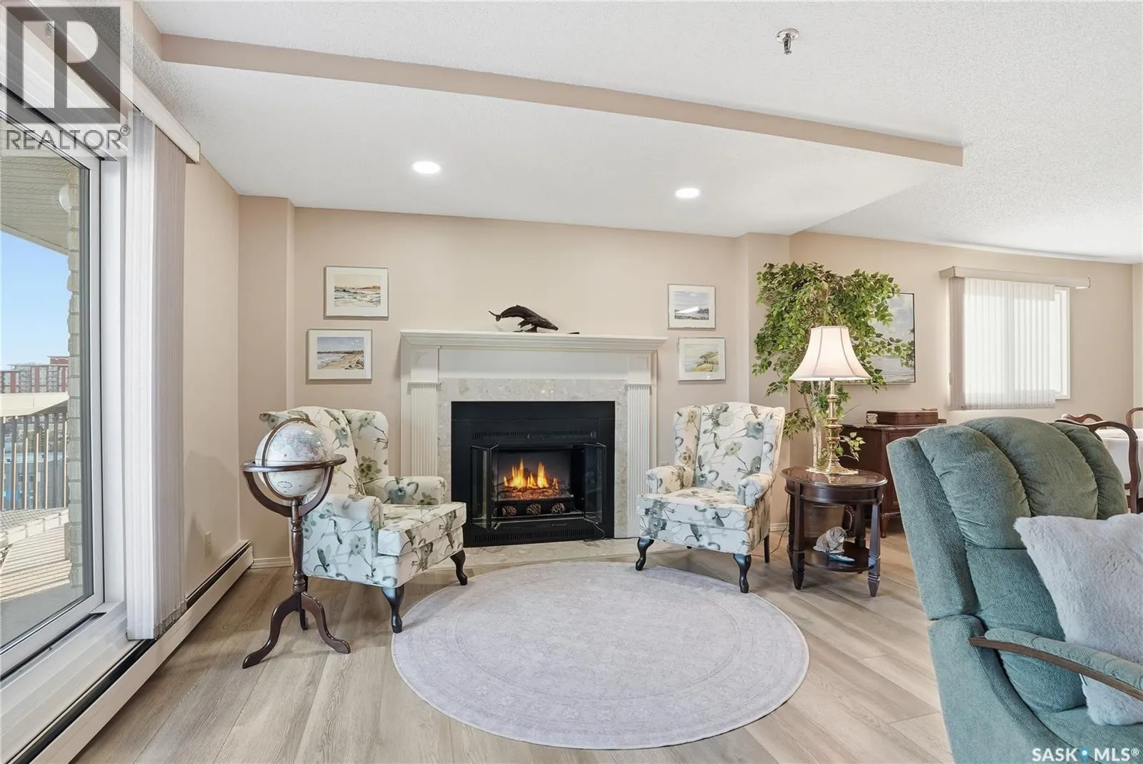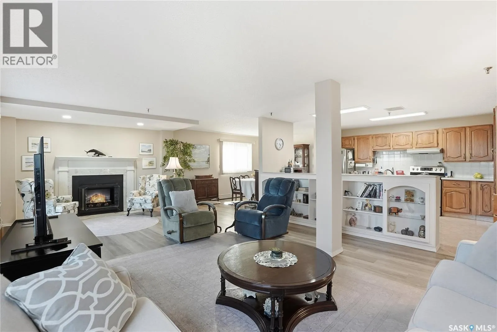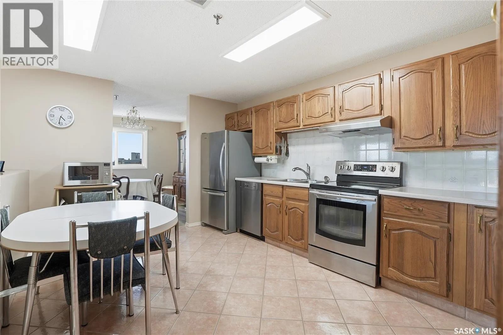 Welcome to unit 1003 â 510 5th Ave North located in the heart of Saskatoonâs desirable City Park neighborhood! This condo greets you with plenty of natural light flowing, a functional layout, and spectacular views overlooking Kinsmen Park! Step into your open concept living area, with laminate flooring, sliding glass door to your balcony with picturesque park views, gas fireplace against a tiled mantle, and recessed lighting. Your kitchen provides ample oak cabinetry, tiled backsplash, stainless steel appliances including fridge, stove, dishwasher and hood fan. Open to your formal dining space with a chandelier for a touch of elegance. Your king accommodating primary bedroom features a walk-through closet leading you to your 3-pc ensuite with glass shower and modern vanity. Second bedroom + a den, as well as a 4-pc bath with tile surround tub, a storage room with freezer and laundry hookup, completes this unit! The Discovery Park complex has it all â including an indoor pool, sauna, hot tub, fitness area, amenities room and library! With an unmatched location, only steps away from City Hospital, quick access to the U of S, downtown and our beautiful South Saskatchewan River, this is one you wonât want to miss! (id:27476)