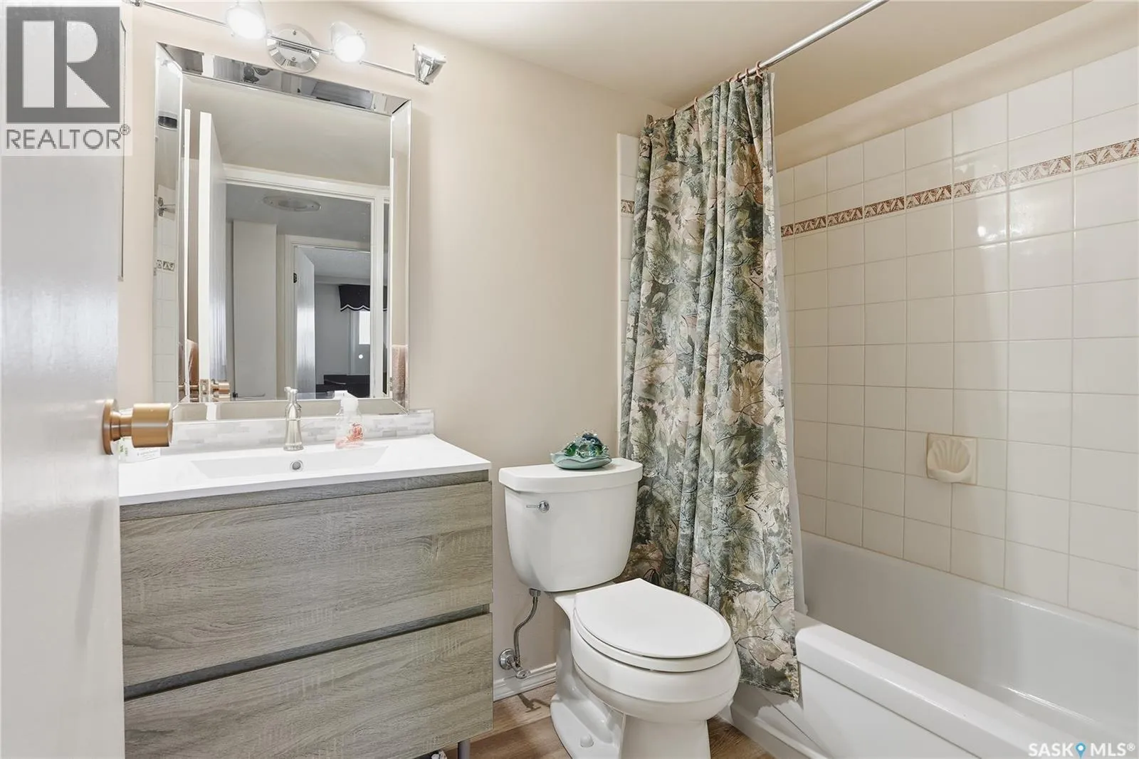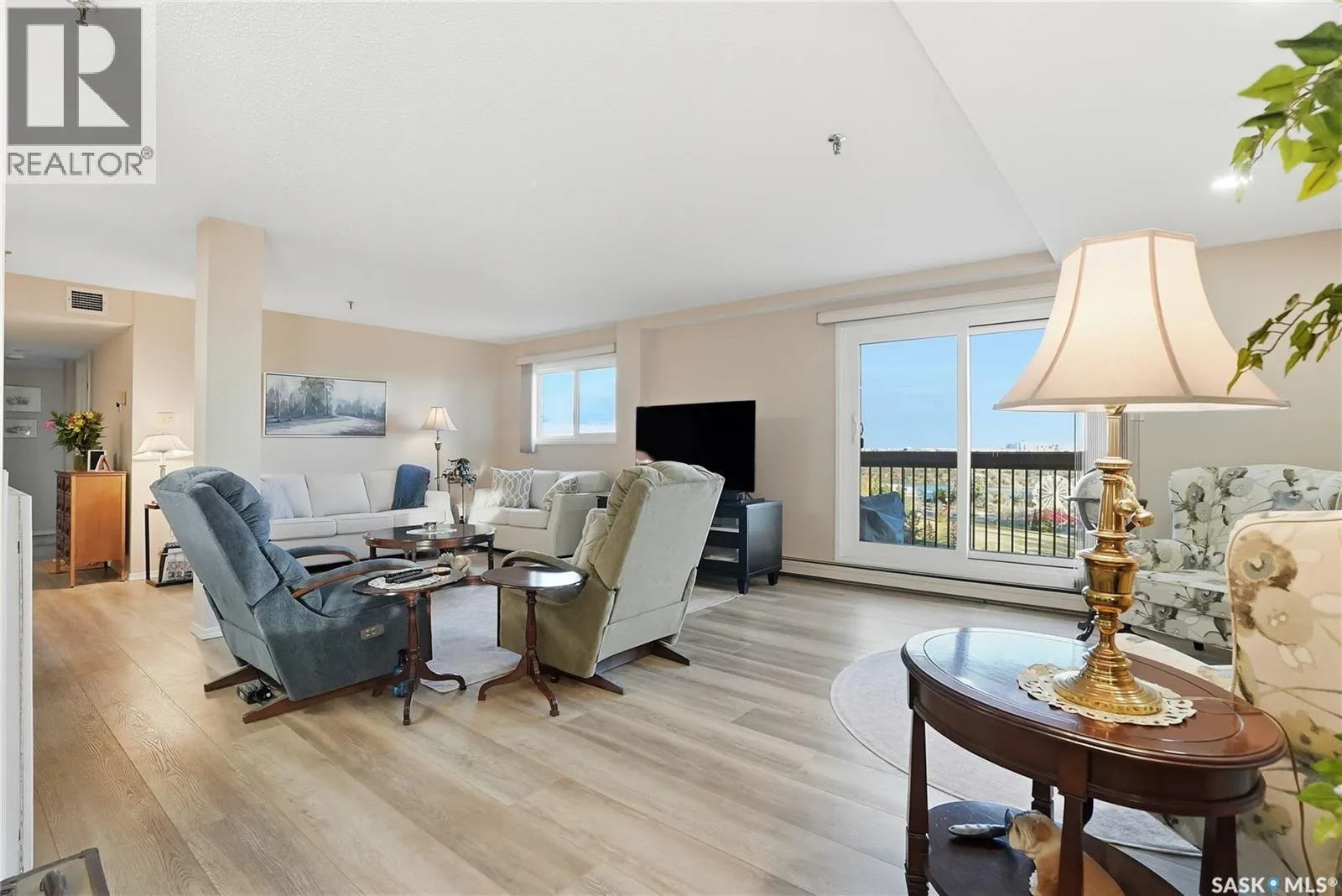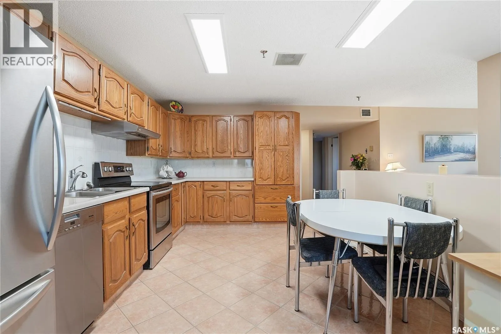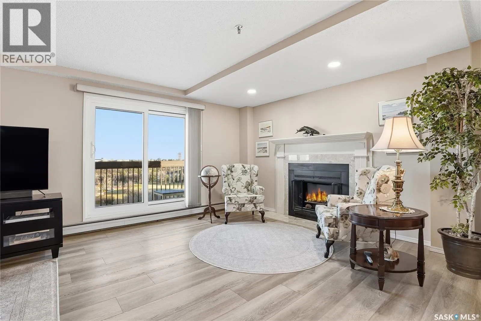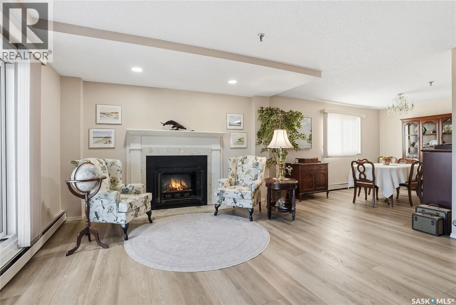 Welcome to unit 1003 â 510 5th Ave North located in the heart of Saskatoonâs desirable City Park neighborhood! This condo greets you with plenty of natural light flowing, a functional layout, and spectacular views overlooking Kinsmen Park! Step into your open concept living area, with laminate flooring, sliding glass door to your balcony with picturesque park views, gas fireplace against a tiled mantle, and recessed lighting. Your kitchen provides ample oak cabinetry, tiled backsplash, stainless steel appliances including fridge, stove, dishwasher and hood fan. Open to your formal dining space with a chandelier for a touch of elegance. Your king accommodating primary bedroom features a walk-through closet leading you to your 3-pc ensuite with glass shower and modern vanity. Second bedroom + a den, as well as a 4-pc bath with tile surround tub, a storage room with freezer and laundry hookup, completes this unit! The Discovery Park complex has it all â including an indoor pool, sauna, hot tub, fitness area, amenities room and library! With an unmatched location, only steps away from City Hospital, quick access to the U of S, downtown and our beautiful South Saskatchewan River, this is one you wonât want to miss! (id:27476)