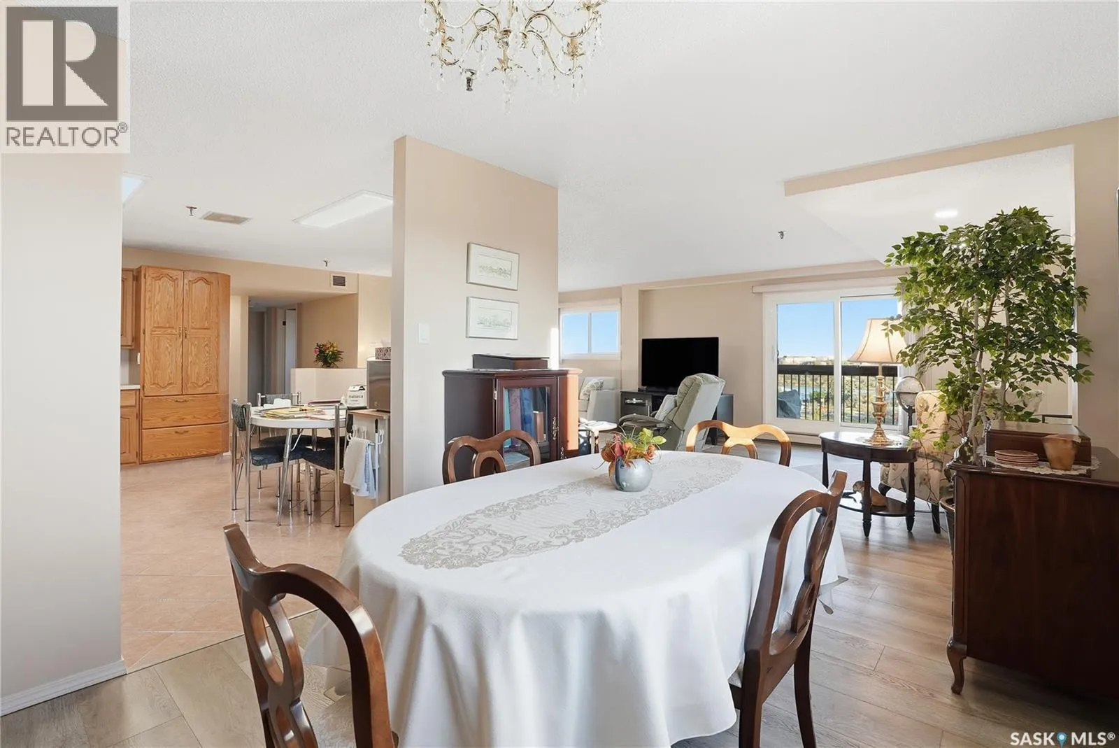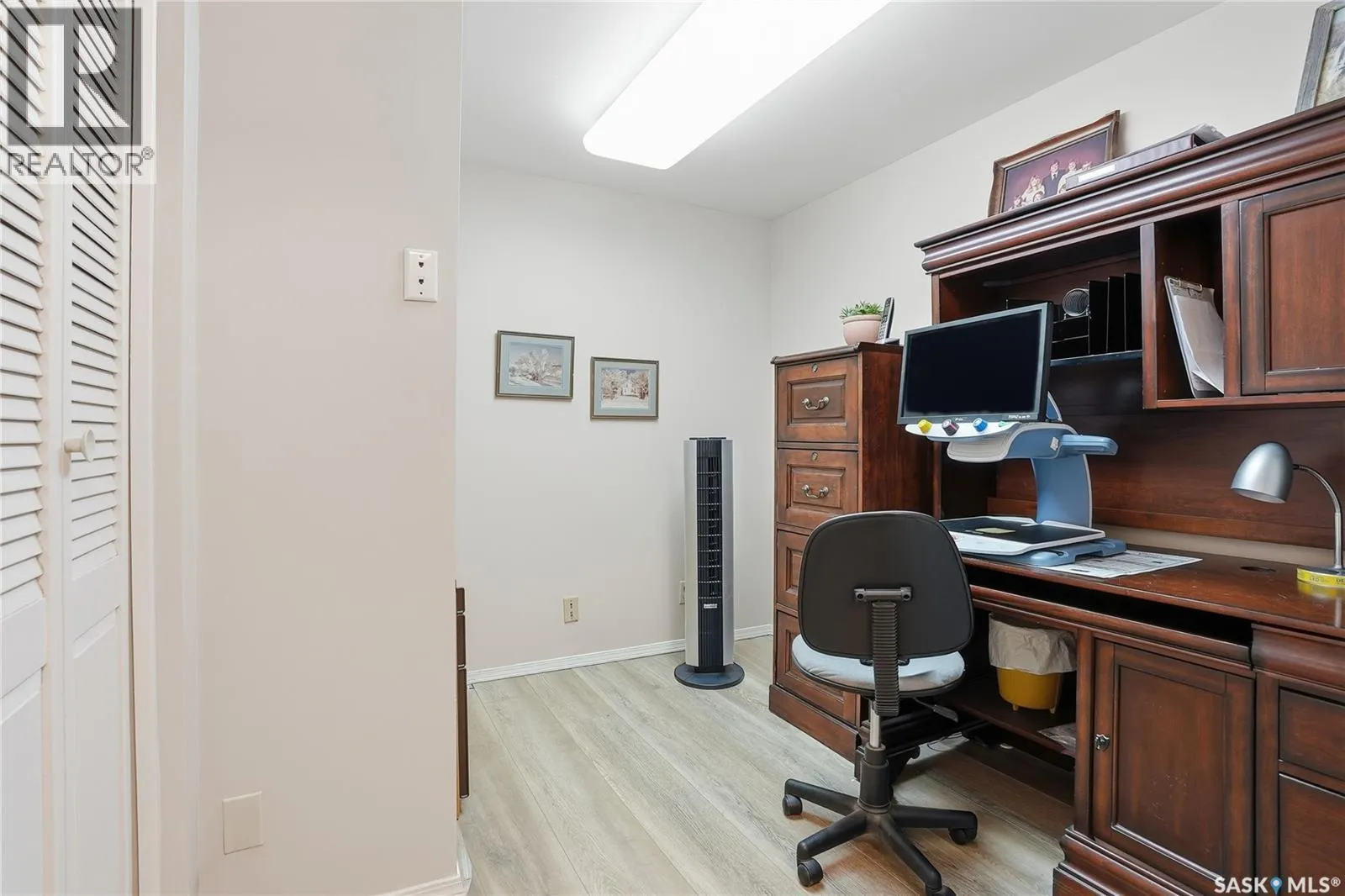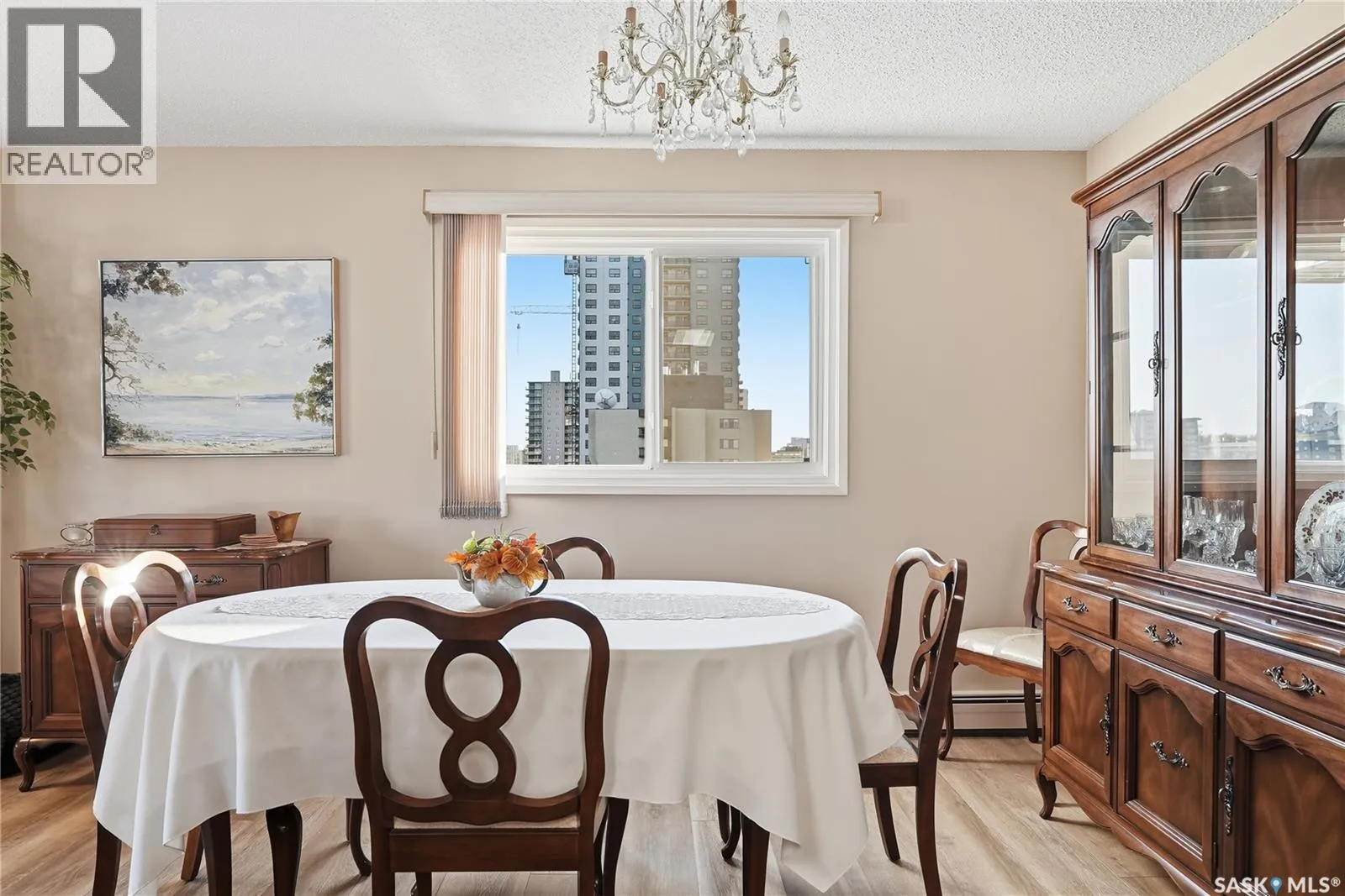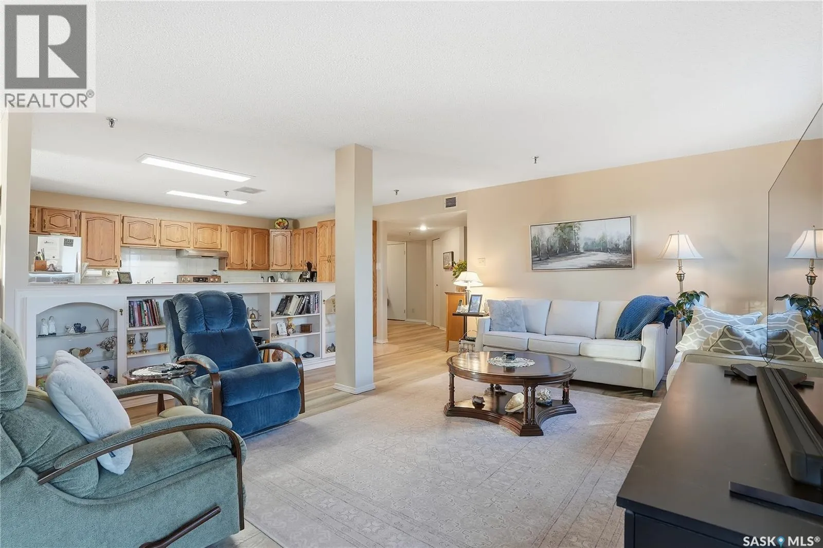 Welcome to unit 1003 â 510 5th Ave North located in the heart of Saskatoonâs desirable City Park neighborhood! This condo greets you with plenty of natural light flowing, a functional layout, and spectacular views overlooking Kinsmen Park! Step into your open concept living area, with laminate flooring, sliding glass door to your balcony with picturesque park views, gas fireplace against a tiled mantle, and recessed lighting. Your kitchen provides ample oak cabinetry, tiled backsplash, stainless steel appliances including fridge, stove, dishwasher and hood fan. Open to your formal dining space with a chandelier for a touch of elegance. Your king accommodating primary bedroom features a walk-through closet leading you to your 3-pc ensuite with glass shower and modern vanity. Second bedroom + a den, as well as a 4-pc bath with tile surround tub, a storage room with freezer and laundry hookup, completes this unit! The Discovery Park complex has it all â including an indoor pool, sauna, hot tub, fitness area, amenities room and library! With an unmatched location, only steps away from City Hospital, quick access to the U of S, downtown and our beautiful South Saskatchewan River, this is one you wonât want to miss! (id:27476)